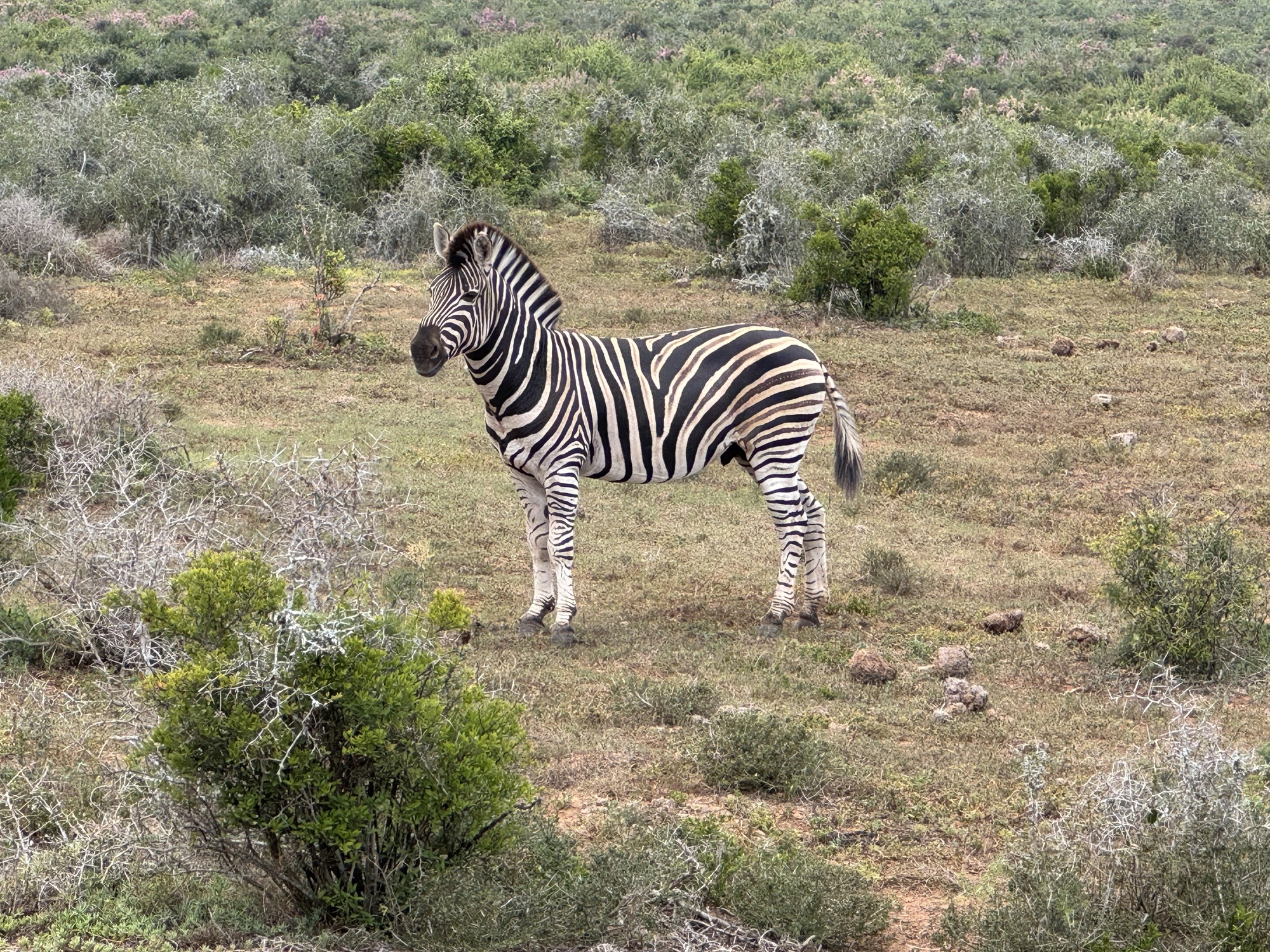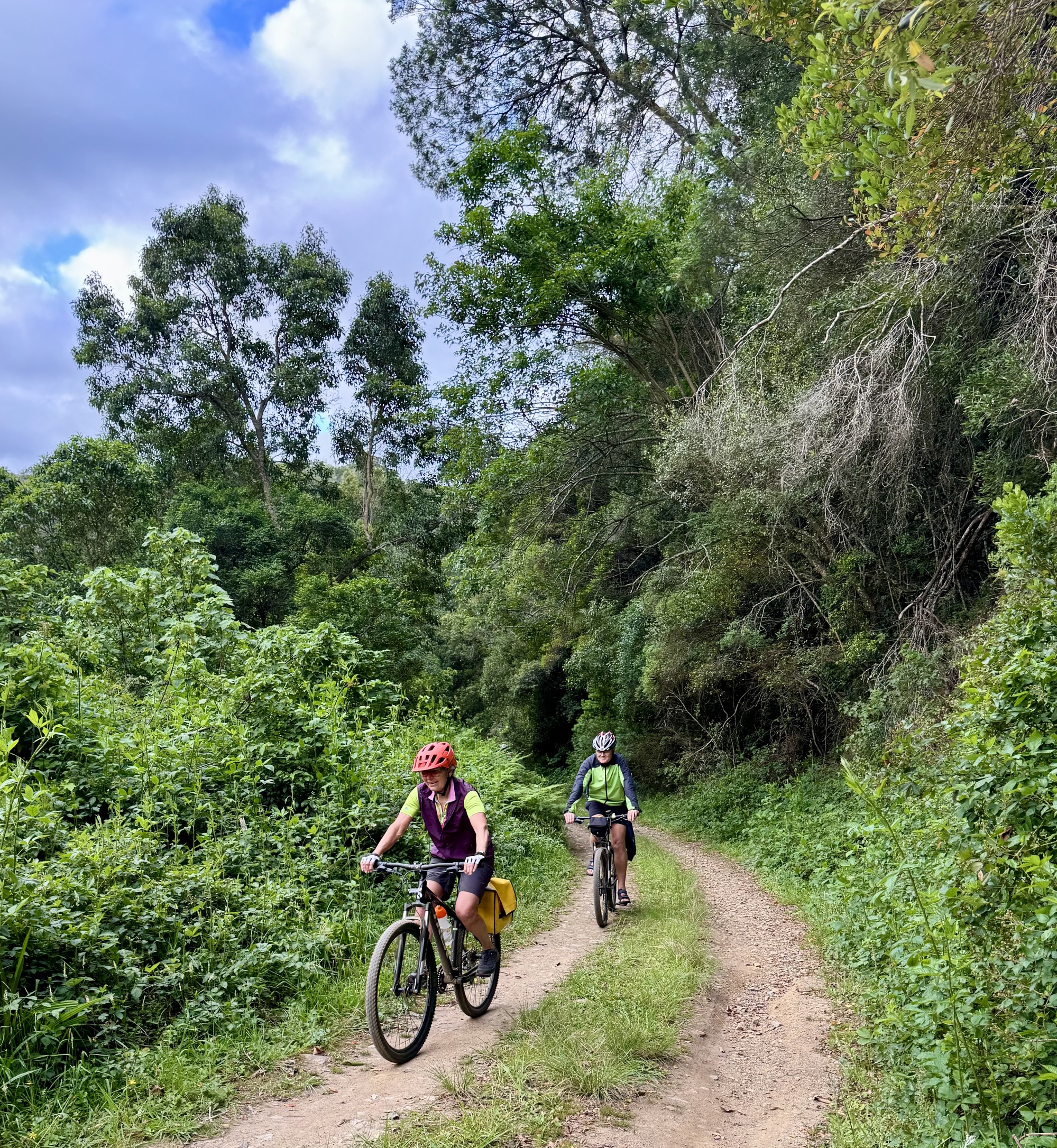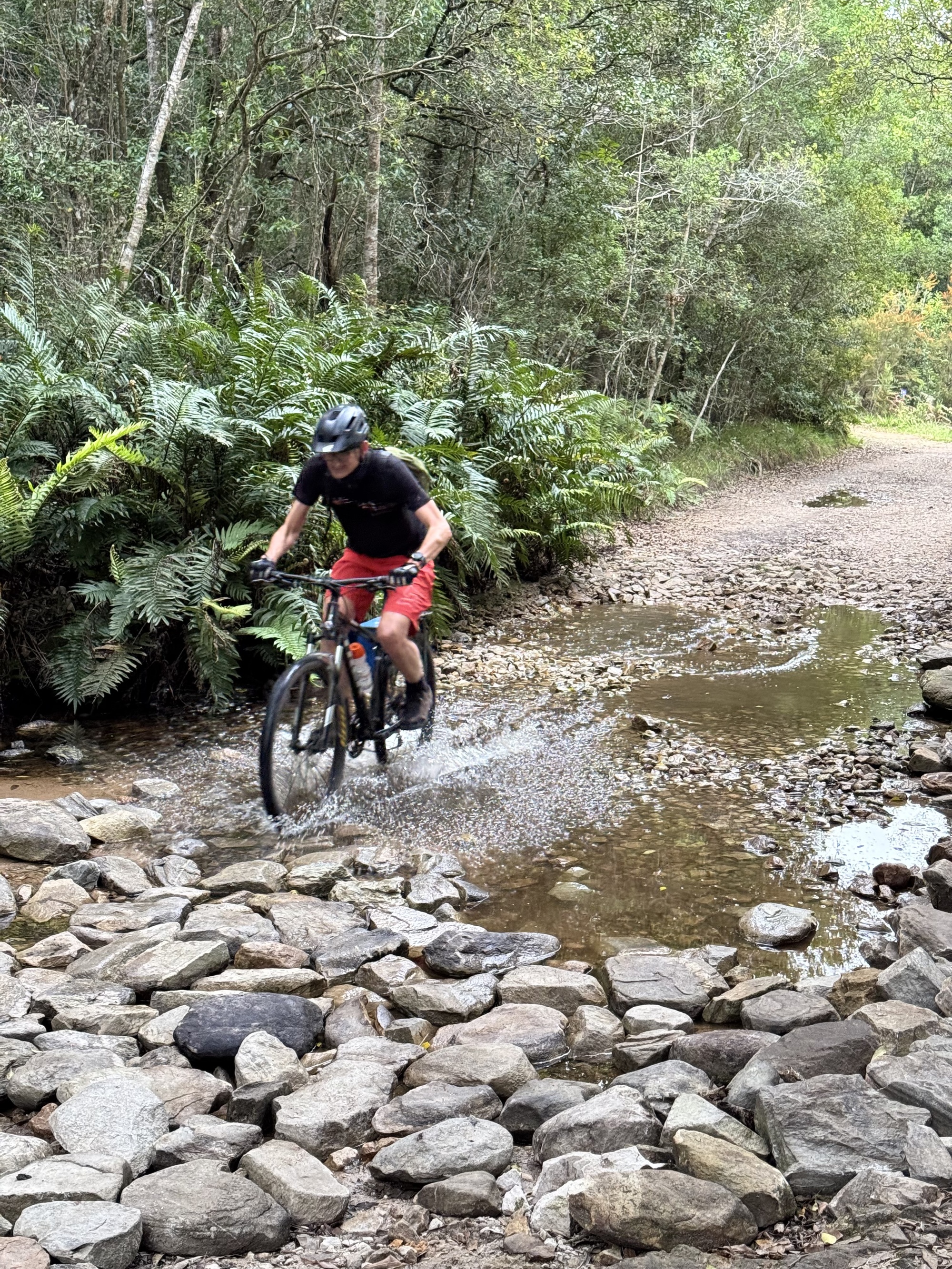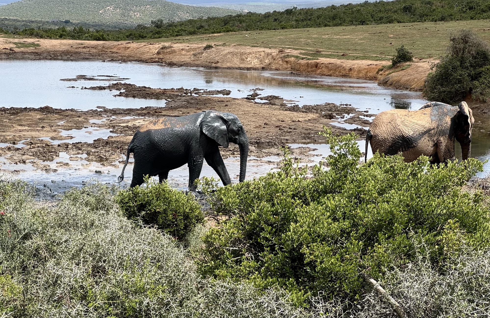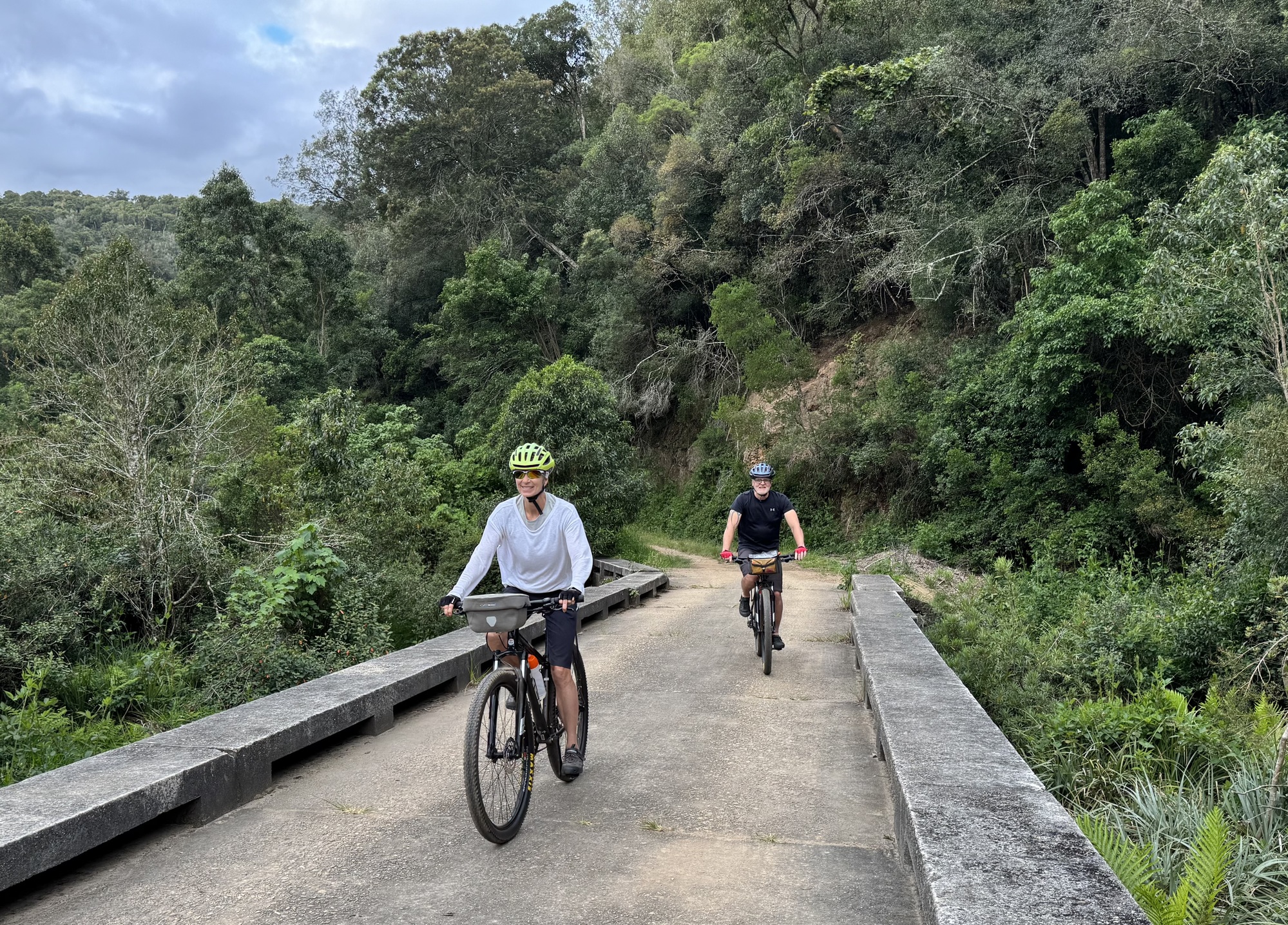 Our day started with an amazing visit to the Addo Elephant Reserve. Over 2 hours we saw elephants, wort hogs, zebras, secretary birds (which are rare to see), meerkats and yellow mongoose. Most of the elephants in Addo do not have tusks. It is an adaptation from inbreeding to prevent poachers from killing the for their tusks. The ones with tusks have been introduced from Kruger NP to expand the gene pool. When the park started they had only 30 elephants now there are over 700. After the visit we had a 2 hour drive that was no fun but then we finally got on our bikes for an easy shakeout ride on tarmac and gravel. Tonight we are in the Tsitikama national park.