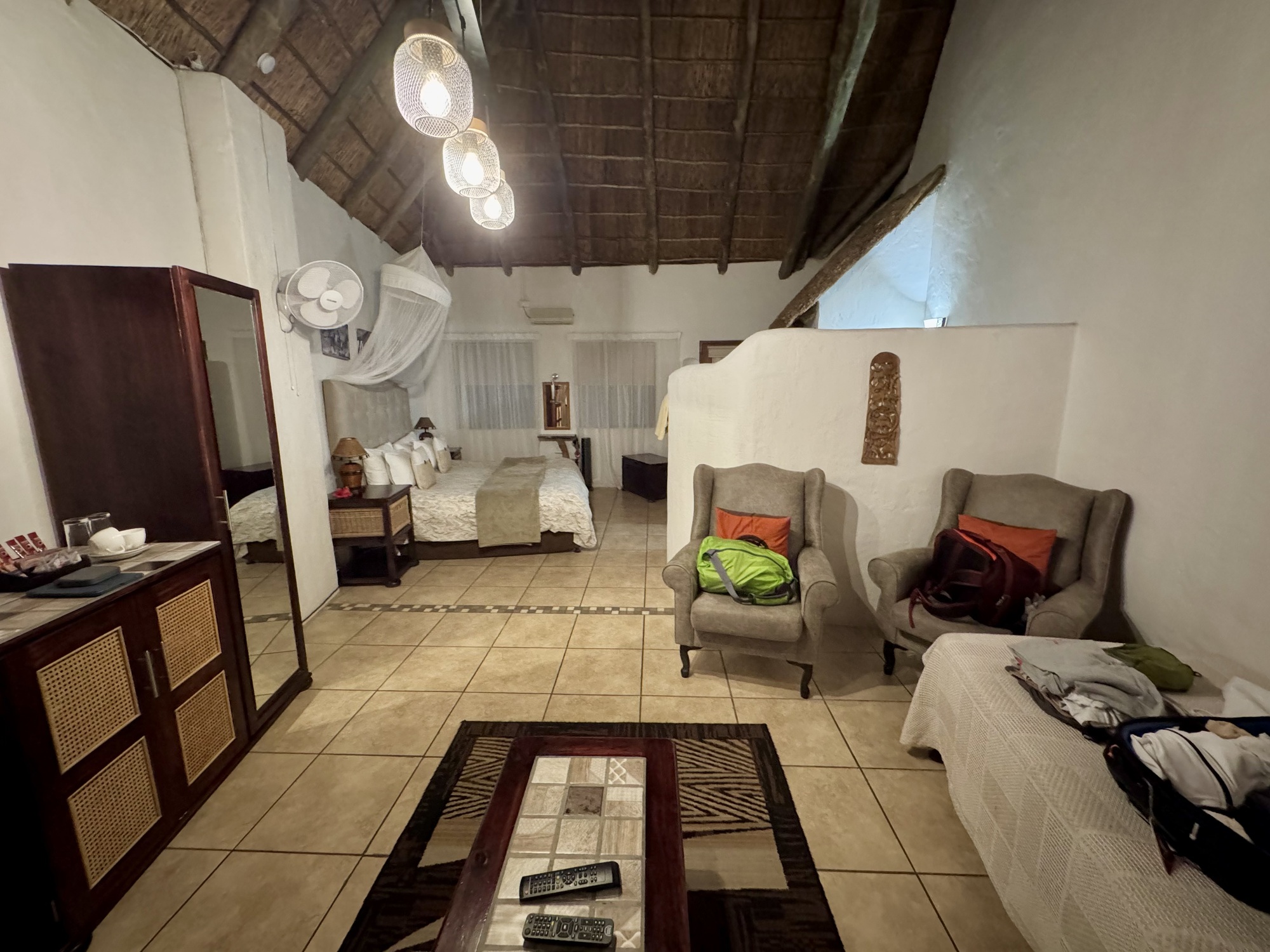 We arrived in the dark last night so after a good sleep we wandered around a little to get a bit of exercise and start adjusting to the heat. Our accommodation is quite unique as you will see in the photos. In the afternoon we took a boat ride on the Sunday River to see some of the local bird life. It was a great boat ride and again the photos will do the talking when I can load them. The remainder of our group arrived today and they are Germans or Swiss who speak German, this is what I expected.
