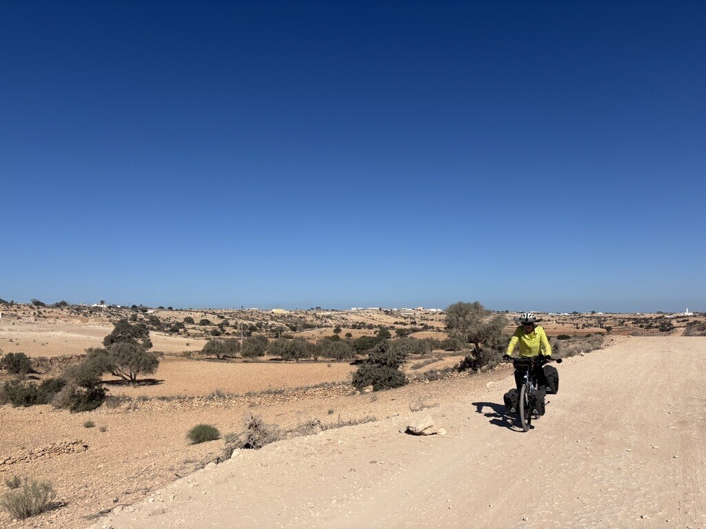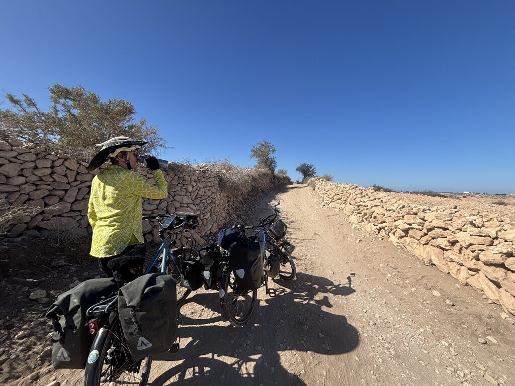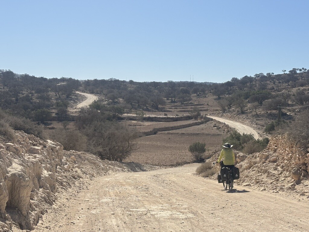 Nice gravel road riding. Komoot did try to make us cut across a field on a road that didn't exist but we stuck with the asphalt road for a few miles. Then it was back to gravel roads with no traffic. We started seeing cyclists coming in the other direction who were finishing the Atlas Mountain race- an insane race of 1600km, 90,000 of vertical, unsupported over 8 days. The winners were finishing in a little over 4 days. Not on my bucket list.