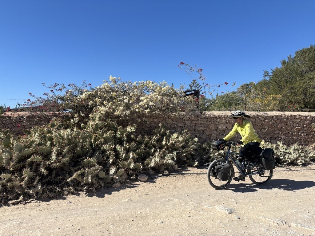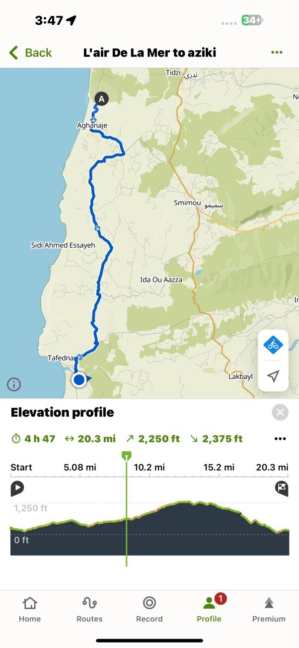 We stayed at Aziki ($60)-basic but perfectly fine. Komoot took us directly to the hotel so we inadvertently bypassed Tafedna. I wished we had ridden through it because it was right on the water and might have been cute.