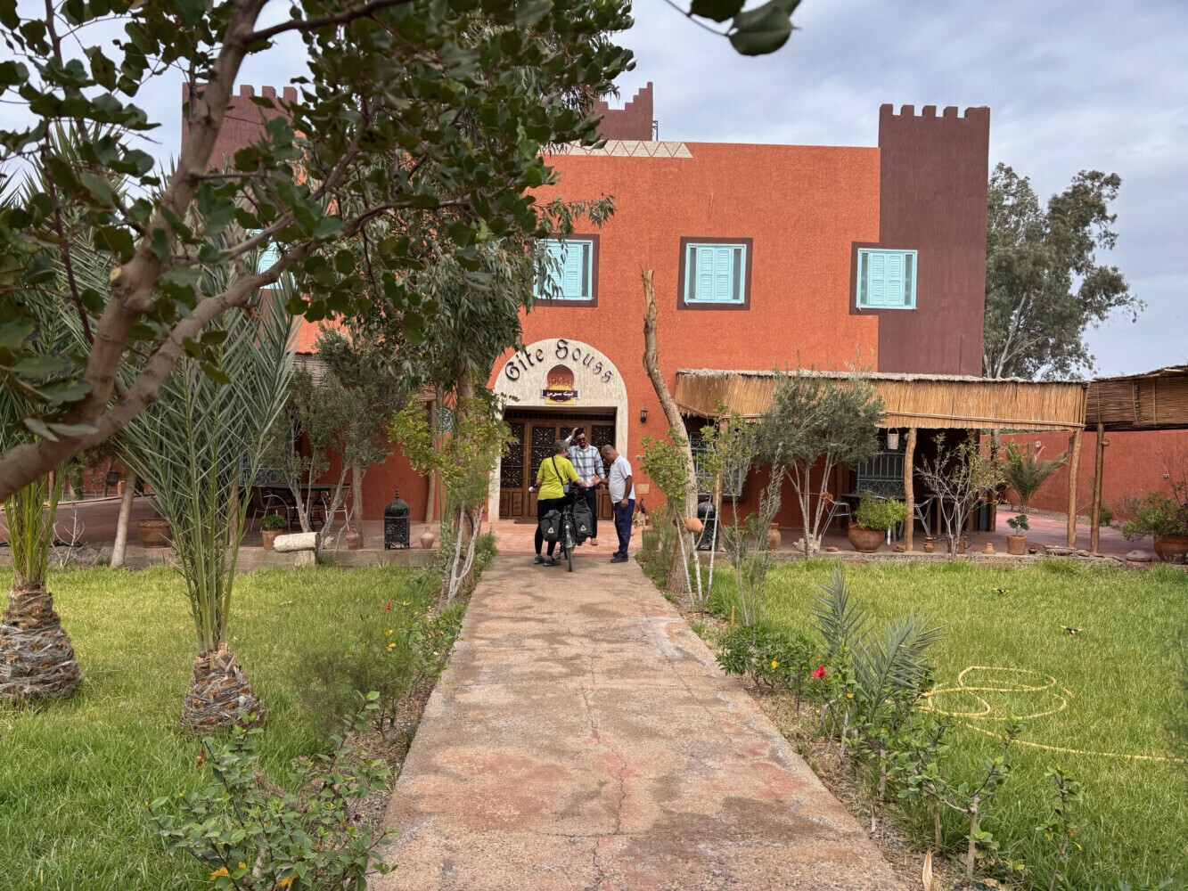 We stopped at the big souk in Agadir on the way out but didn't stay there long because bicycles were not allowed inside. The route out of Agadir was a bit confusing because there is a lot of construction happening and some of the roads Komoot wanted us to follow didn't exist. However they were just minor inconveniences. The traffic on the main road once we left Agadir was moderate and there was an adequate shoulder. Again, I was glad we had a tail light and mirror. The downside is that I don't think I've ever seen so much trash along the road. We chose to stay at Gite Sous to break up the ride to Taroudant. It is a nice place in the country. Nice and quiet and they cooked us dinner. I think it was around $50 or so. Well worth whatever we paid.