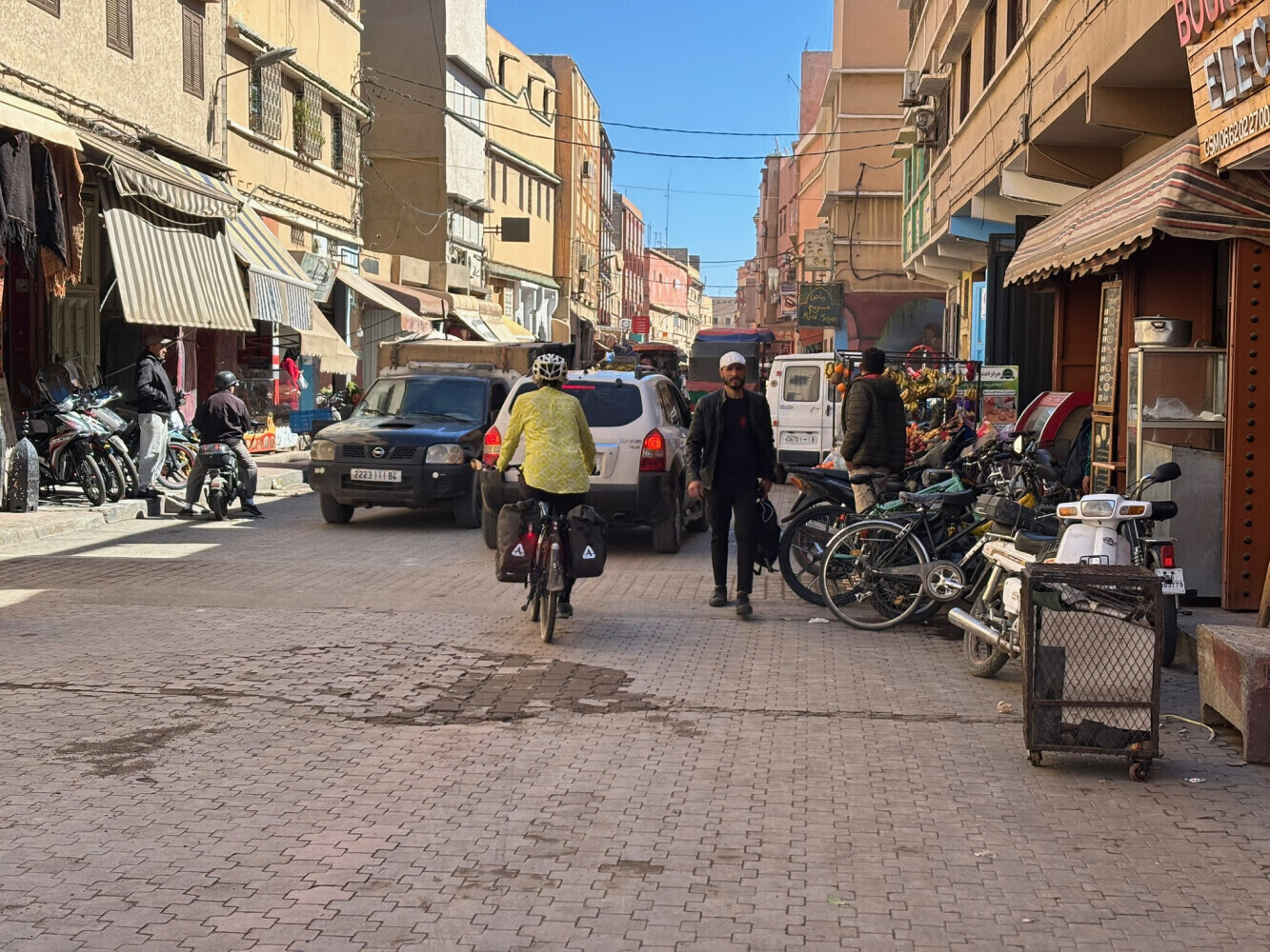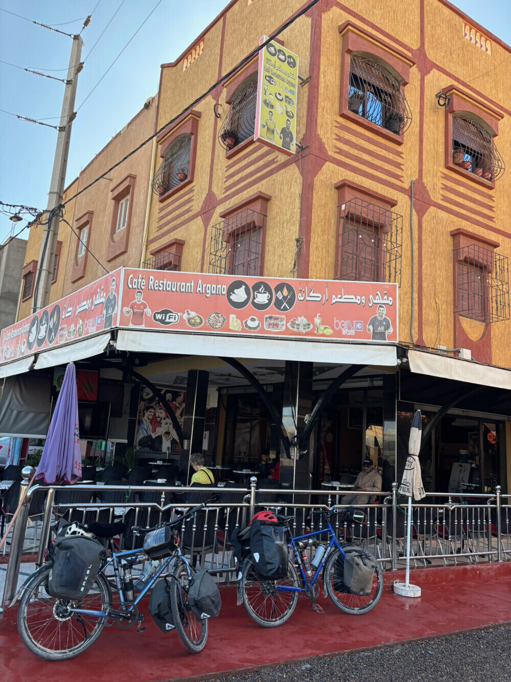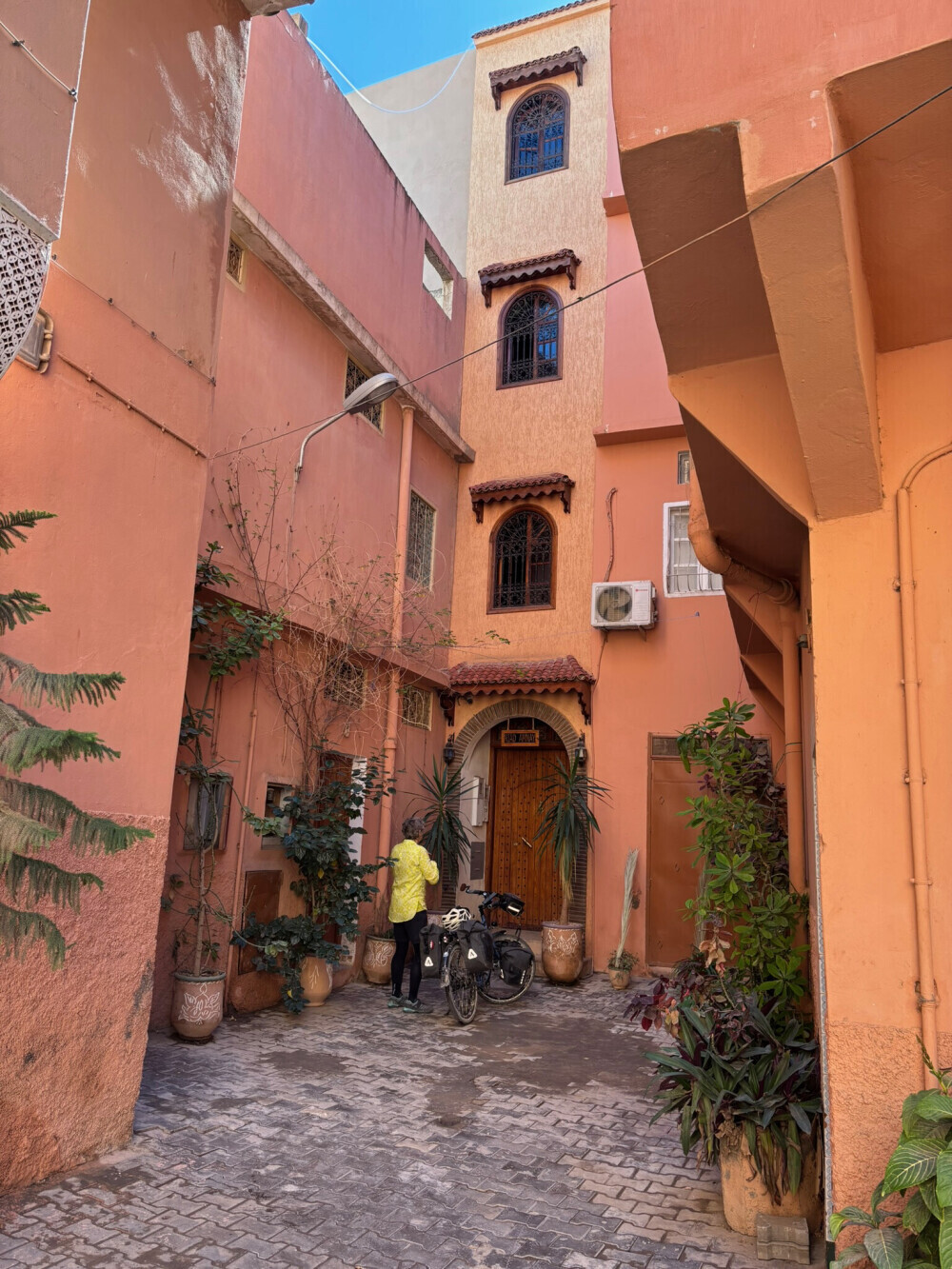 Traffic was moderate without much shoulder on the first part of this ride but after we got on the main road there was a shoulder and it even had bicycle signs. We a bit of trouble finding Riad Aramy ($60). It was right off the main square- we found it with the help of a nice man.