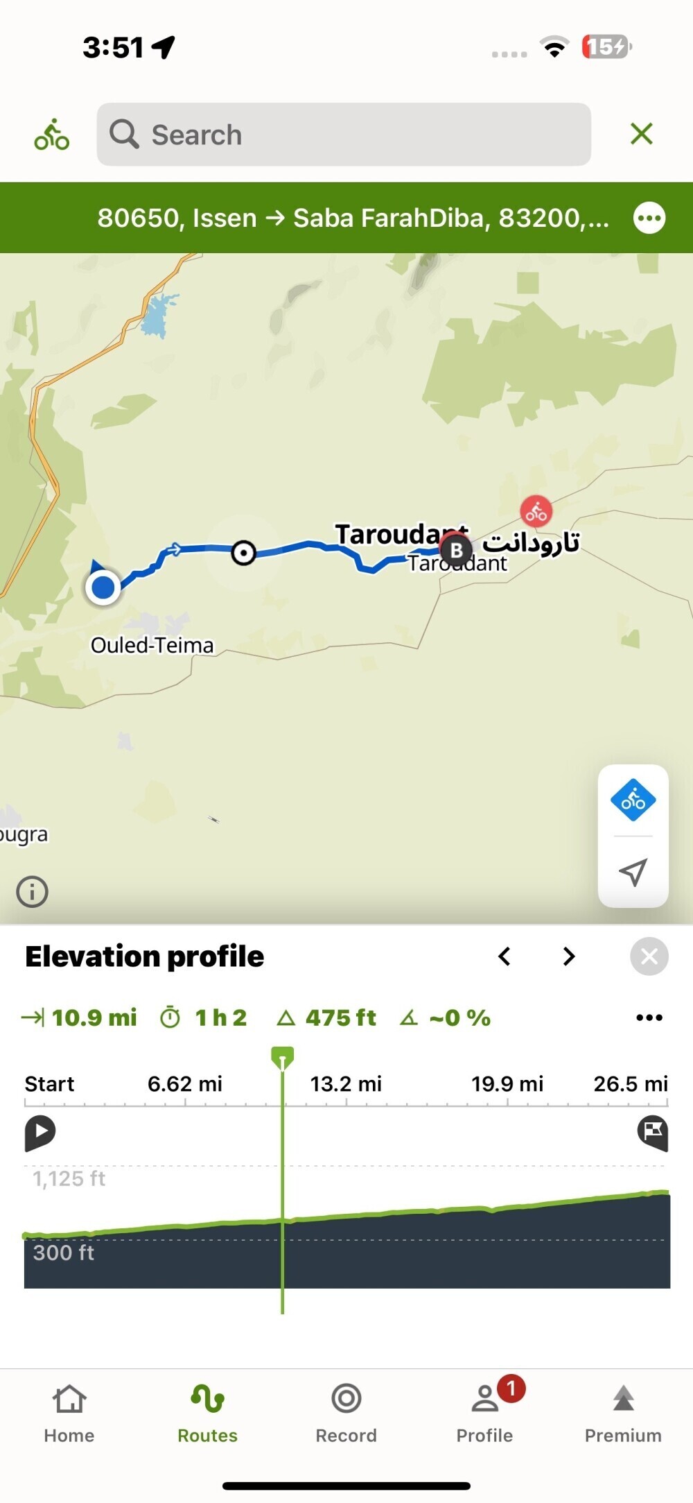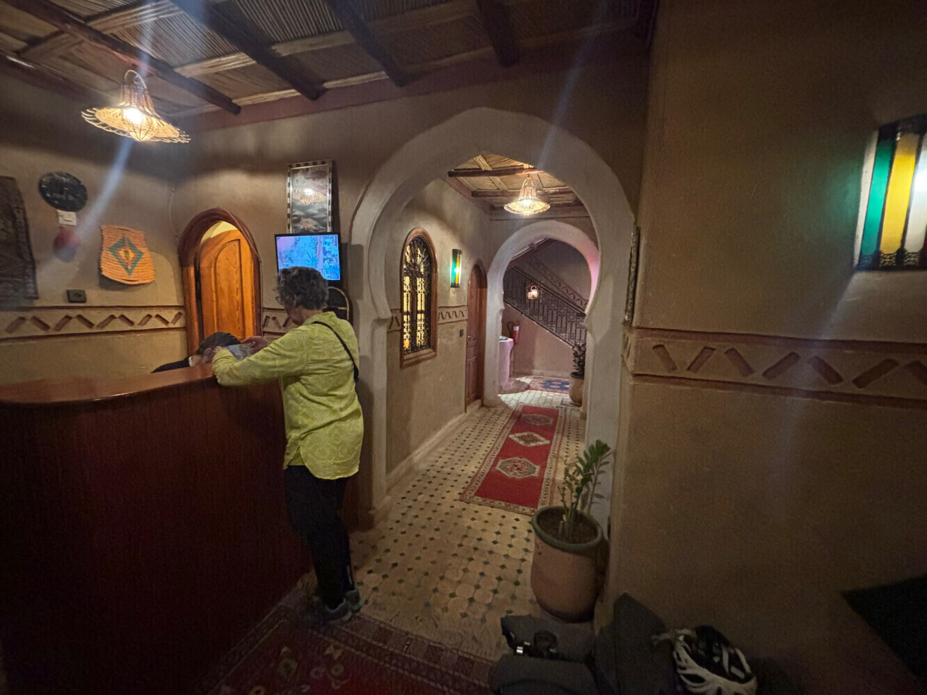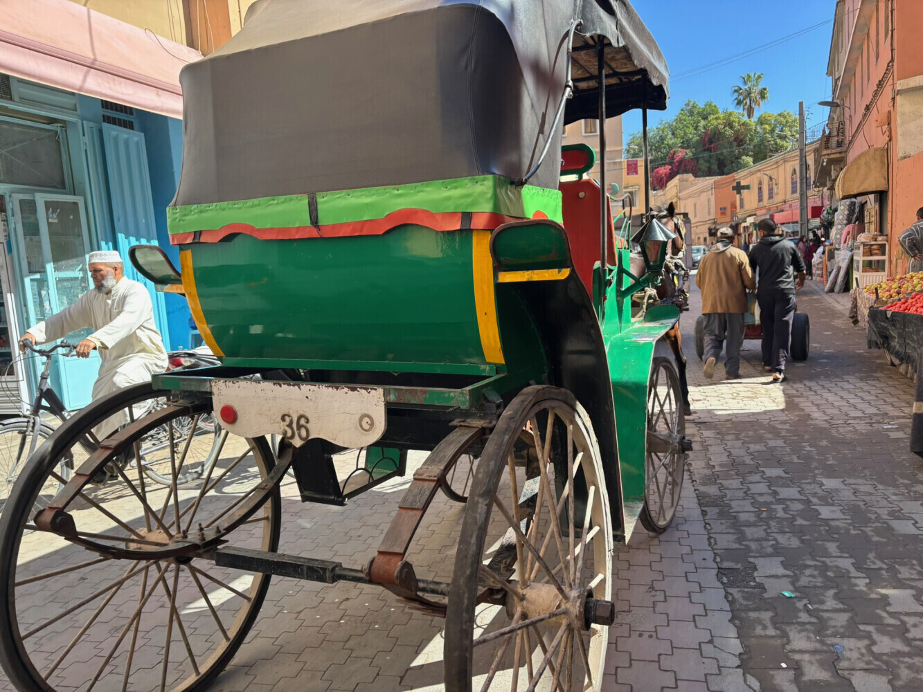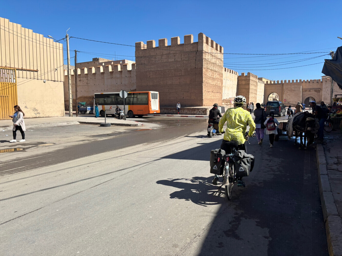 Traffic was moderate without much shoulder on the first part of this ride but after we got on the main road there was a shoulder and it even had bicycle signs. We a bit of trouble finding Riad Aramy ($60). It was right off the main square- we found it with the help of a nice man.