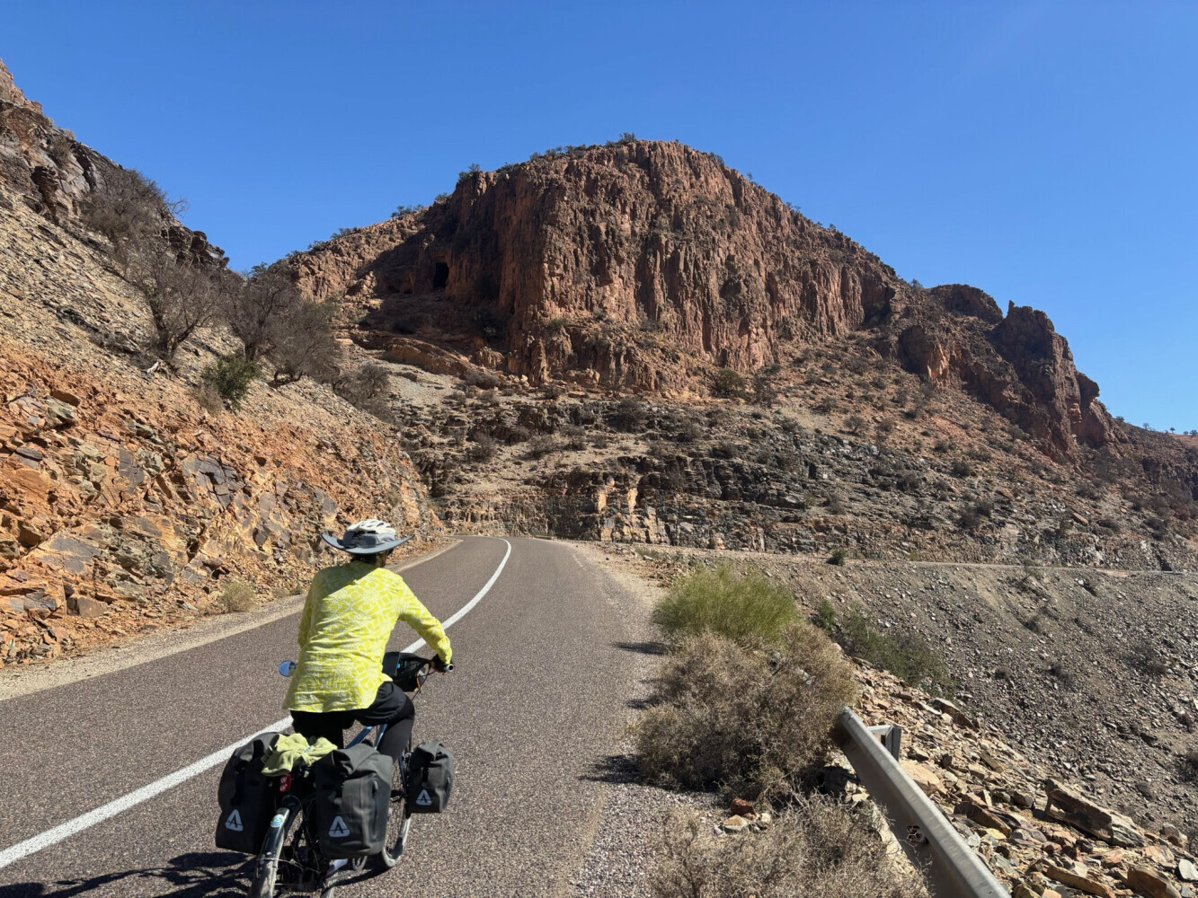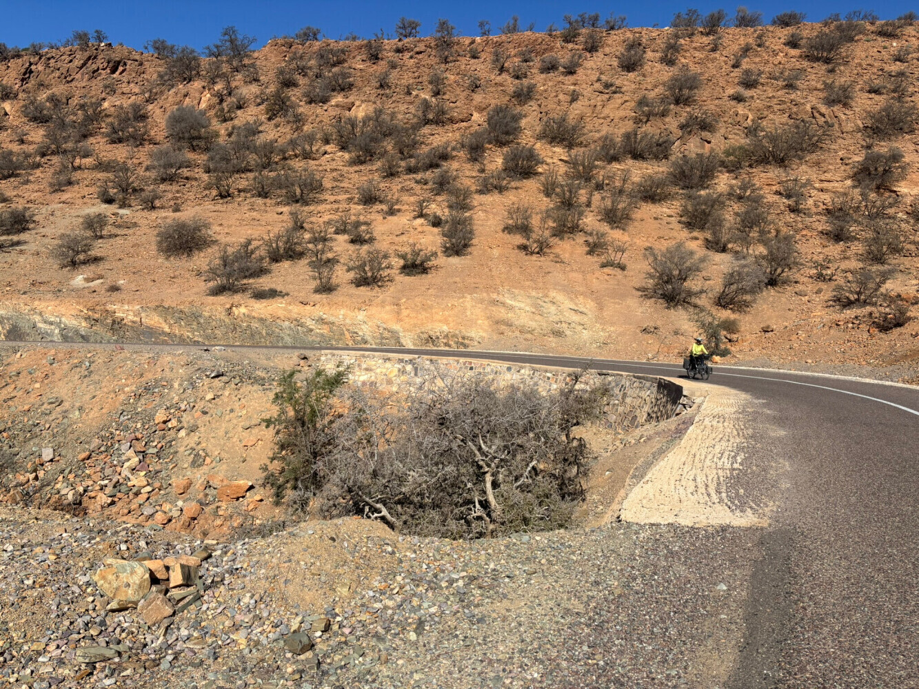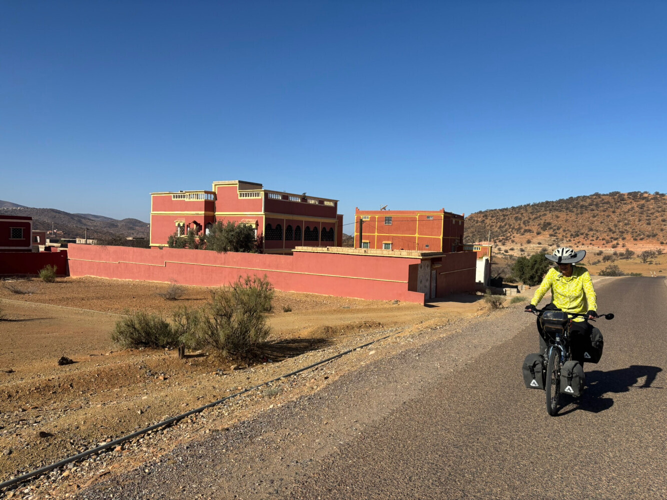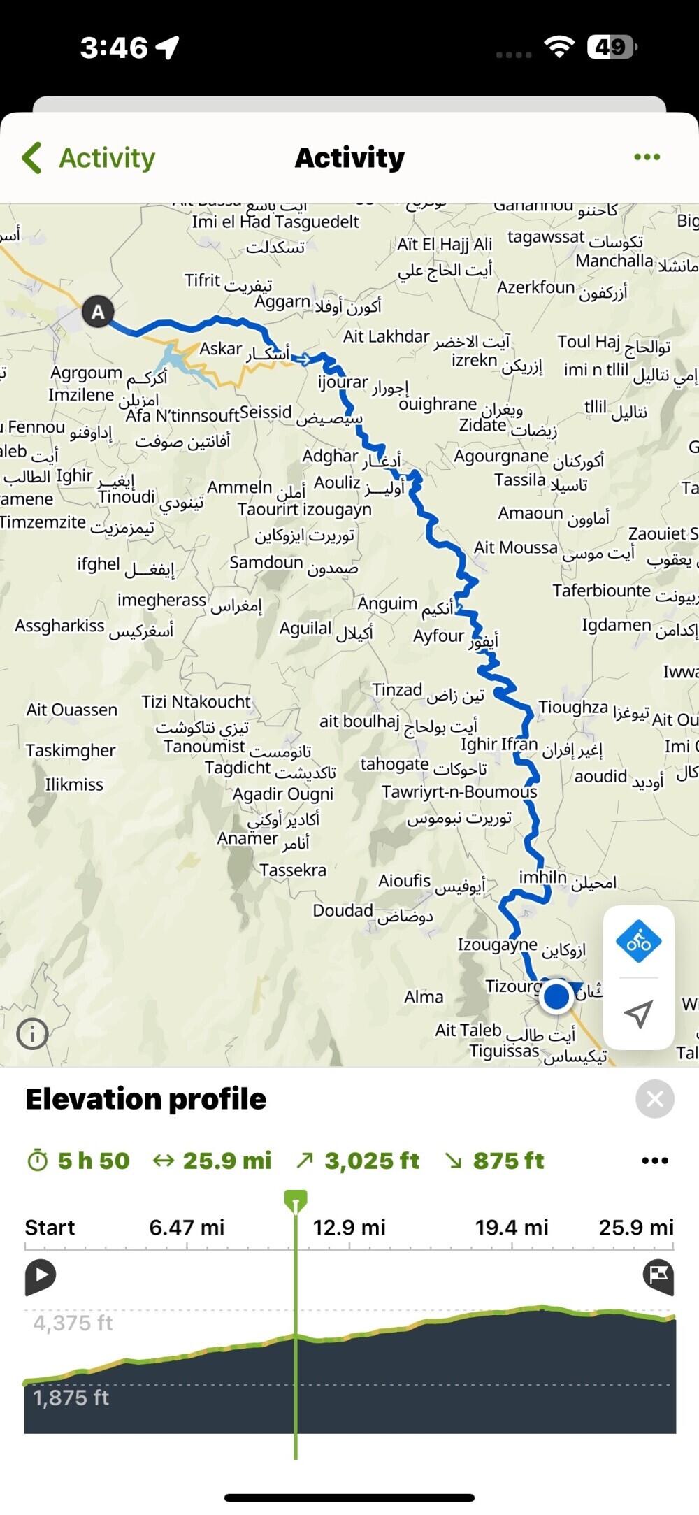 This was a great ride- no traffic. Komoot wanted to take us on a side road for the entire ride but we decided to stay on the main route because the grade looked better. I think this was a good choice- we could often see the other road to our right and it looked like a lot of up and down. The highest we got was 4,400' and it was down hil for the last 2-3 miles. There was a place to have coffee about 5 miles from the end.