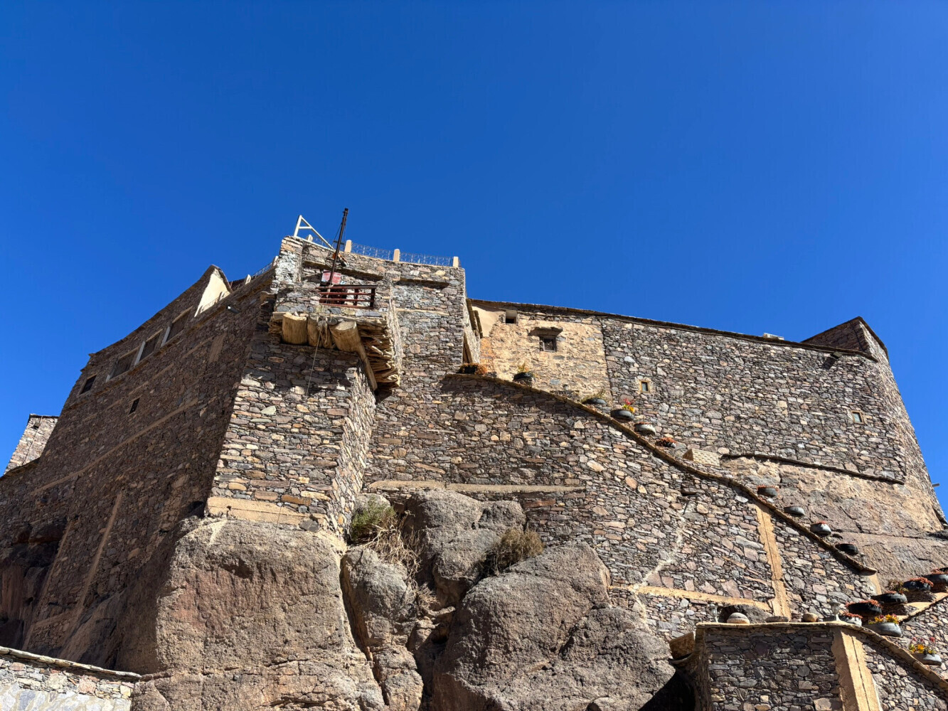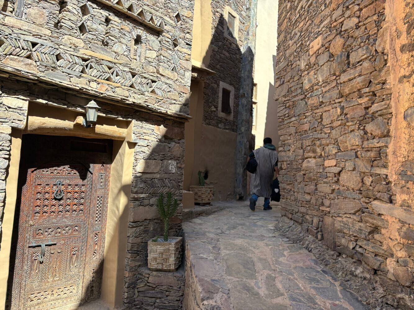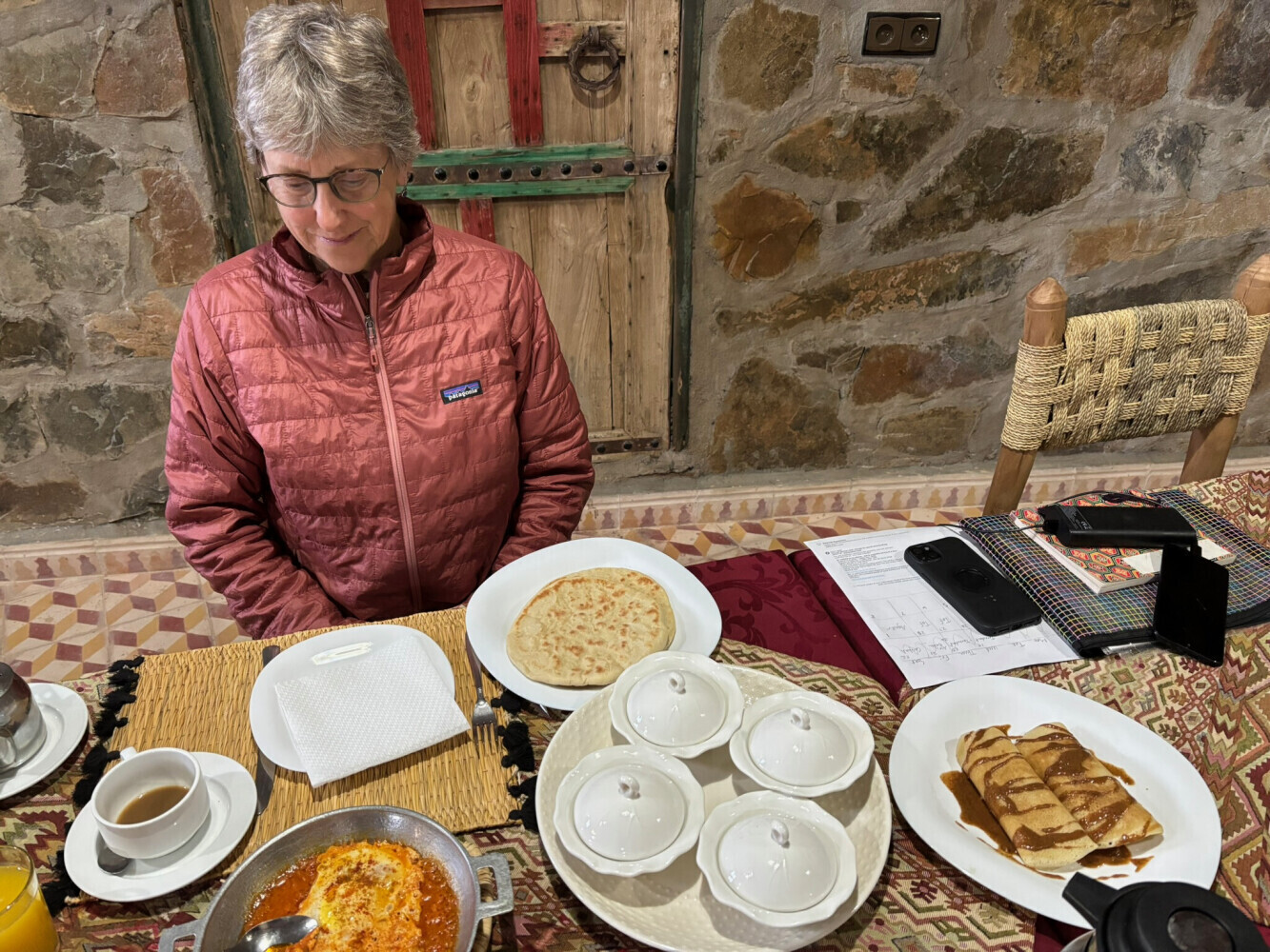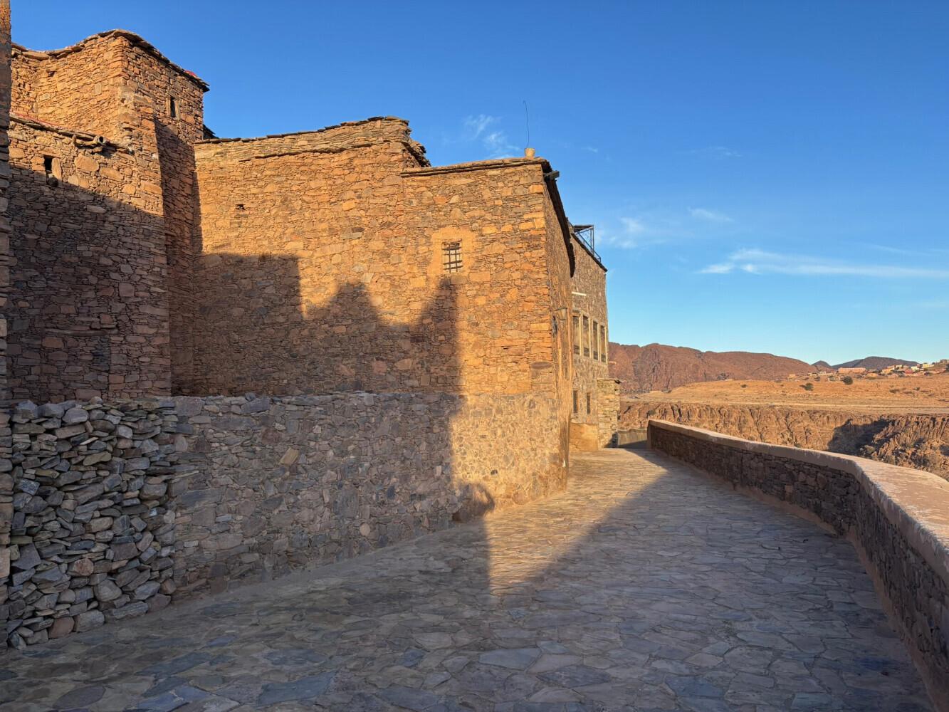 The Kasbah is intricately constructed with rocks. We had a propane stove in our room and we used it because it was cold. We walked all over the kasbah taking photos. It was so interesting-lots of come to this place just to walk through it (for a fee) so staying there overnight made it all the more special. And, it wasn't all that expensive- $74 with breakfast and dinner. Highly recommended.
