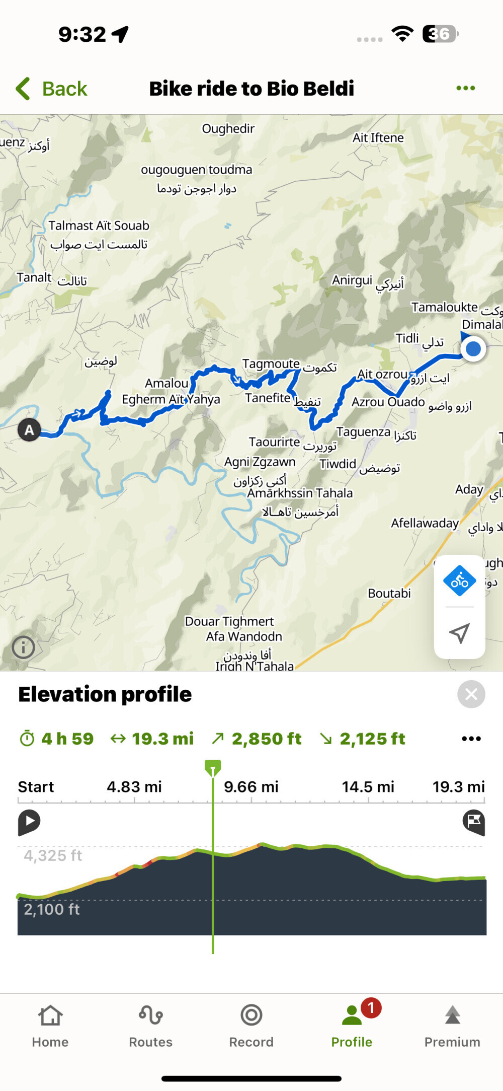 Today's ride: 19 miles (31 km)