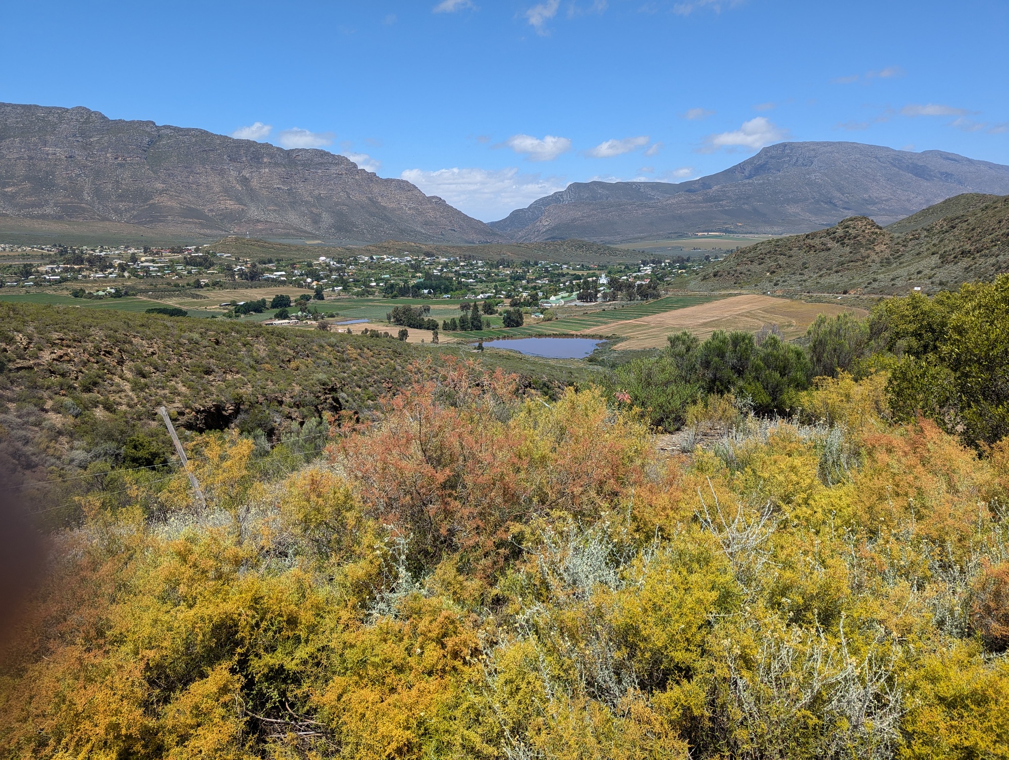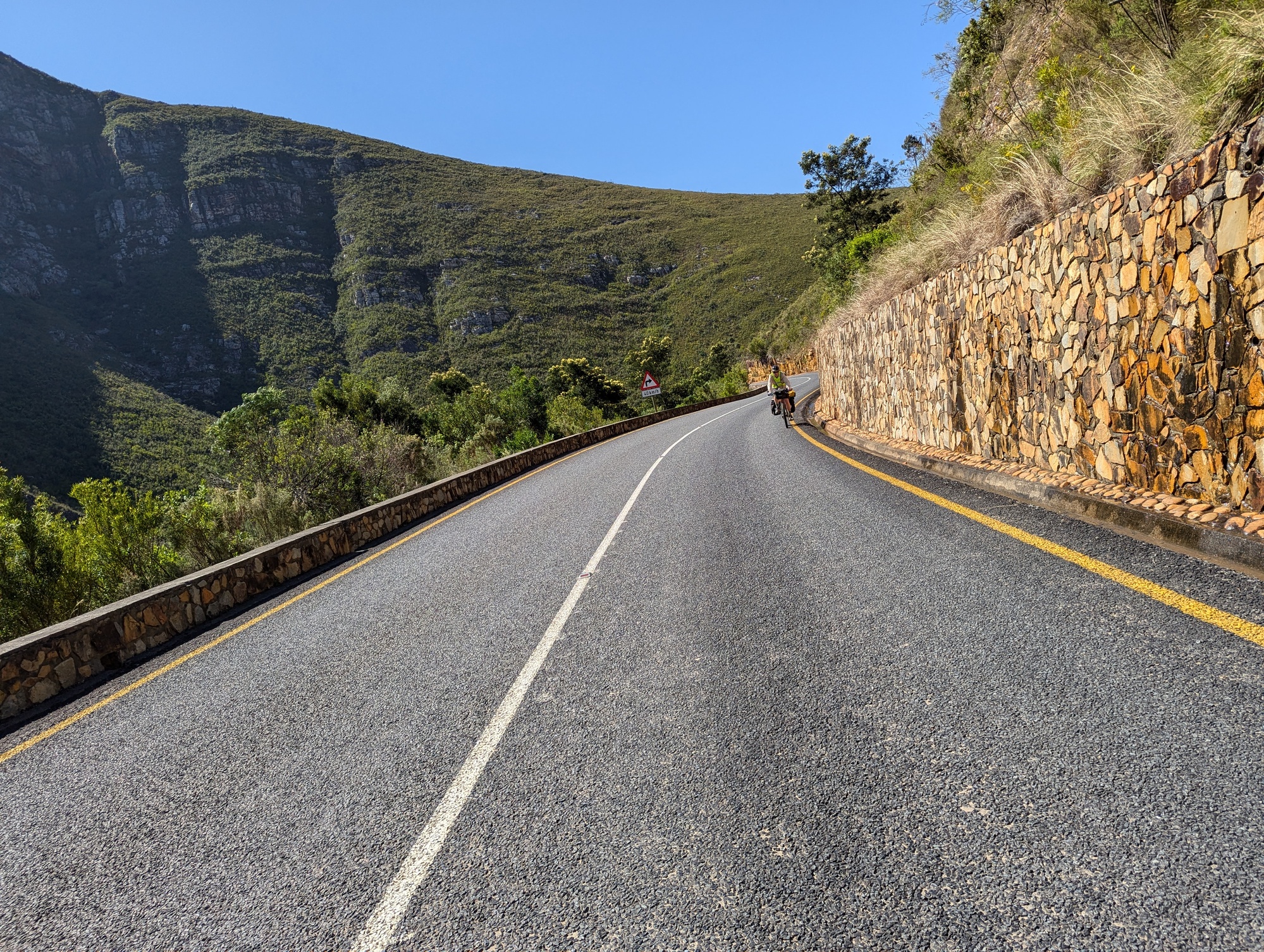 We rode over the Tradoupas and down into Swellendam, to camp the night at the municipal camp ground. We were there late, we left early and Caths lasting memory is the owl that called for hours in the night, sounding just like the beep of an electronic keypad. Midnight sleepless googling found it might have been the Eurasian Scops Owl... anyone who goes crazy at a ticking clock will understand my distress...
