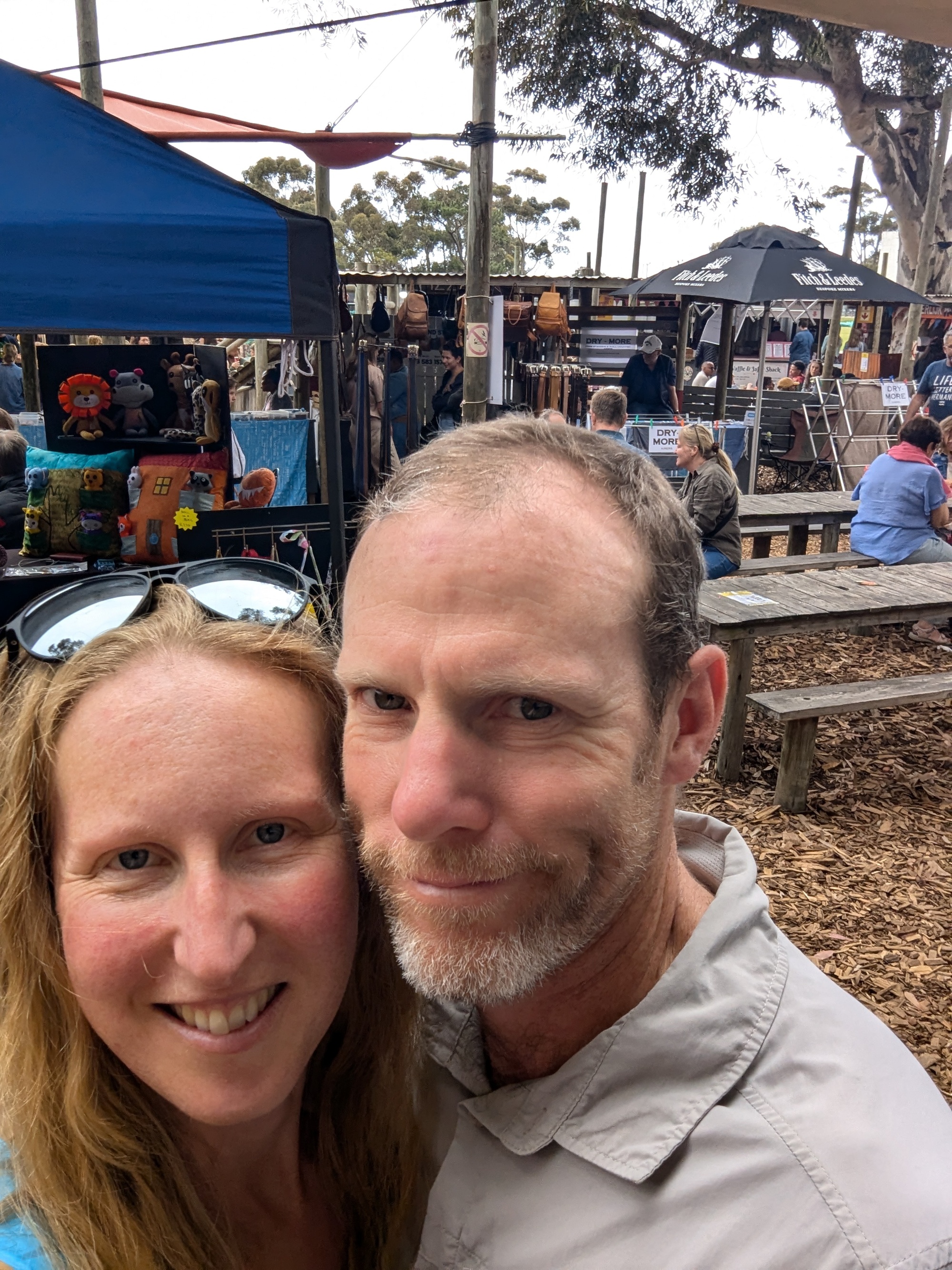It turned out we were more tired than we thought from the previous few days of long daily rides and walking along the cliff tops was enough exertion for us. We ended up going to the Saturday market, wandered around town for a while, continuing to not see any whales. Apparently there are some - way out in the bay. We're a bit late in the season.