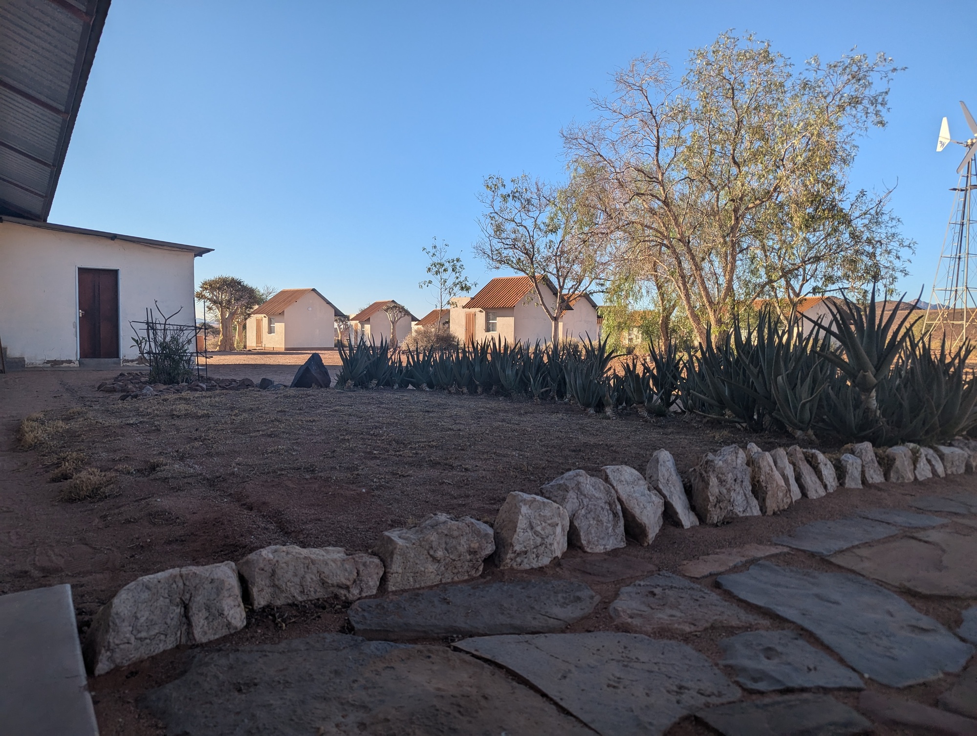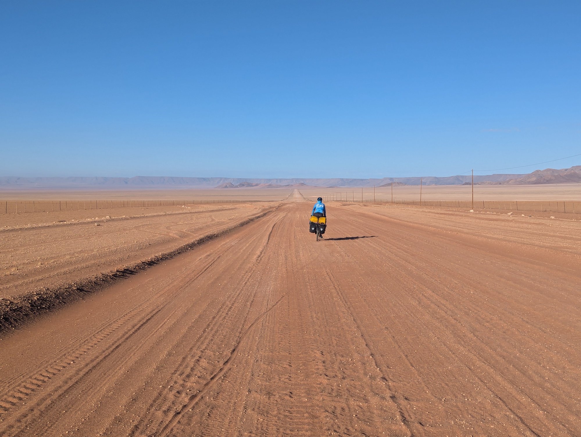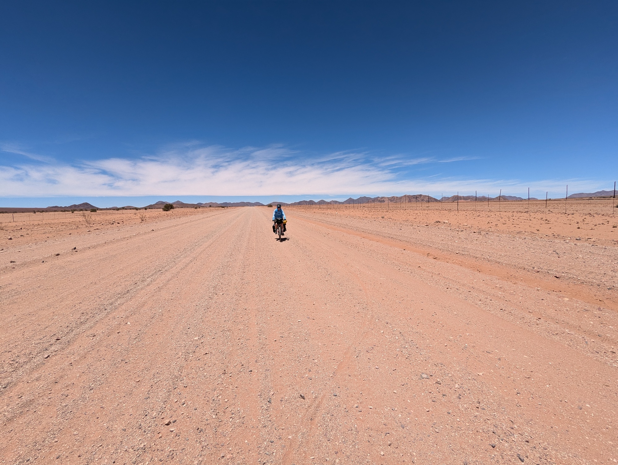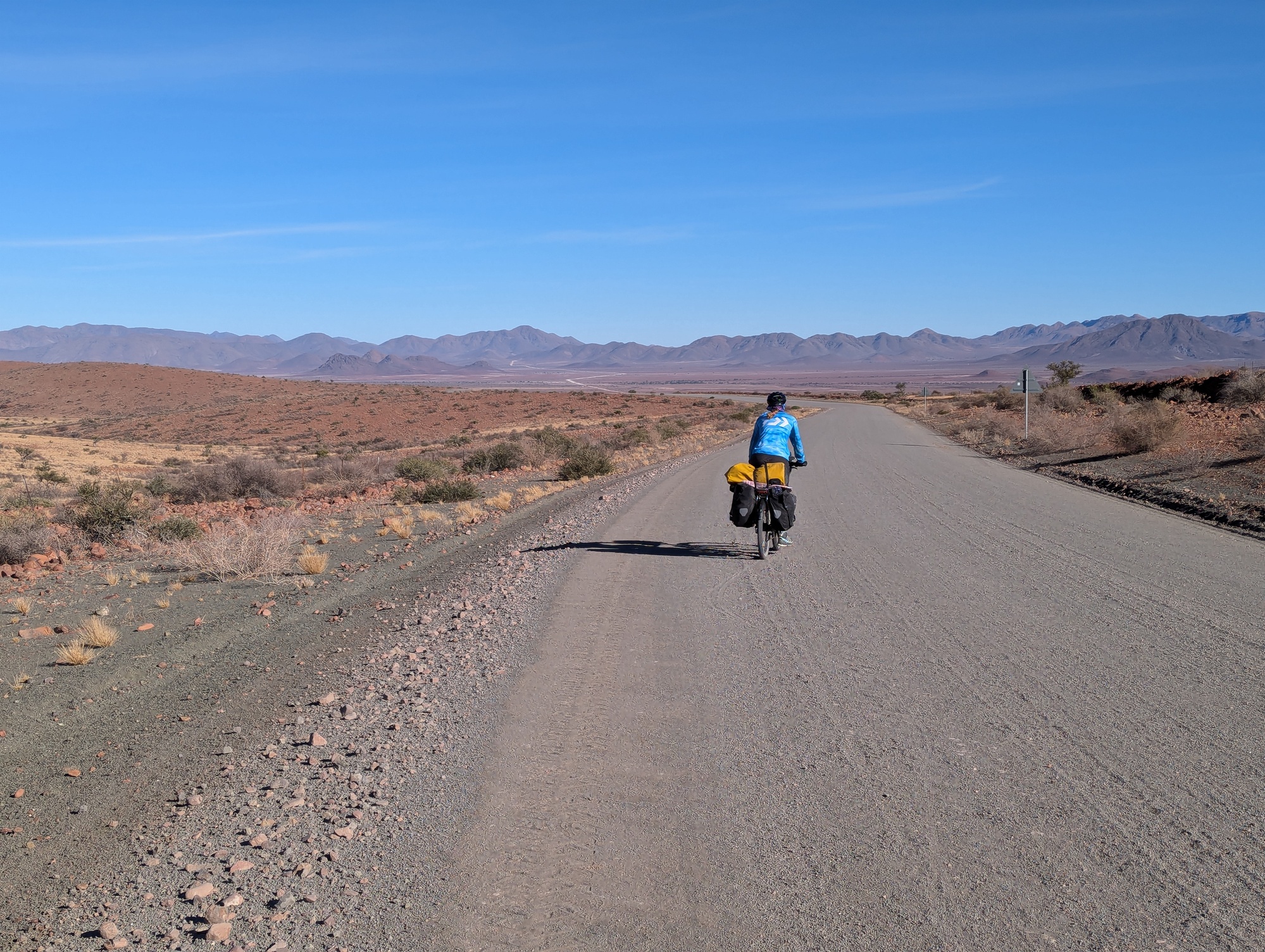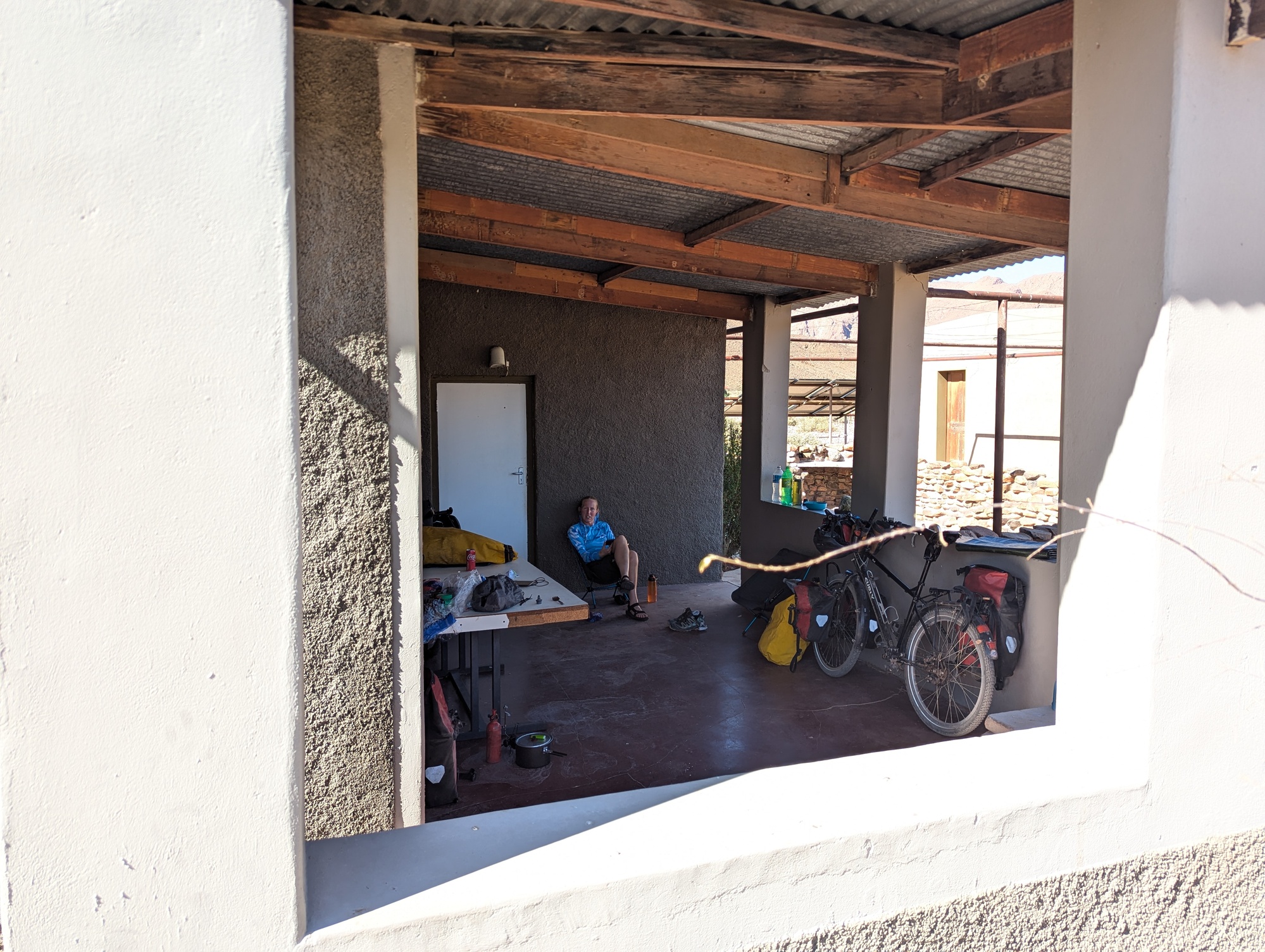 We knew we couldn’t get to Sesriem in one day, so we stopped at the last place we had heard cyclists would be allowed to camp – the ranger’s station in a private game reserve. For a small donation, we could stay in the house, with shower and toilet, and lots of running water.