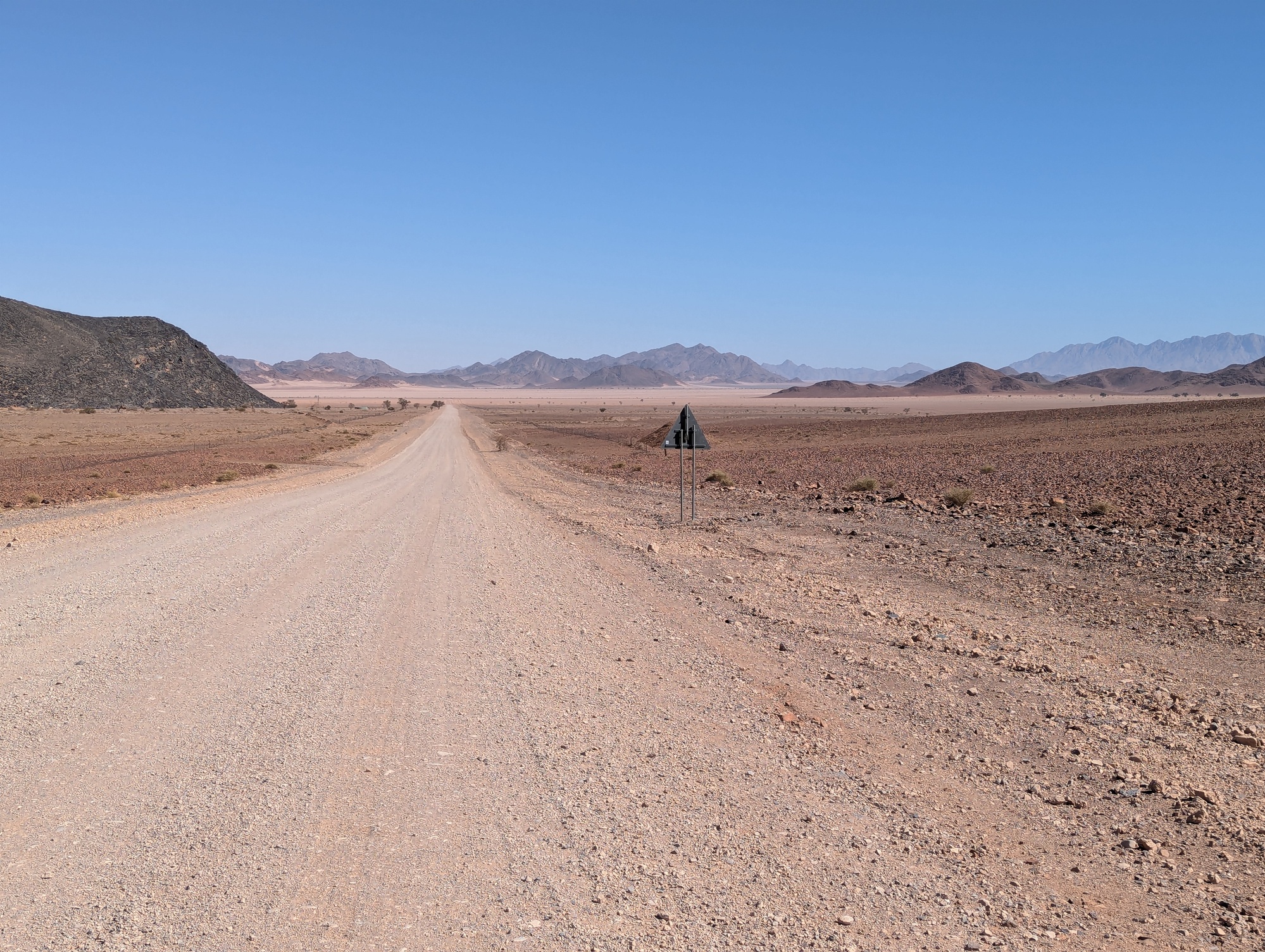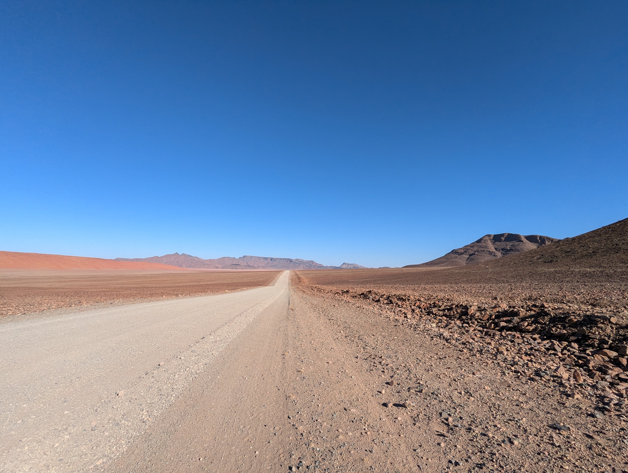 So far, so good, but there’s still some dirt before we get back on the asphalt at Windhoek. We should see this dead tree we came so far for.