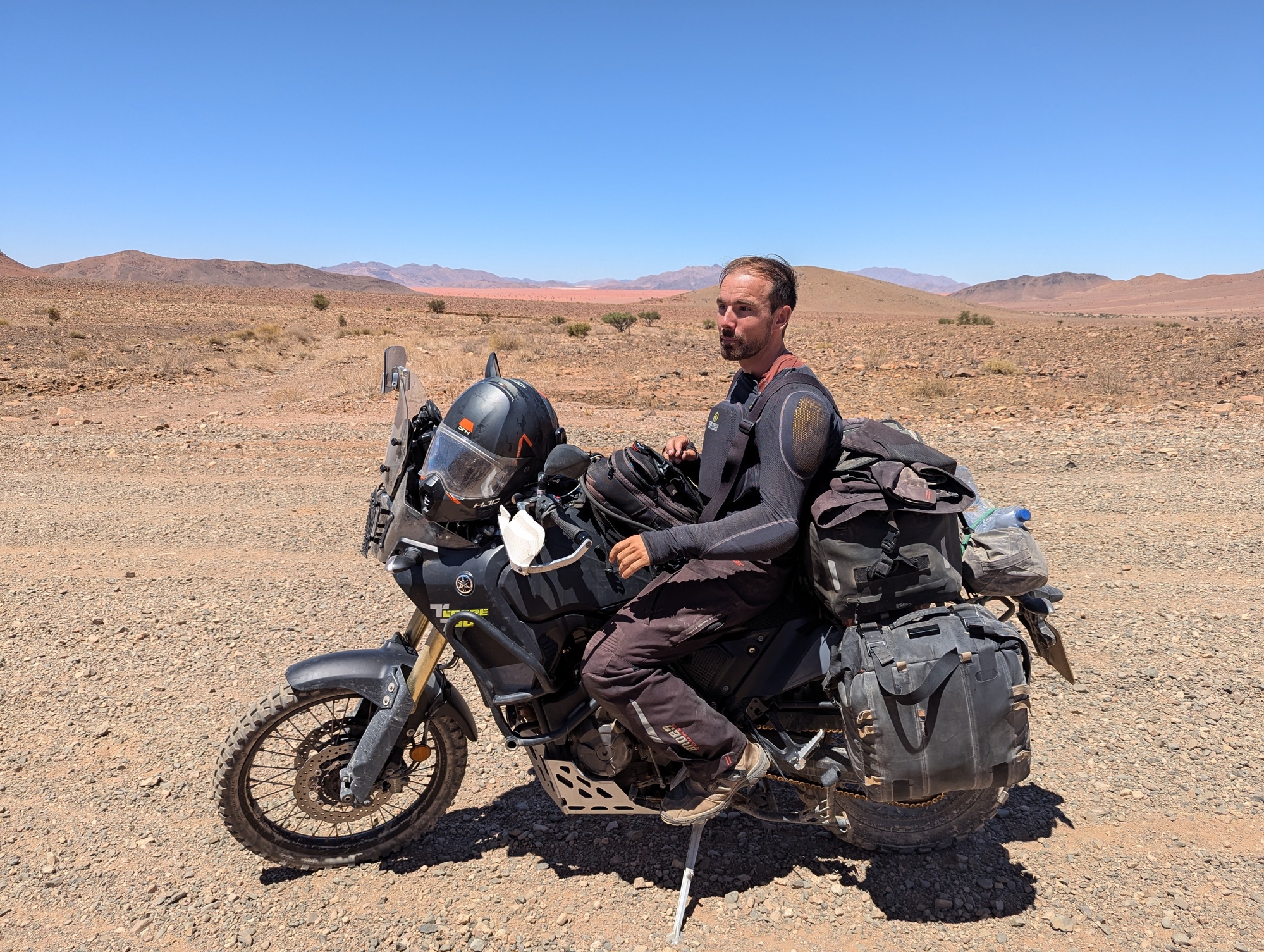 In the space of a few hours, we met more overland travellers – a couple from the Netherlands cycling the reverse of our route (from Kenya to Cape Town), and a motorcyclist who’d come down the west coast of Africa. Lots of standing on the side of the road (in the baking sun) chatting to the new friends. Commiserating on the state of the road.