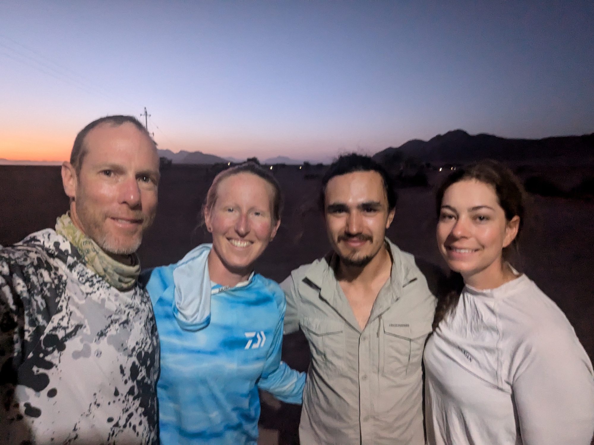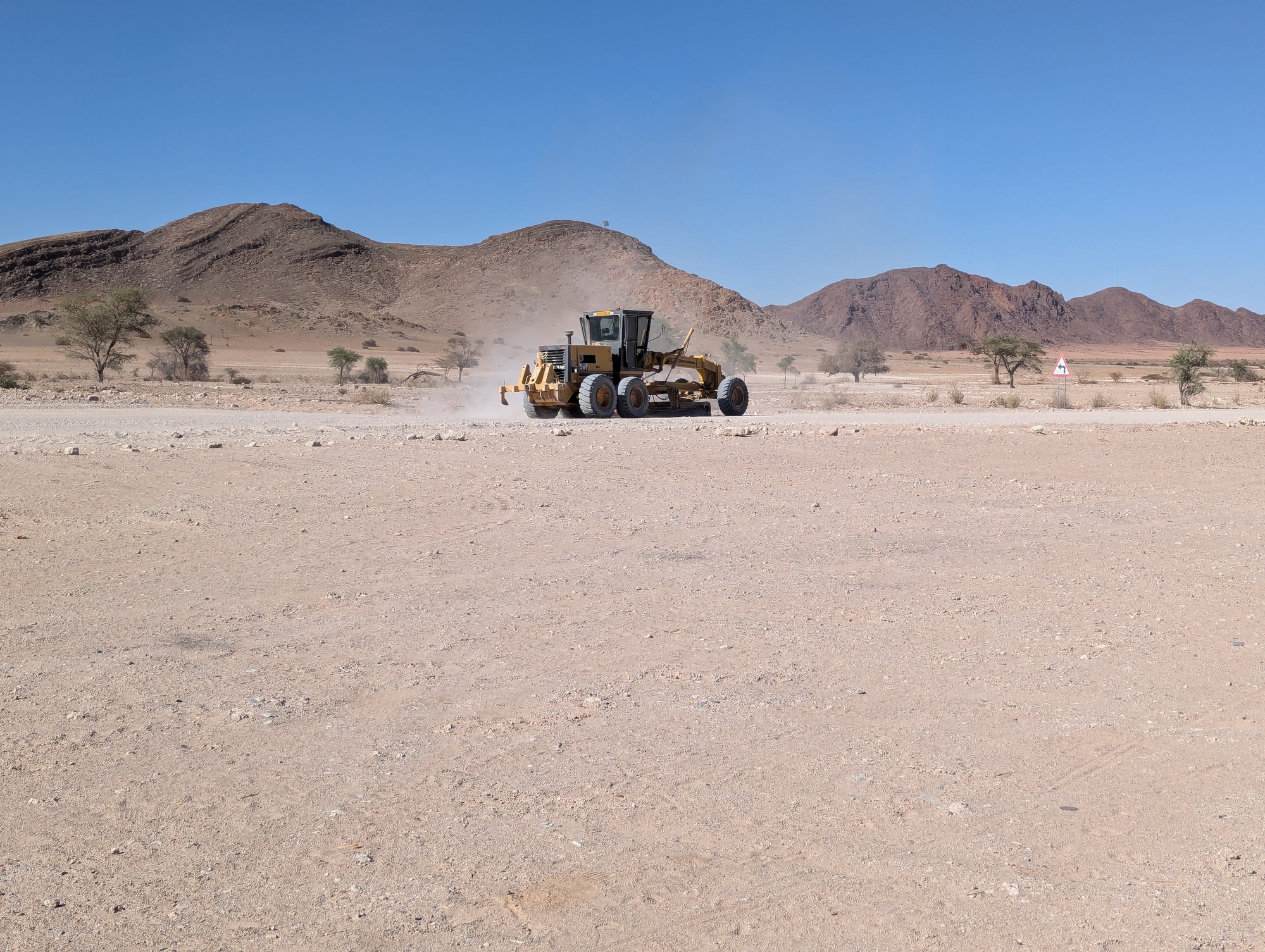 Headed off at sunrise. The Germans had to visit the dead tree and sand dunes, so we waved goodbye and took the tar road 12 km east to meet the C12. Some good timing – Julie and Nigel drove past just as we got to the dirt road.