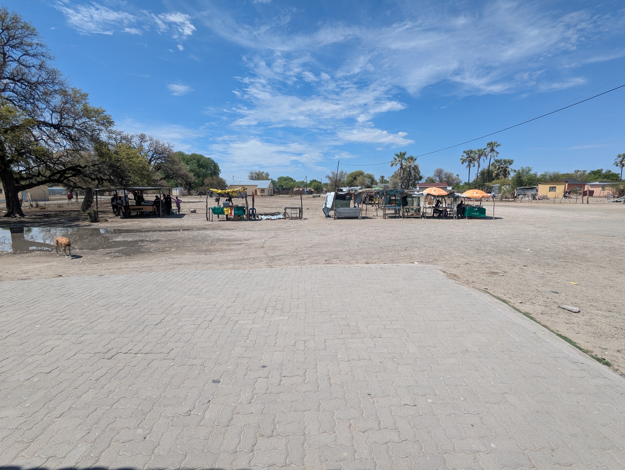 We got to Gweta about lunch time as the sun came out and turned the place into a furnace. Since everything was wet, we pulled into a small guest house and spent the afternoon drying everything. No internet again. This time the air conditioner gave a valiant fight that it ultimately lost against the heat of the sun.