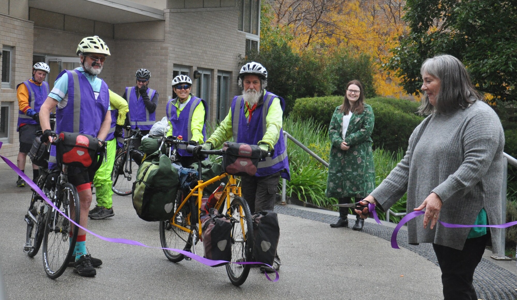 We found just a few people at ANU - Canberra's cyclists fear the rain. After a few brief speeches, full of kind words and encouragement, Alex Sloan cut the indigo ribbon and we were off.
