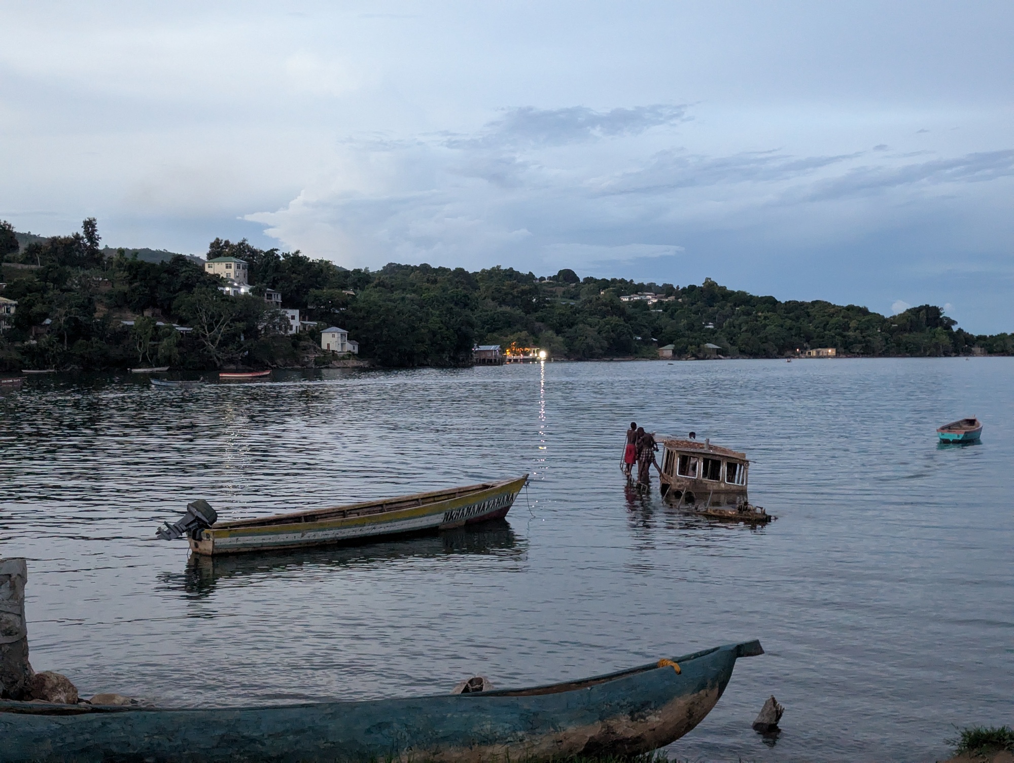Nkhata Bay is a large village, basically a tourist village (we even found banana & chocolate pancakes). For sure it has no bike shop that can help. I found a cheap (6 speed! Heavy duty!) 1/2” x 3/32” chain in a hardware store. As a temporary, very optimistic, likely futile, effort, we’ve reversed the chain ring (which is not meant to be reversed), reversed the sprocket (which is, but is worn well past the point of needing a new one) and fitted the cheap, cheap chain. It has gone 1km without gear pedalling very slowly and kind of works. Tomorrow, we go 1000 m uphill. At least we can push uphill if need be.