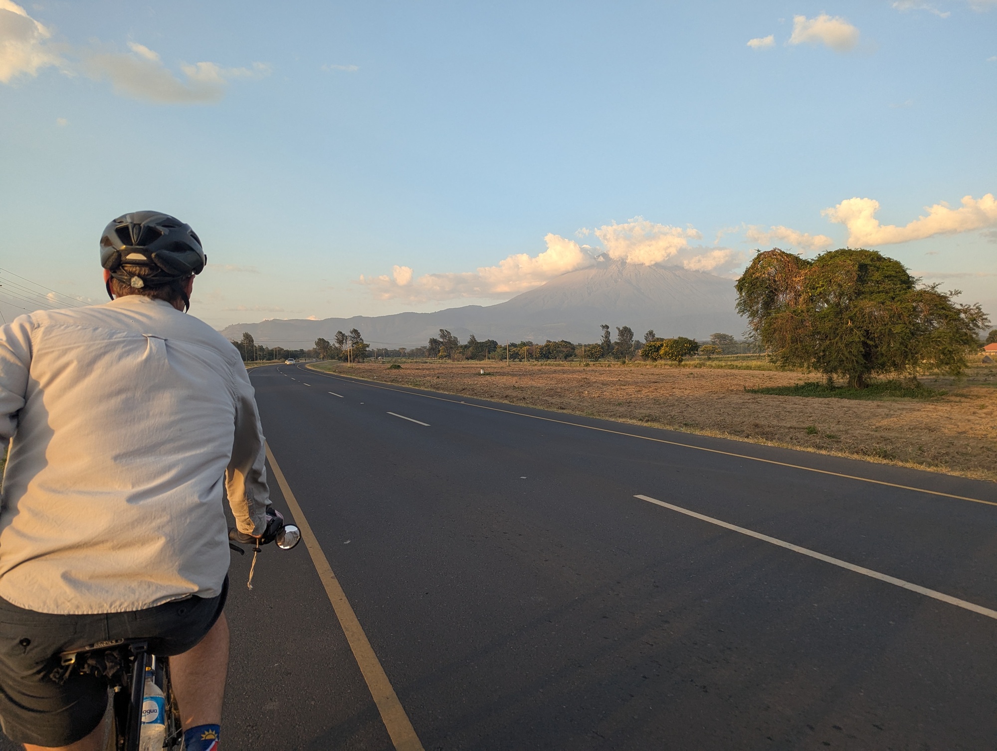 More farmland and grassland and we skirted along the edge of a couple of the famous National Parks (Tarangire and Lake Manyara). We kept our eyes peeled and spotted some zebra, wildebeest, lots of goats, cows and sheep (and Maasai herding the domesticated animals). We almost saw giraffe, and evidence that elephant had walked through. And our first glimpses of Mt Meru - not as we originally thought, Mt Kili. And we want to forget about the headwind. This was only from the main road – there are surely more animals just out of sight of the road.