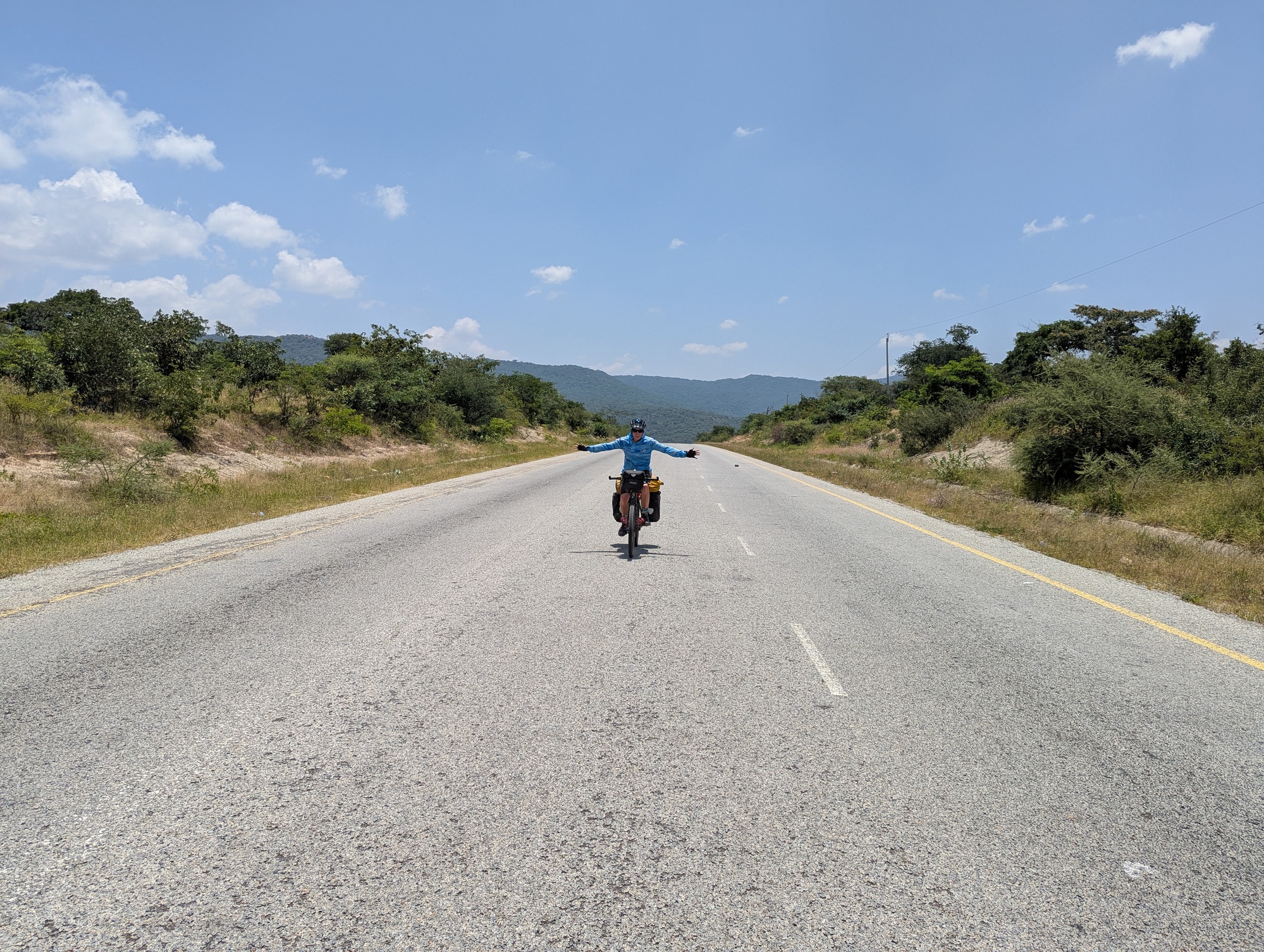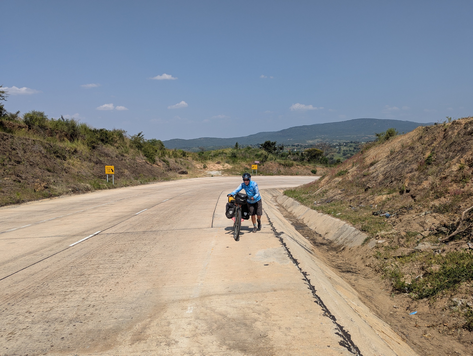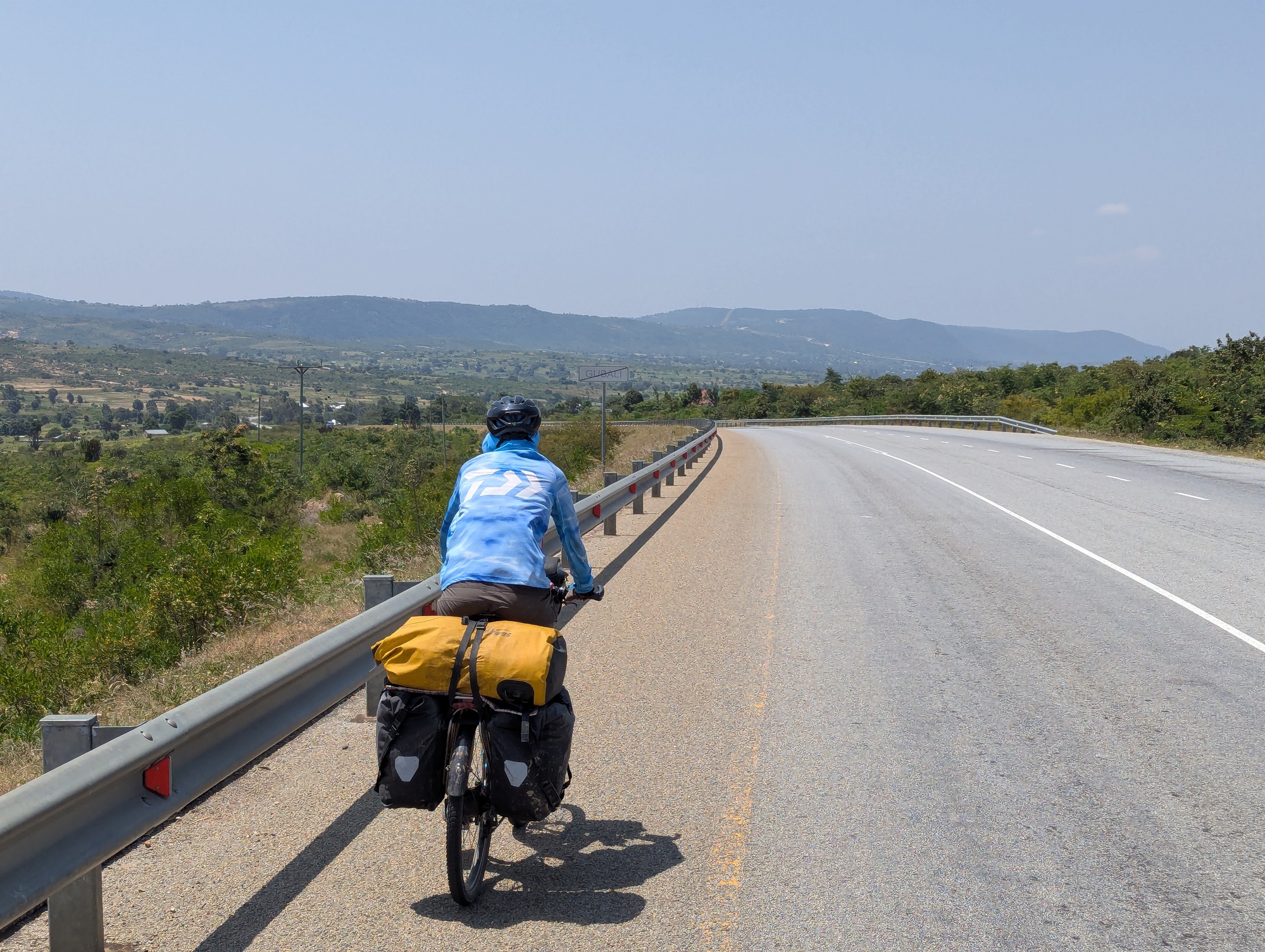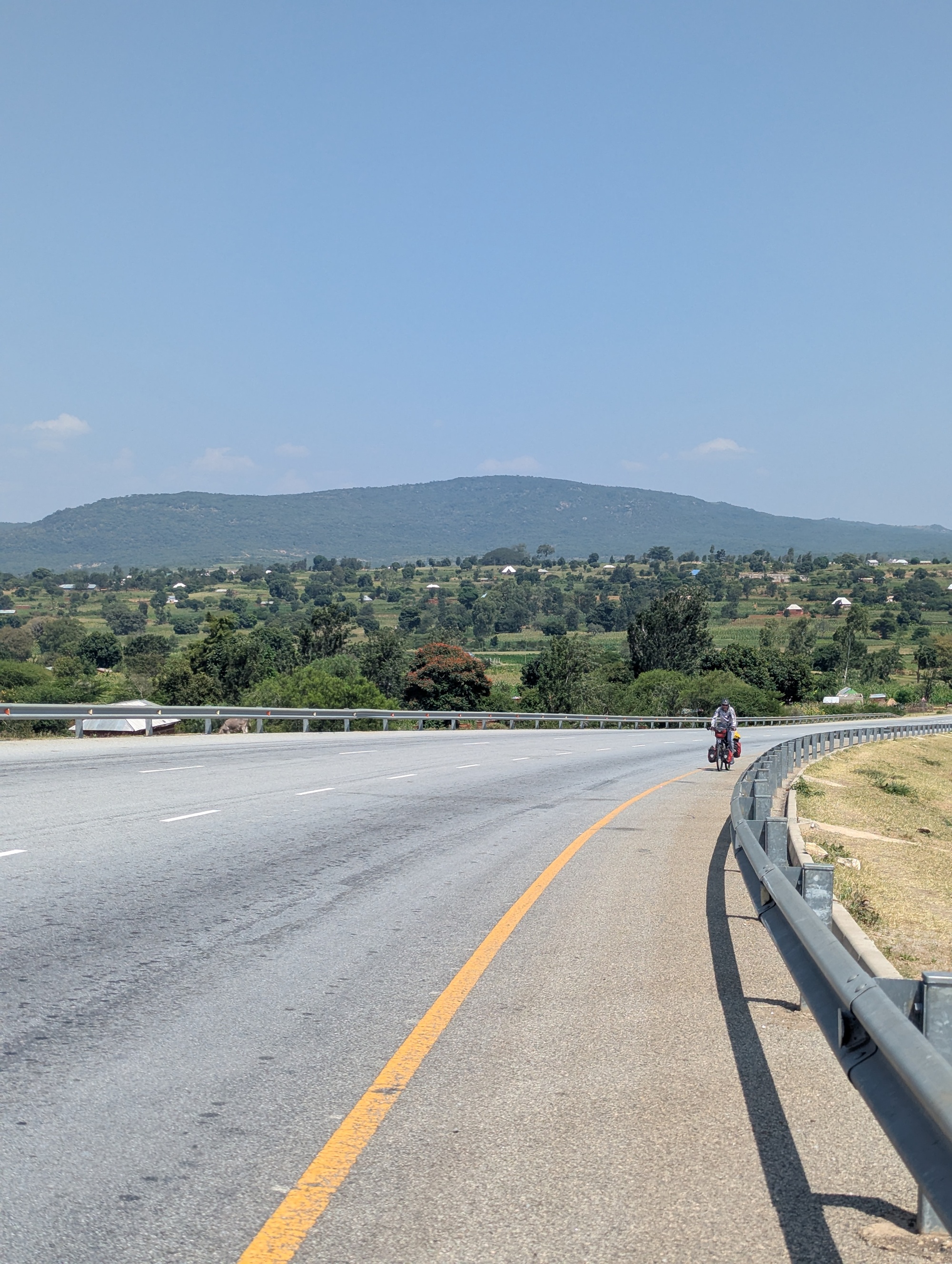 Five days of riding on this section. The first part was a bit dull – good road, flat and long for a bit over a hundred kilometres, with the same farm scenery we’ve seen before. After that the scenery got a bit more rugged – between the trees we could see the escarpment between the higher section we were on and the Maasai Steppe. We followed the escarpment for a while, then we climbed up and over a reasonable range. The Michelin roadmap designated this as a scenic road, and it was, but I think we could have seen it at 80 km/h and appreciated it about as much.