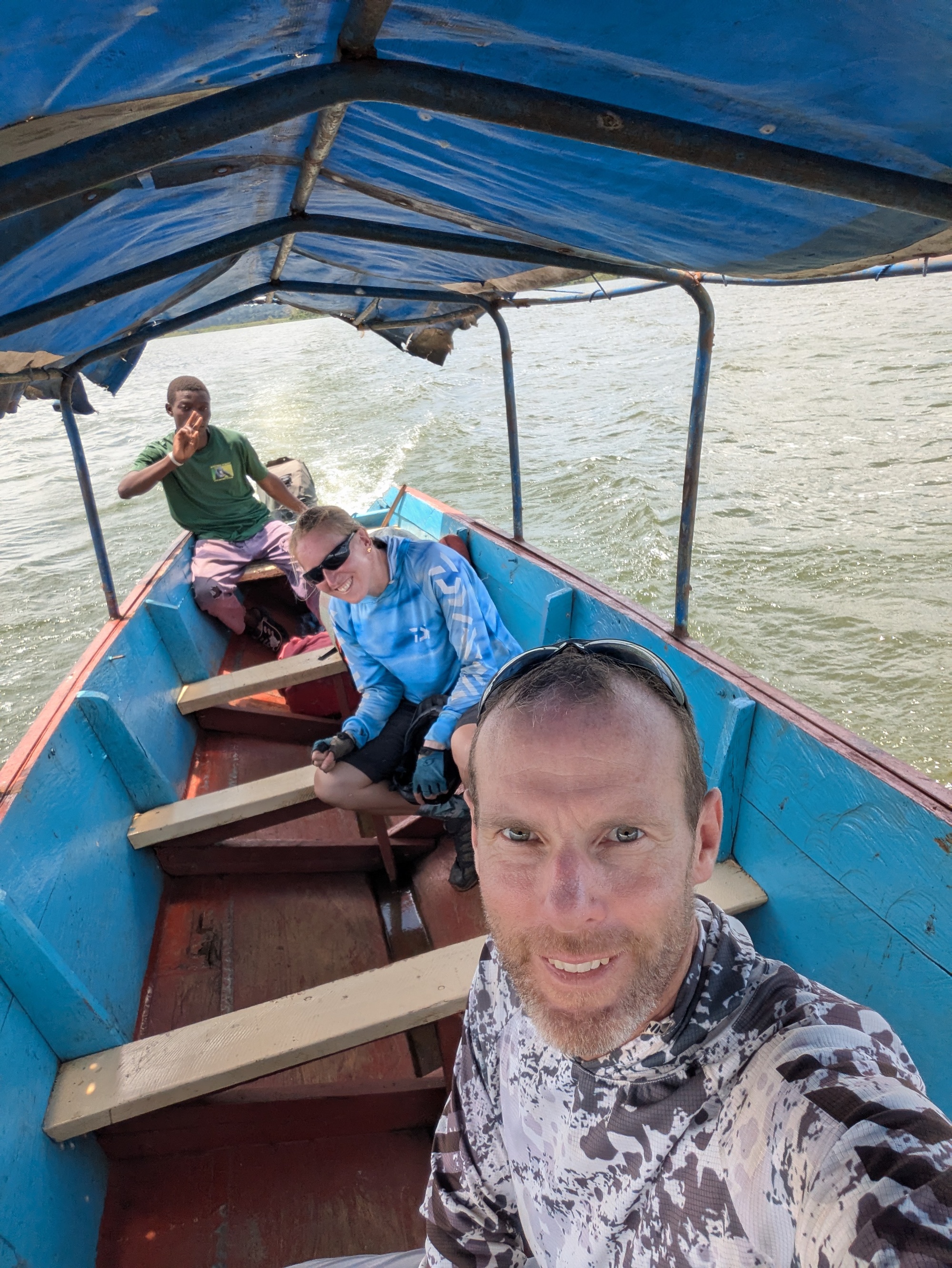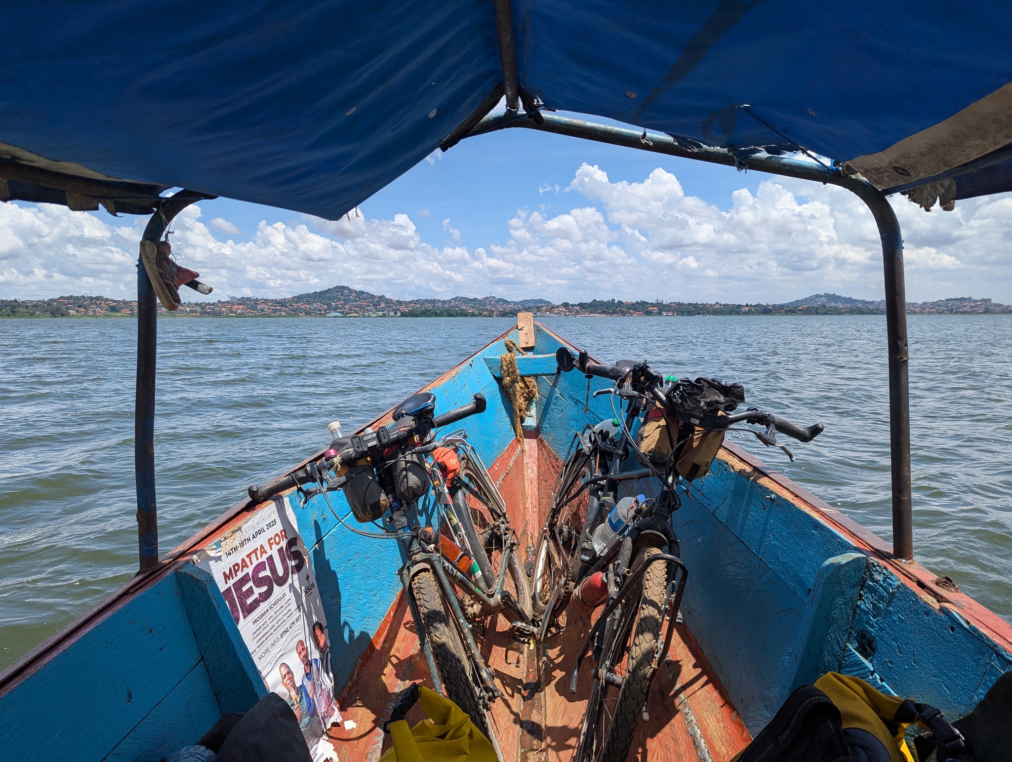 At the end of the dirt road, there are a collection of small boats who’ll take you and your bike (and probably a motorbike and anything it will carry, i.e. anything that can be balanced, however unreasonable it seems to carry that on a bike). In this way we now have a (short) Lake Victoria cruise as part of the journey 😊