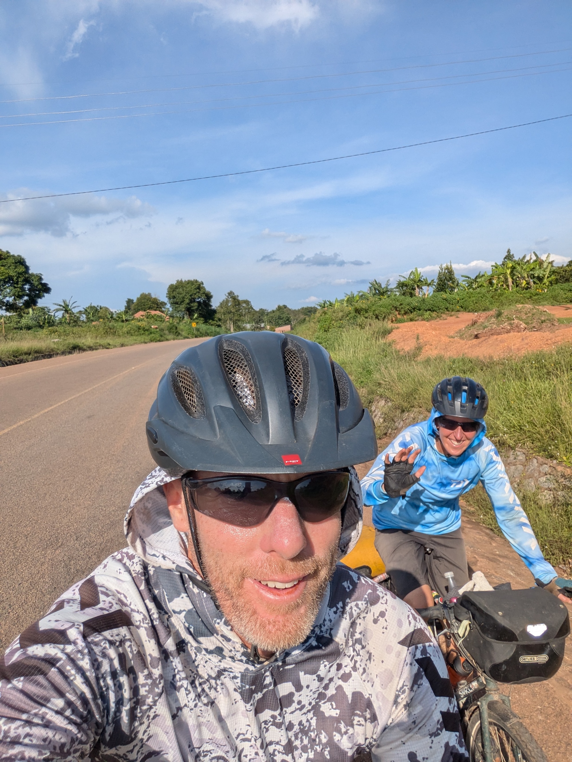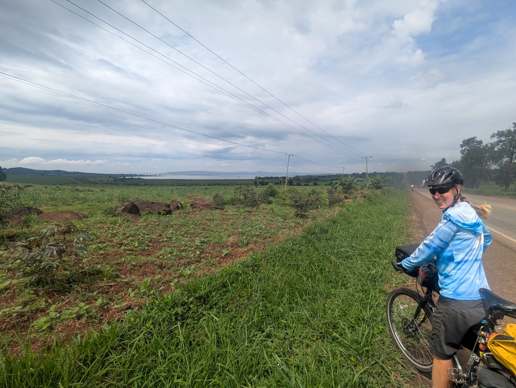 From Iganga to Jinja we didn’t see a lot of options but take the big, ugly, noisy, smelly, truck infested main road. At times it had a decent shoulder, at others, not so much. At least the trucks all gave us enough space, but it would be better to avoid if possible. Just before Jinja we got our first glimpses of Lake Victoria. The map shows that the lake is huge, but the way the land folds and the many islands close to the edge makes it look like a bunch of joined lakes.