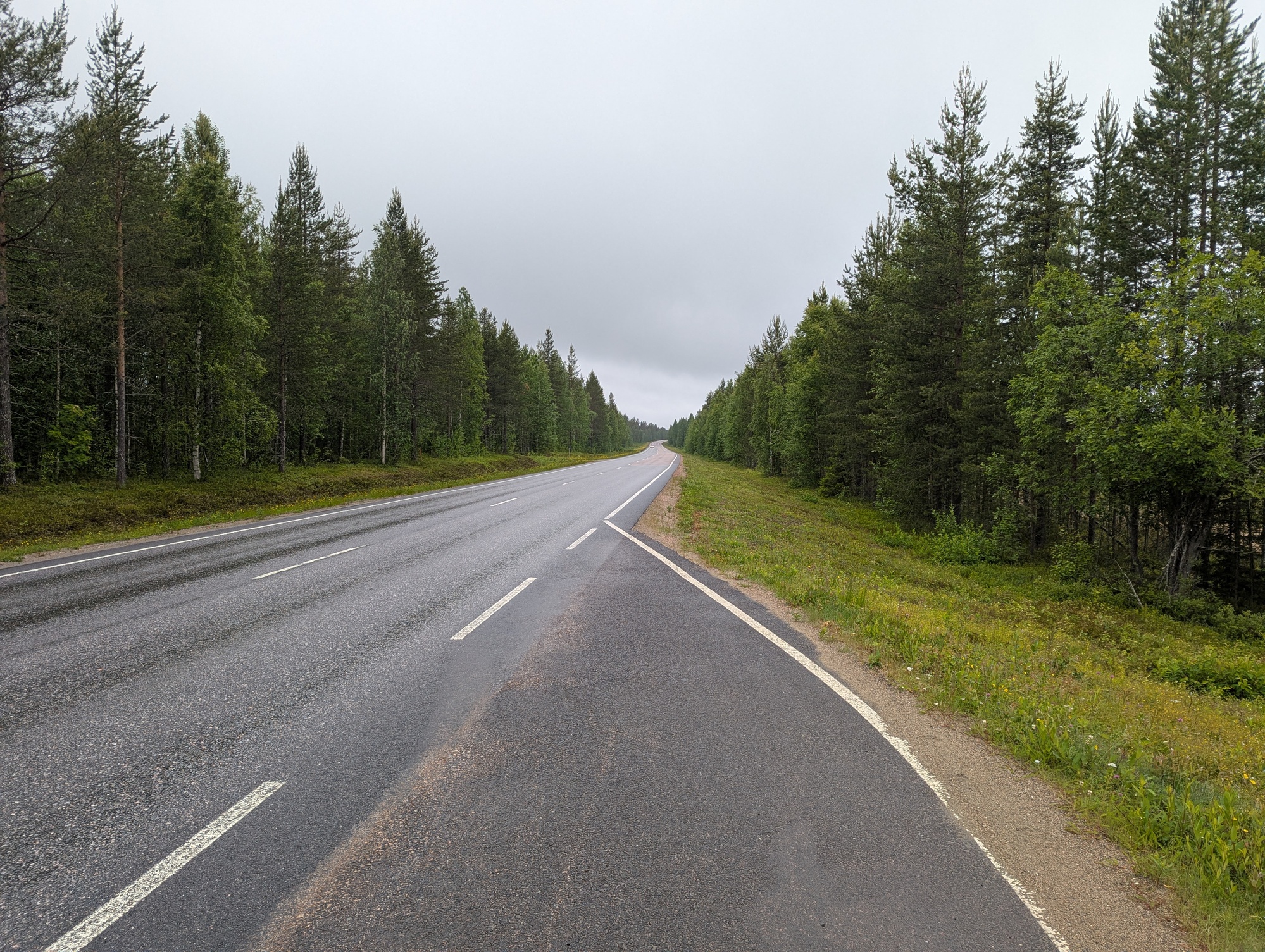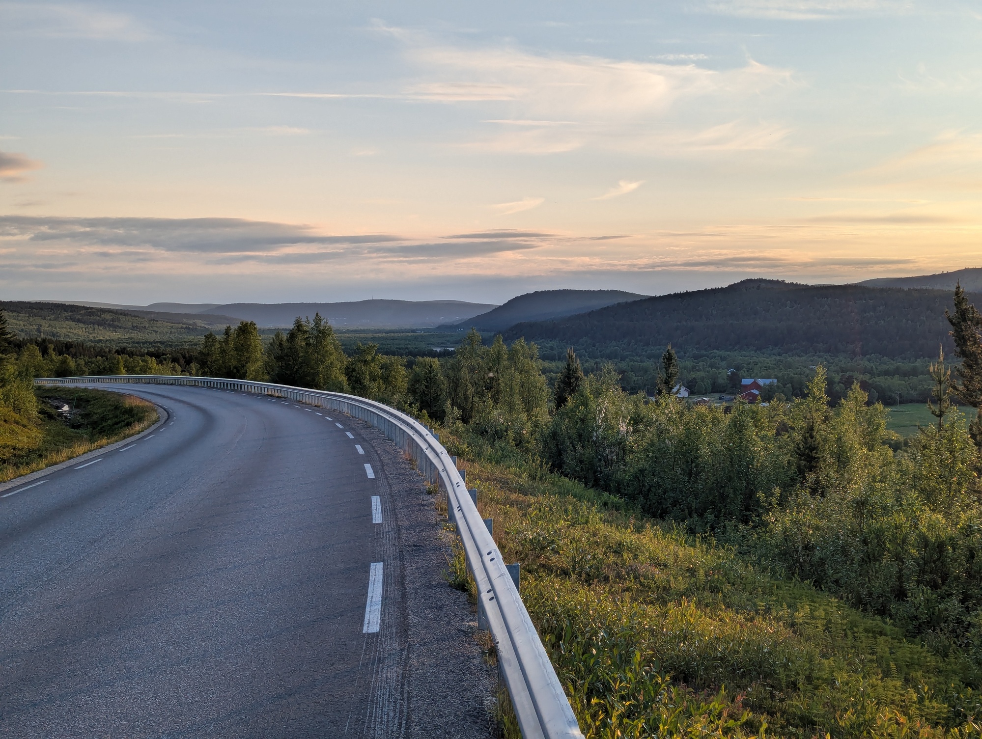 Finland is quite long. It looks huge on the map – partly because the map projection accentuates the distances closer to the poles, partly because it is huge. One thing that was pretty fun was watching the sunset and sunrise times approach each other as I went north, and then the GPS suddenly could no longer calculate the sunset time north of the arctic circle. Even now, almost a month after the summer solstice the sun doesn’t set in the north. It does get colder as the sun approaches the horizon but doesn’t get dark. The land of the midnight sun.