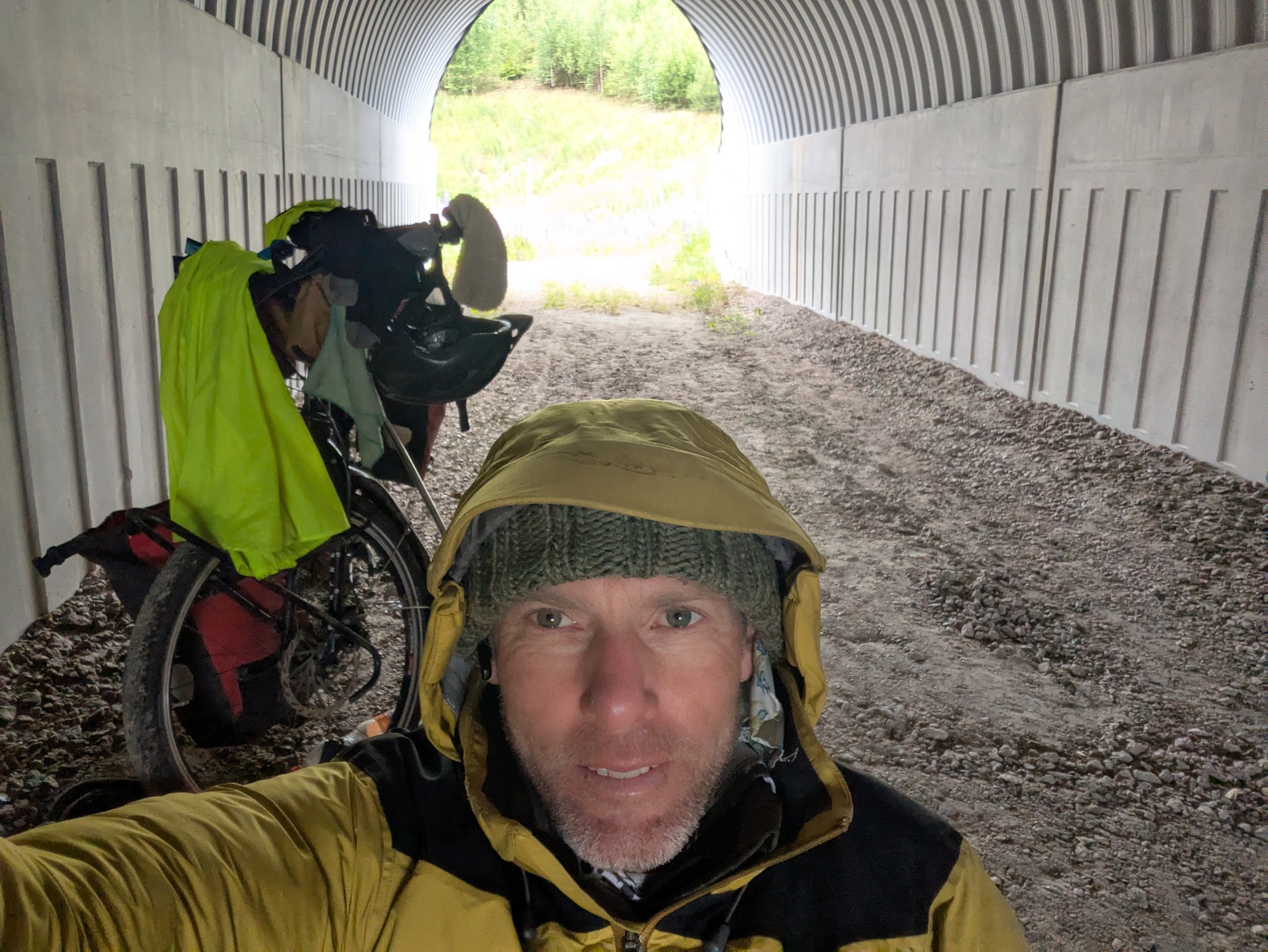 I had a target to get to Nordkapp before Cath was done touring in Italy with her family. I thought I’d need to average 140 km/day. On a good day (no rain) I worked out I could ride a bit further than this: 160-200 km. As the distance per day increased, I (stupidly) wondered if I was too old, or could repeat my longest ever day (and put it on Strava, so now it ‘happened’). And with the help of the midnight sun (and hindered by the sudden appearance of rolling hills just when I thought it would be totally flat forever) I rode for 16 hours one day to get 300km in a day (does it count as one day if you finish at 4am – well into the next day?). And then collapsed into the tent. It was actually a nice experience riding for hours and hours with the road to myself and the sun not setting. I ended up with Helsinki to Nordkapp in ten days, averaging 162 km/day. With my heavily loaded touring bike (I don’t think I could have gone much faster!)