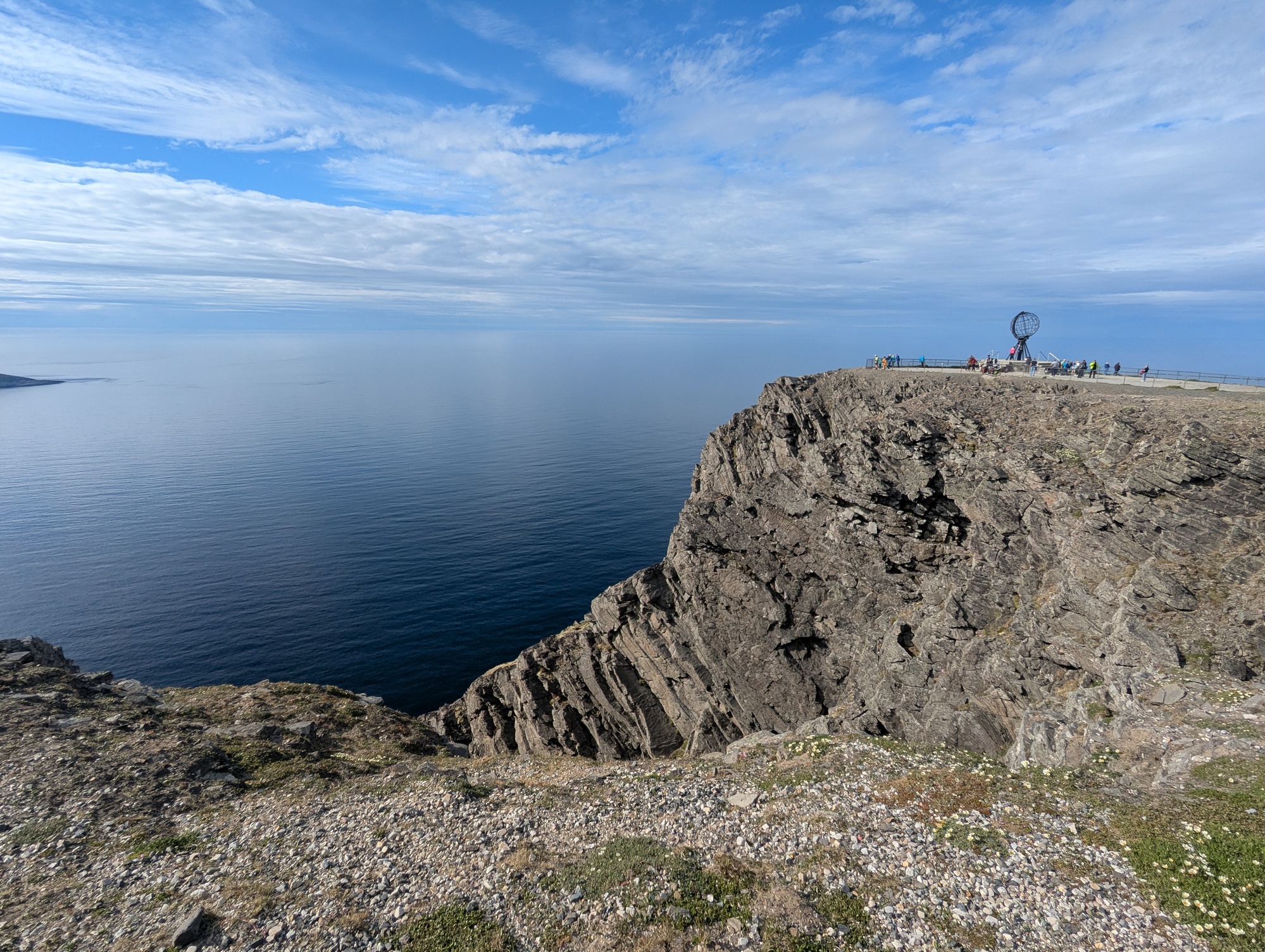 I arrived at Nordkapp two days after the really long day. And the weather was ridiculous. Sunshine at Nordkapp. I don’t know how often that happens, but I feel it was pretty good luck. The road doesn’t go to the most northern point (if you even count the island as part of the mainland), just the most dramatic place on top of the cliffs. To hit the northern point there is an 18 km walk (9 km each way). I don’t expect to come back here, so I did the walk as well. I haven’t walked that far in some time, so suffered the next few days – exhausted by the ride north, then with bad DOMS from the walk.