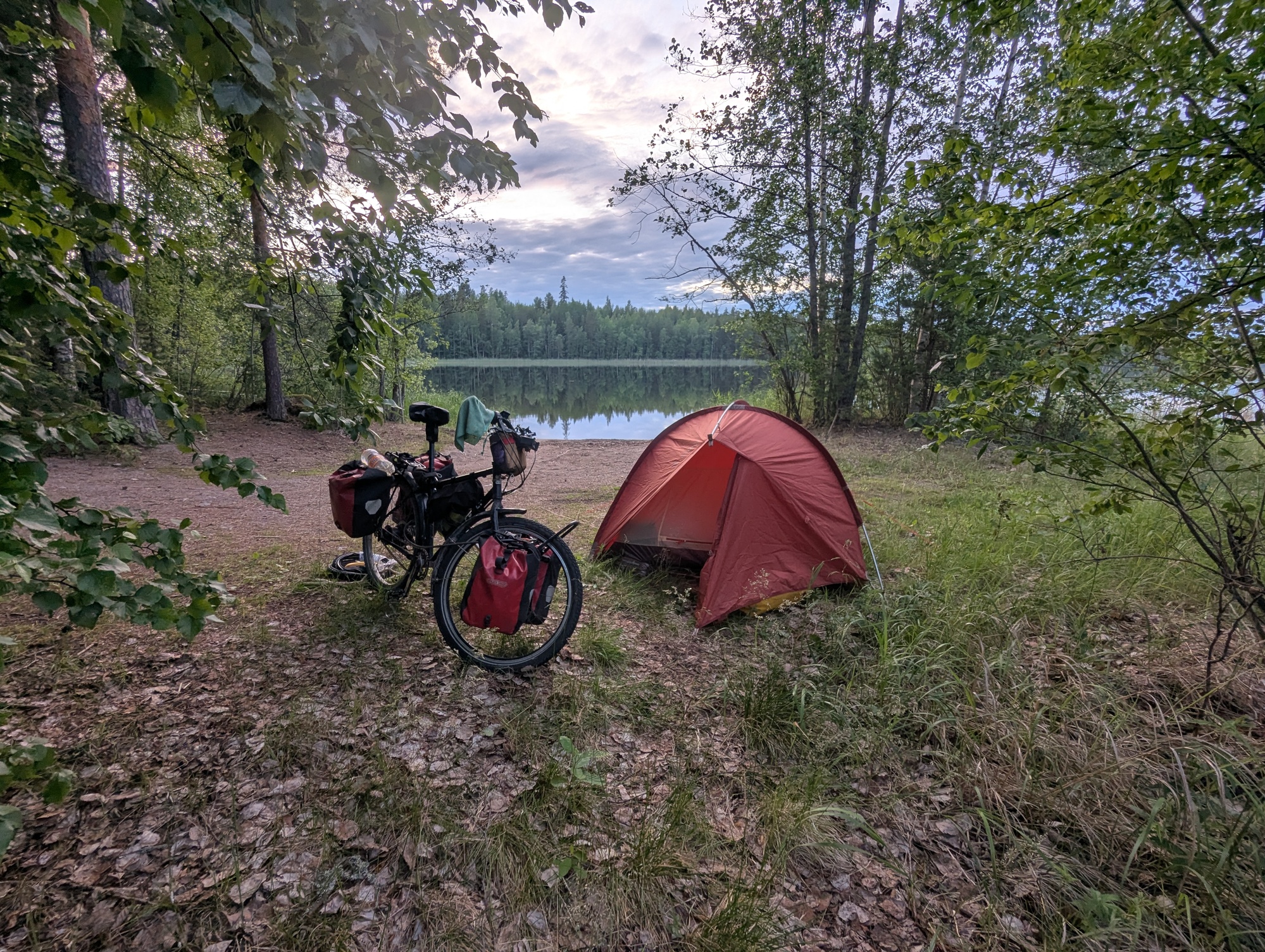 I must admit I almost gave up a couple of times in Finland. First time I was woken by rain, packed up in the rain, and was loading the bike when I noticed a flat tyre. That wasn’t fun. Next time was when I was being seriously mauled by mozzies and every other biting insect joined in. And then again after 100km of rain. But this time I was rescued by a café who let me sit in front of their fire for an hour and they fed me reindeer and salmon sandwiches. That last one turned out pretty well and was a good reminder of why I like to do this.