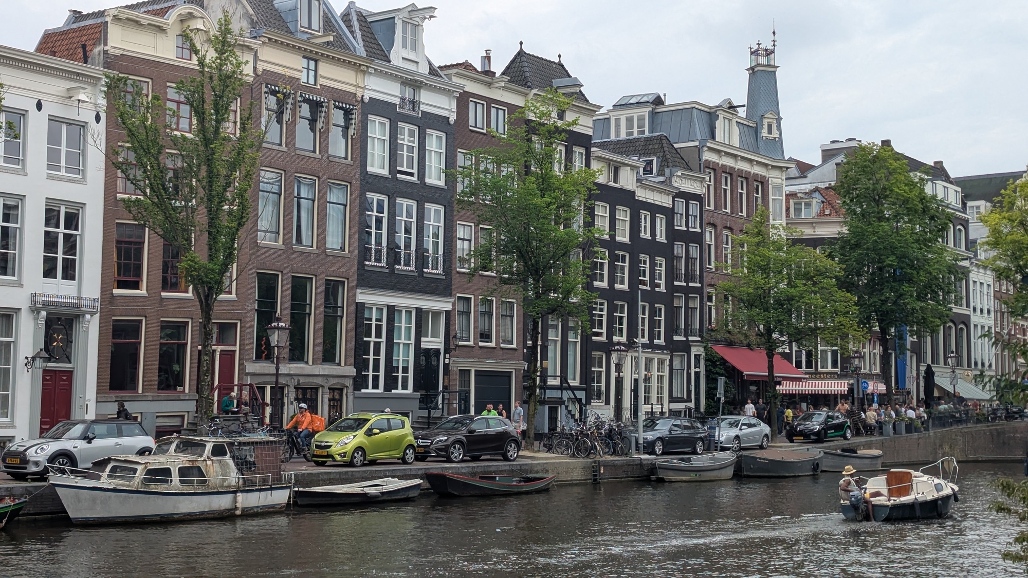 From Weeze we headed NW: back (for Stephen) and on (for Cath) into the Netherlands toward Amsterdam. It’s pretty flat. We went via Utrecht, a town with a canal, as a warmup to Amsterdam.