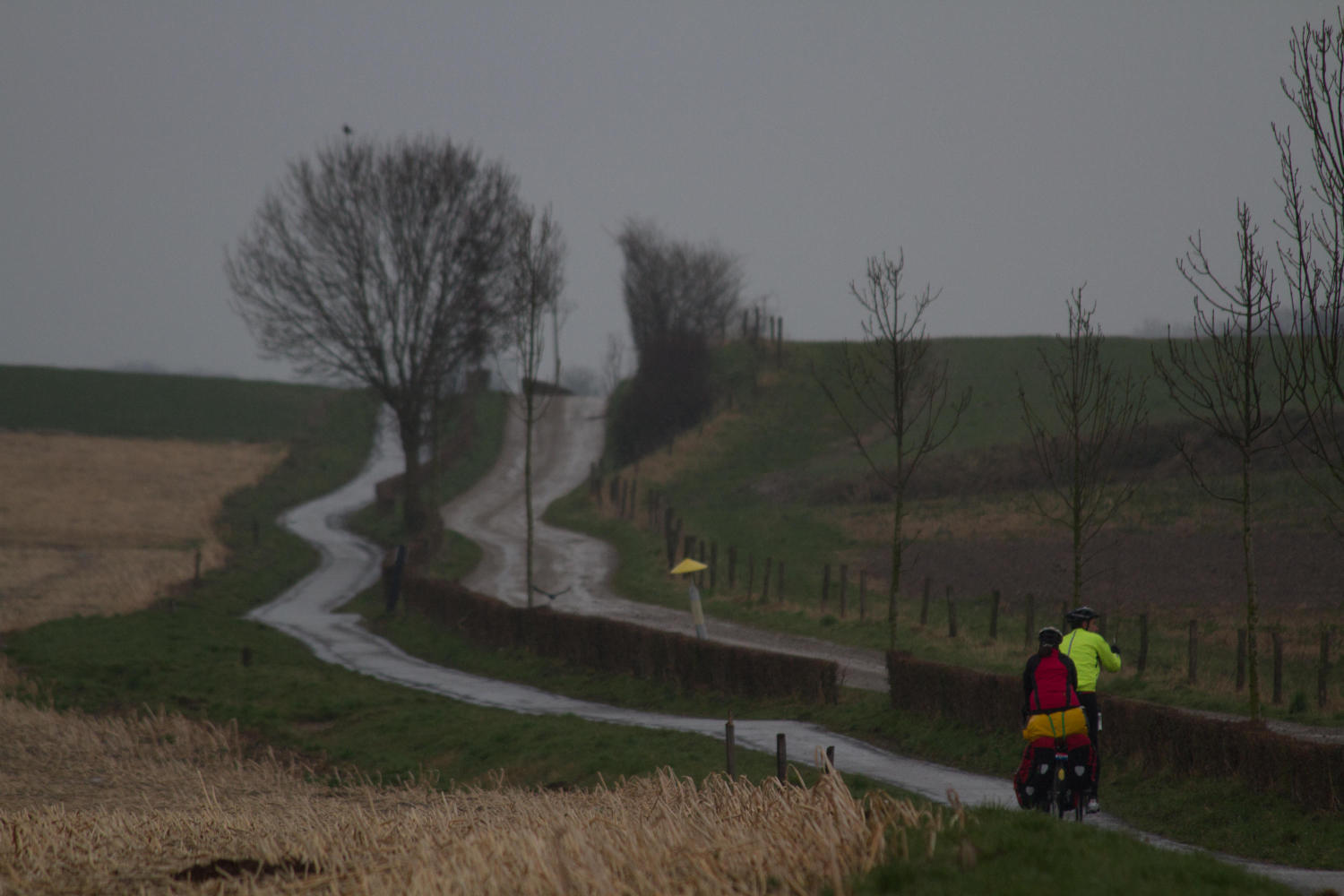 We wake to a drizzle. Luc will still ride with us and show us out of the city to the cemetery. Besides rain, it is cold ride then Luc heads back to Maastricht as we continue on in search of coffee. We find an open café for coffee and appeltart. We watch as the rain continues and decide this is a good day to try our waterproof socks. We have discovered the next big thing not to do without on a long bike trip!!