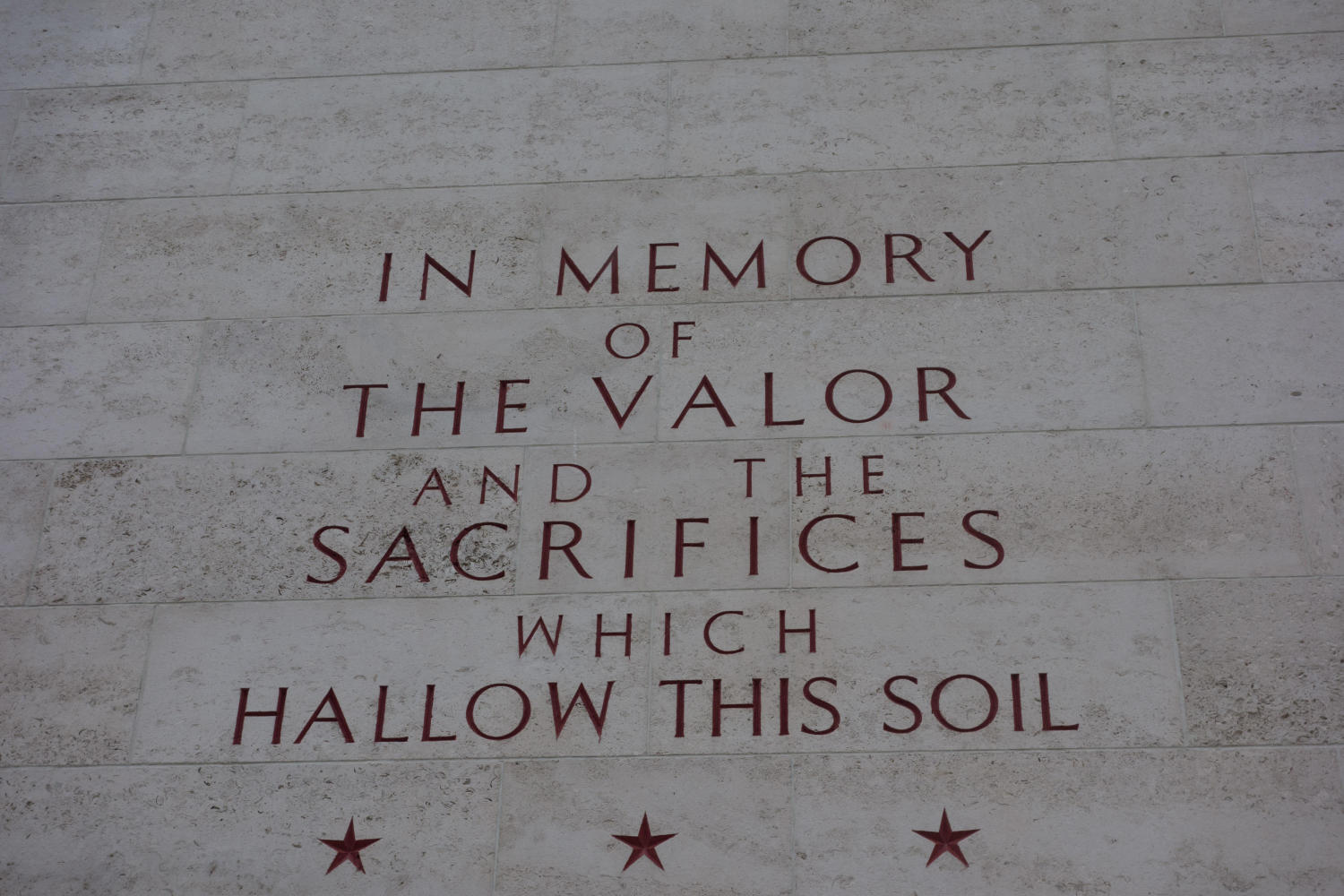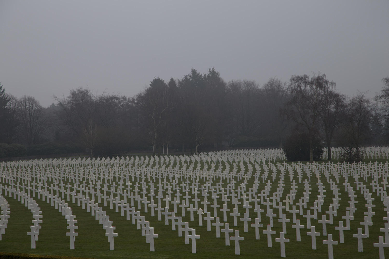 In the town of Henri Chapelle we stop for a meat croquette and French fries and then head for the Henri Chapelle American War cemetery. We had visited this cemetery once before in 1994, on our way back to Patrick's home town after his around the world trip. Rachel's father landed on Utah beach in July with the second wave during WWII. There is a giant map displaying the movements of troops and we see the emblem of the 8th division Golden arrow, Pathfinders. These soldiers who died here are buried on American soil and the memorial is very respectful of their sacrifice.