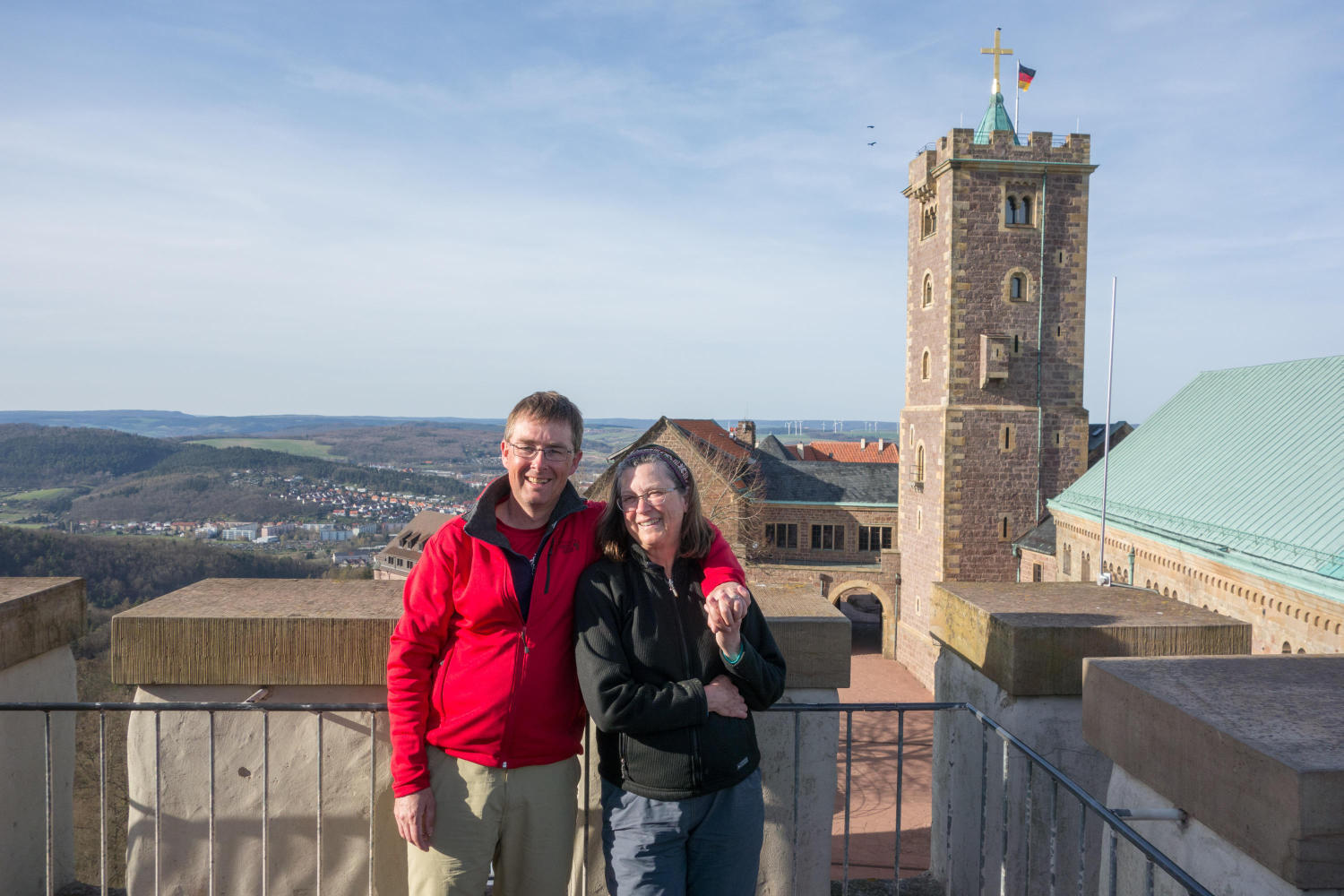 Our hosts drive us up to the "Wartburg", a castle overlooking Eisenach where Martin Luther spent time translating a New Testament bible from Latin into German. The Catholic church did not like this at all, their preference was to keep the general population dependent on the priests interpretation of scripture.
