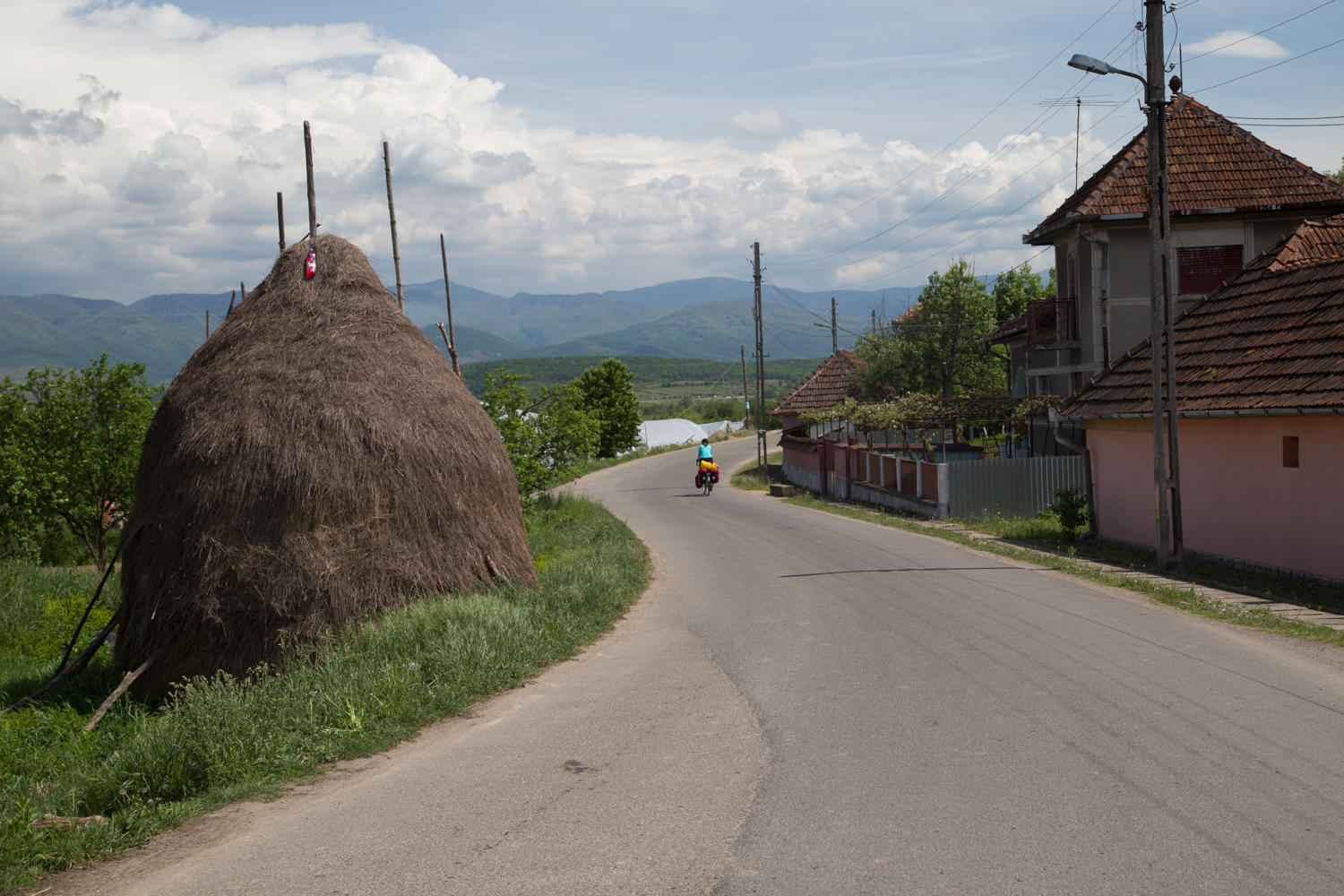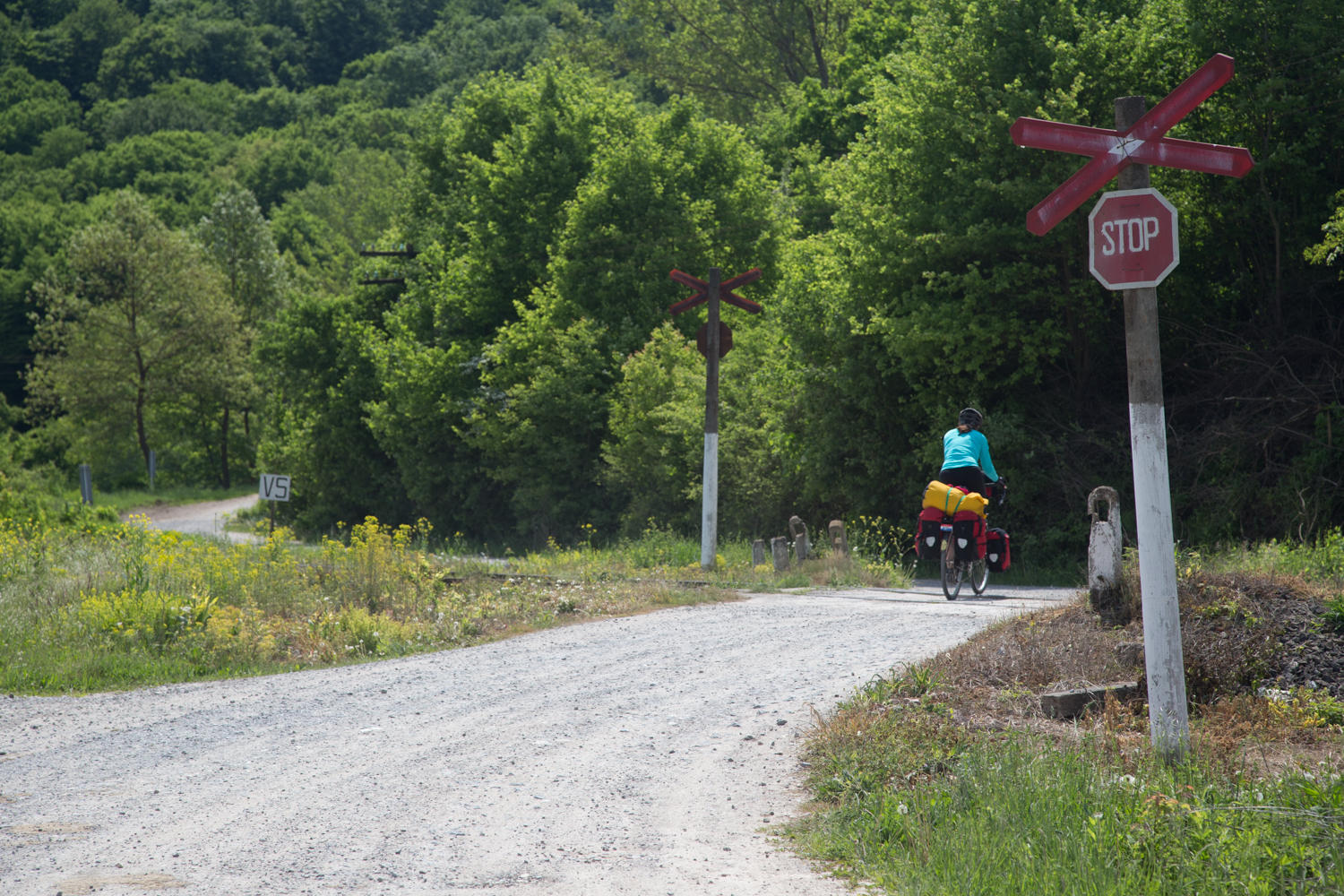 "Ouch this hurts", we haven't had hills for 3 days and now there is one right out of the campground! The hills through forested countryside continue for another 20 kms, then we reach a ridge and a long slow descent to follow the Cnsul Negru River and railroad and a gradual climb to Stei.