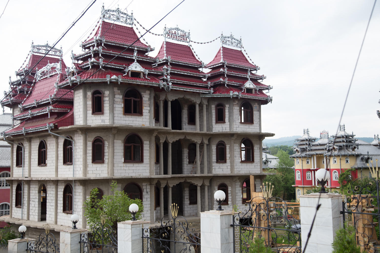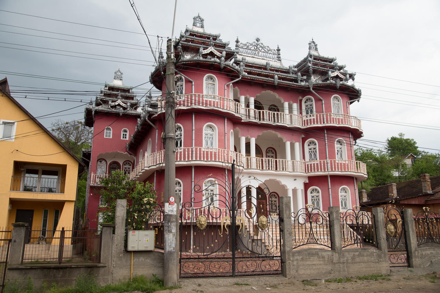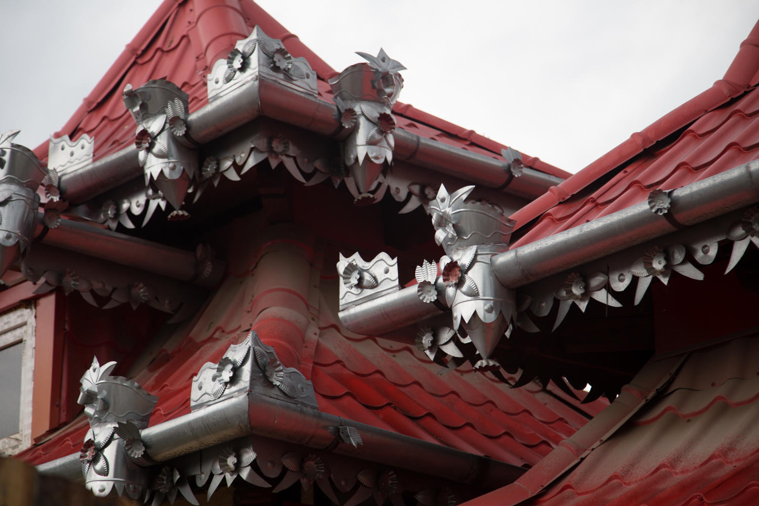 No idea why, but there seems to be some competition in this upscale neighborhood for who can have the most ornate metal roof.