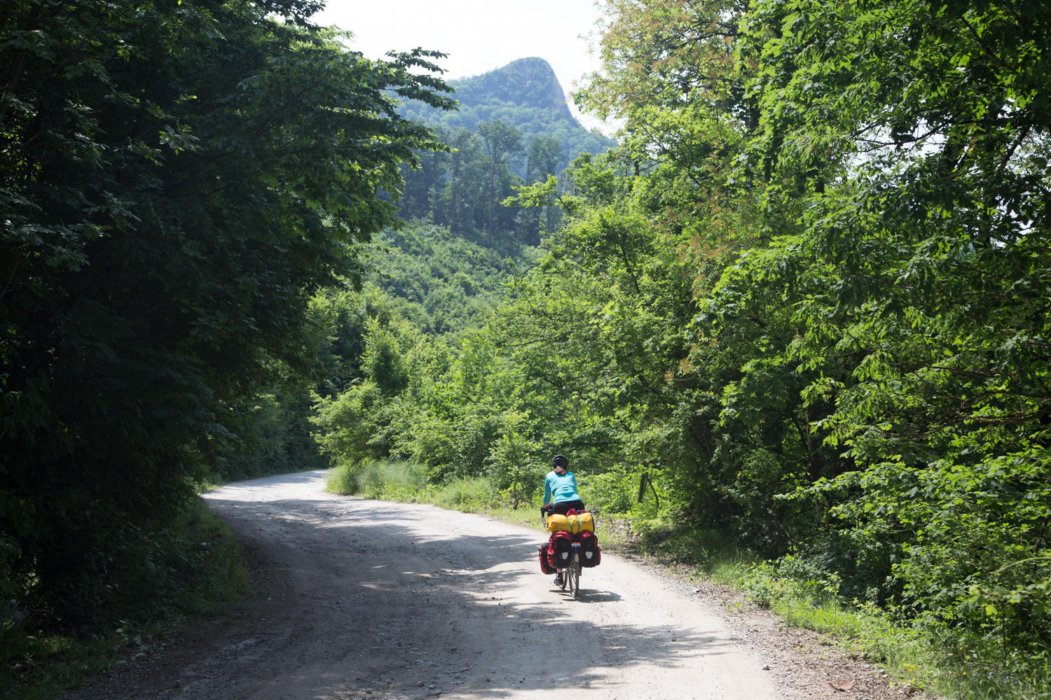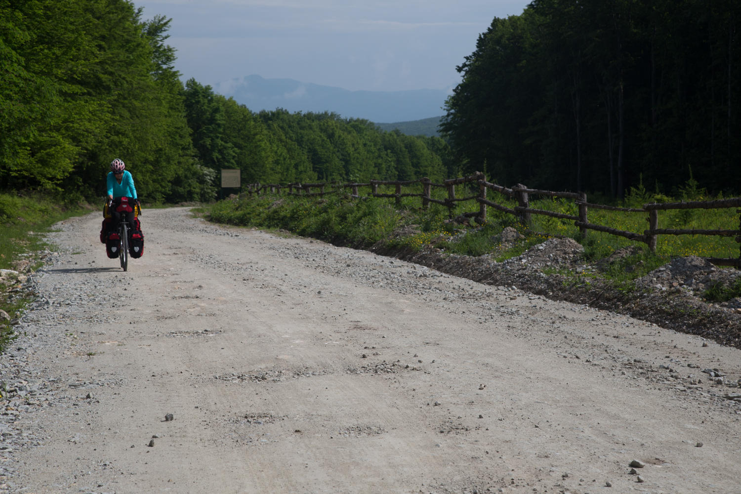 "I think we are going down just as slow as we went up" says Rachel. After the 7 kilometer 10% grade climb that we pushed our bikes up, we were robbed of the downhill. The road is unsealed, with gulleys and potholes and rocks to avoid. This makes the descent slow and our hands hurt from braking not being able to go very fast. We go through forest and gradually work our way down until finally a view of the Danube River.