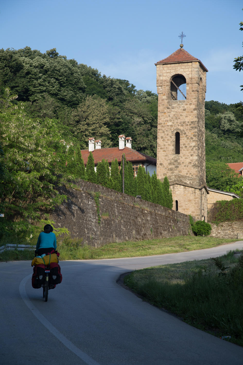 Right out of Negotin we climb up onto the plateau. Halfway up we pass a monastery.