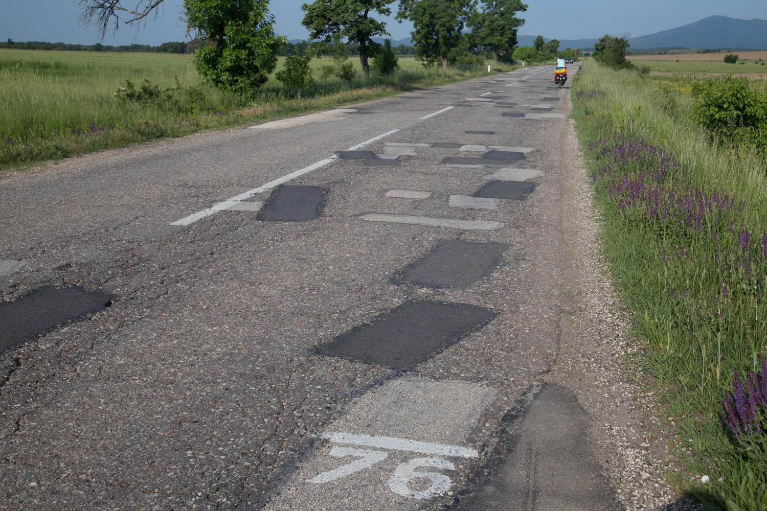 The bikes have been stored overnight in a "garage" and it causes some hassle at 5:30 in the morning to find the keys. We want an early start though, first because we are still on Romania (central European) time, and second because it promises to be another hot day. After about 20 km we have the choice between two roads to our destination, either the main one we are on right now, or another that meanders a bit more and passes through some villages. Traffic is light, or we go for the quicker option. It is barely 11:00 when we get to Zajecar and find our Serbia Tis hotel. From the outside it looks like just another concrete and glass building, way past its prime soviet behemoth, on the inside though we find a friendly English speaking receptionist who puts us in the "blue suite" on the fourth floor. There is an ancient elevator that starts and stops with a ca-chunk, but it gets us and our stuff up without climbing stairs. The room has a sitting area, bedroom and two bathrooms, everything in blue..... We relax and watch the giro (tour of Italy) on Eurosport.