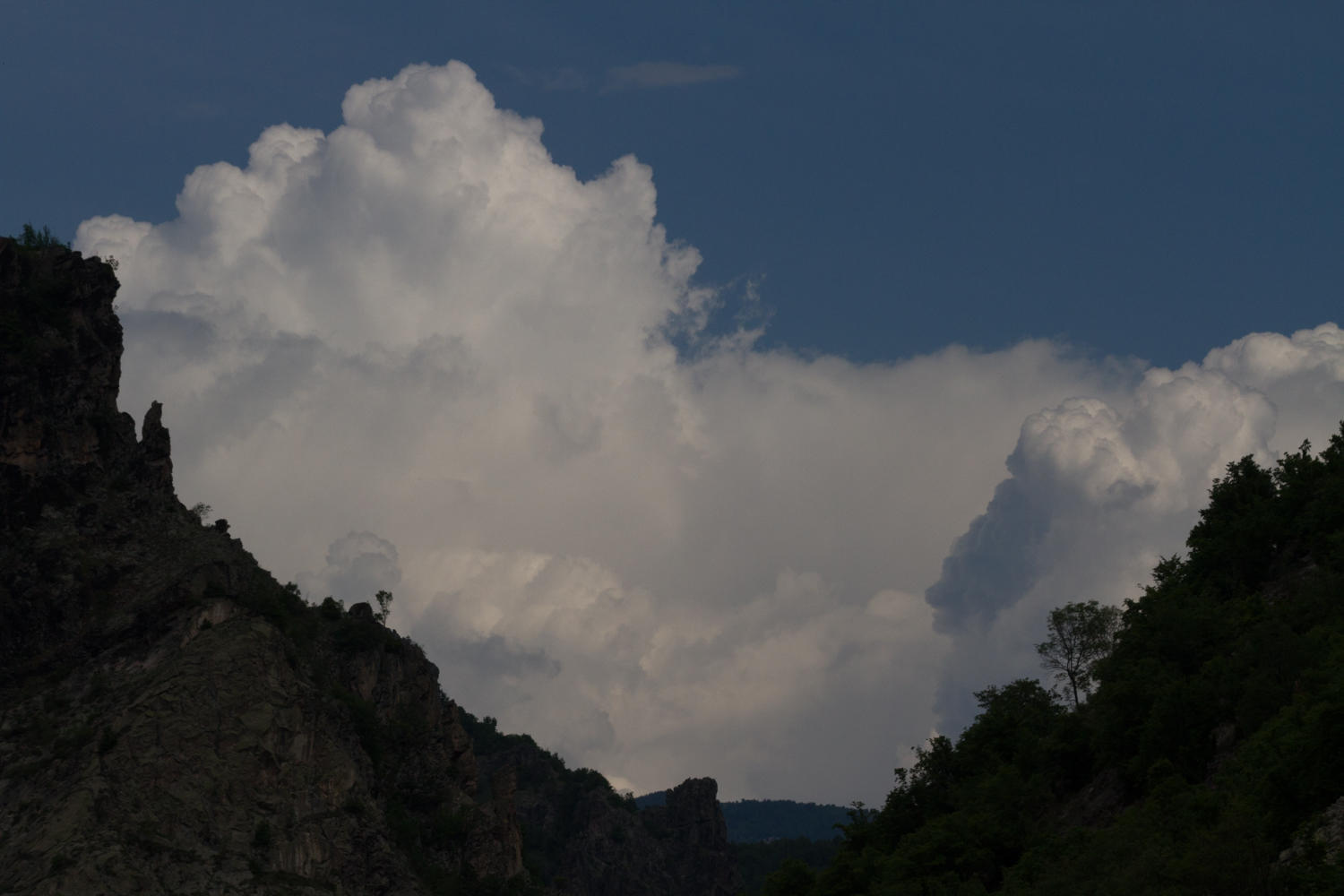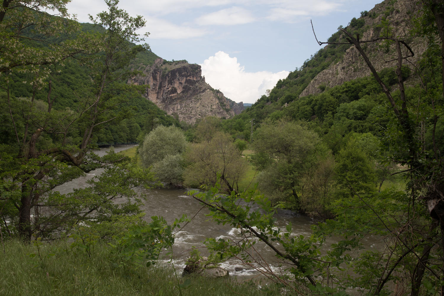 The road was a beautiful slow downhill, helped by a tailwind for the first part, cycling through forest and along the Mesta River going downstream. Doesn't get any better for cycling. Clouds are threatening a rainstorm so we do want to get to our destination before or if rains start.