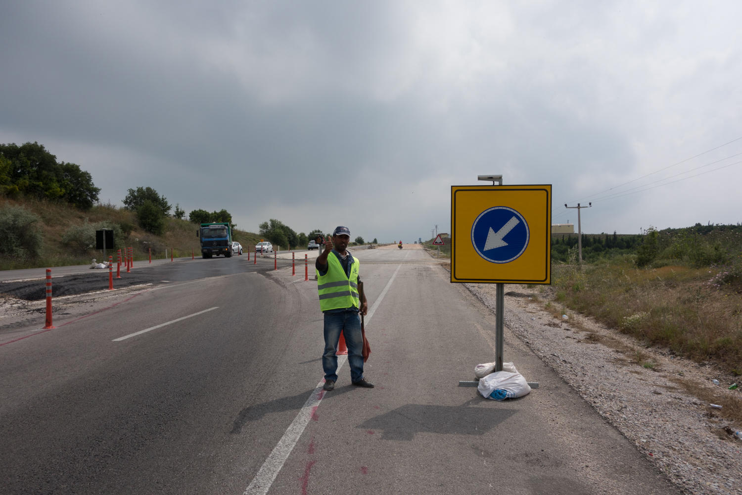 "What a great bike lane", we both say. The beauty of the bicycle is it can go where vehicles can't. A big part of the ride today the 4 lane road was narrowed to two lanes due to road construction. So that is where we rode, on the construction side, sometimes dodging equipment. Patrick would say "merhaba" (hello) and the construction workers would wave, and reply "gule gule" (goodbye said by the person staying).
