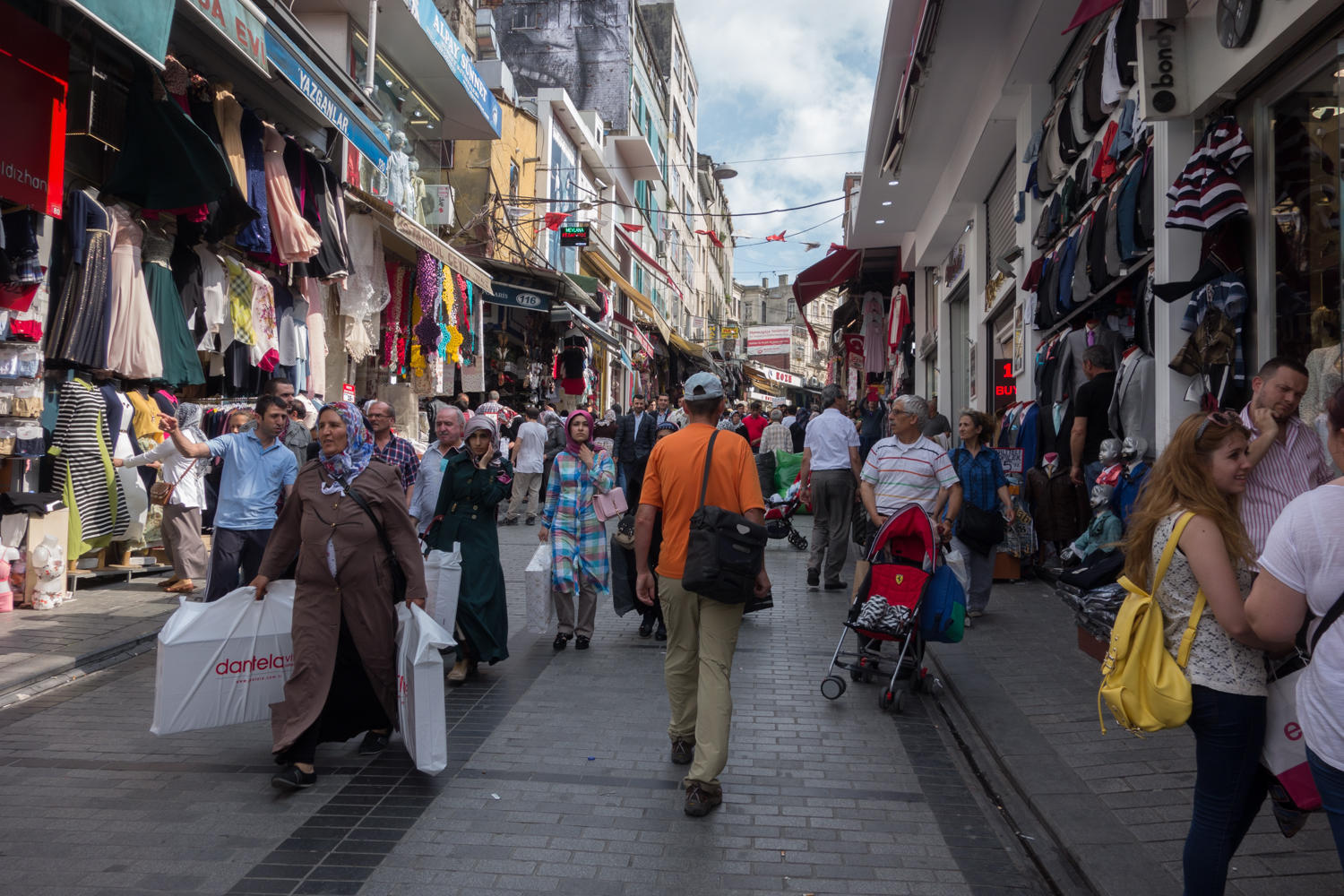 Narrow crowded streets of Sultanahmet. After the "dead" cities of eastern Europe the hustle and bustle is refreshing.
