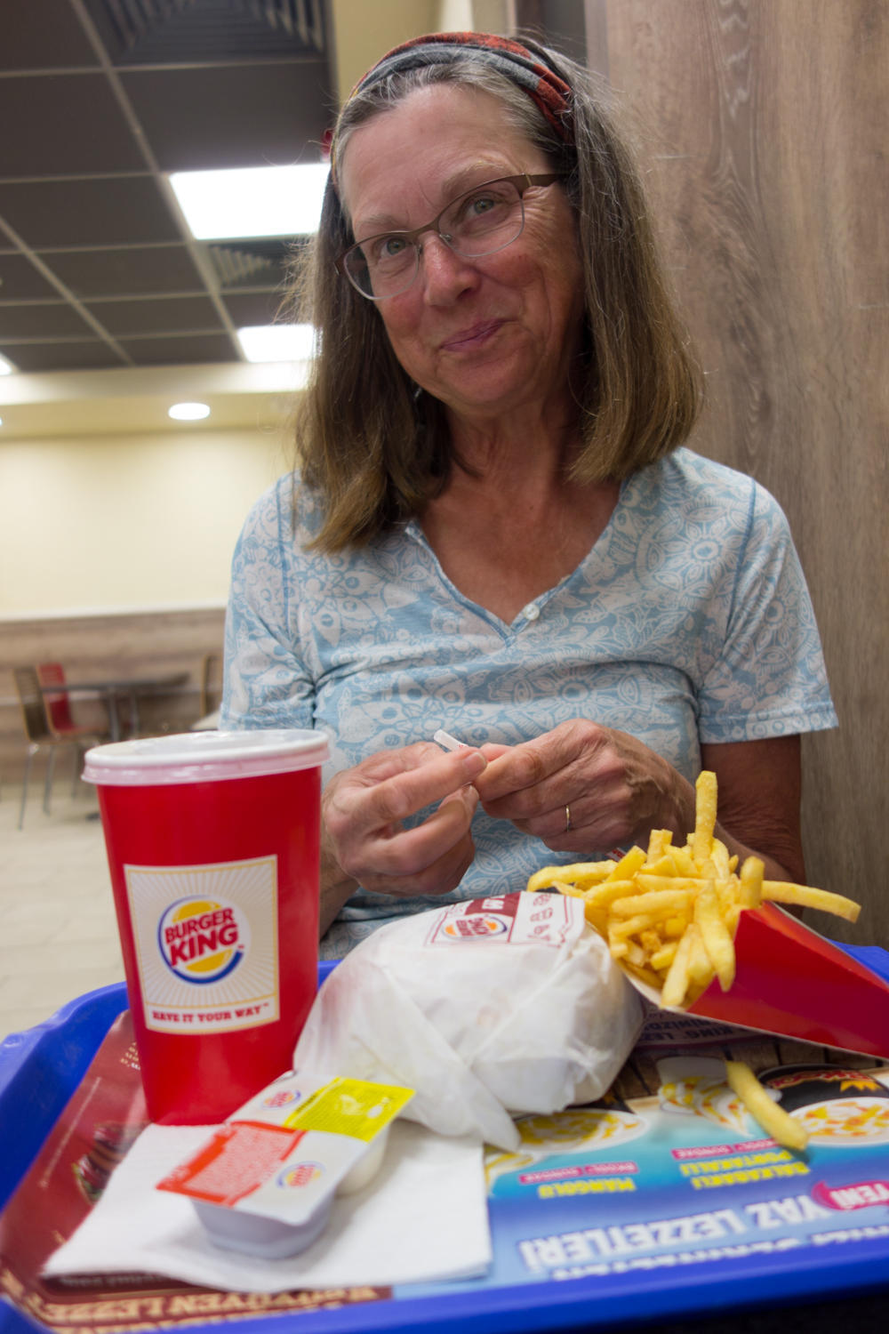 We stop at a gas station for a coke. The attendant starts speaking German to Patrick. It's Ramadan and restaurants are closed, but the attendant sells us cokes and says it's OK for us to eat because we are not Muslim.