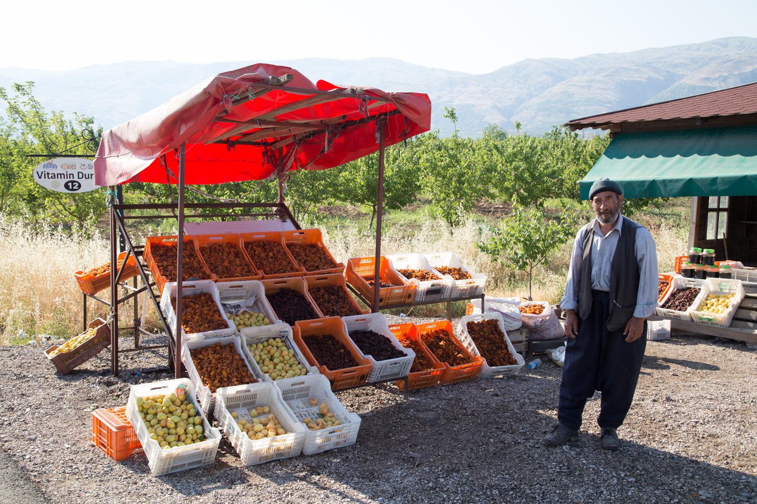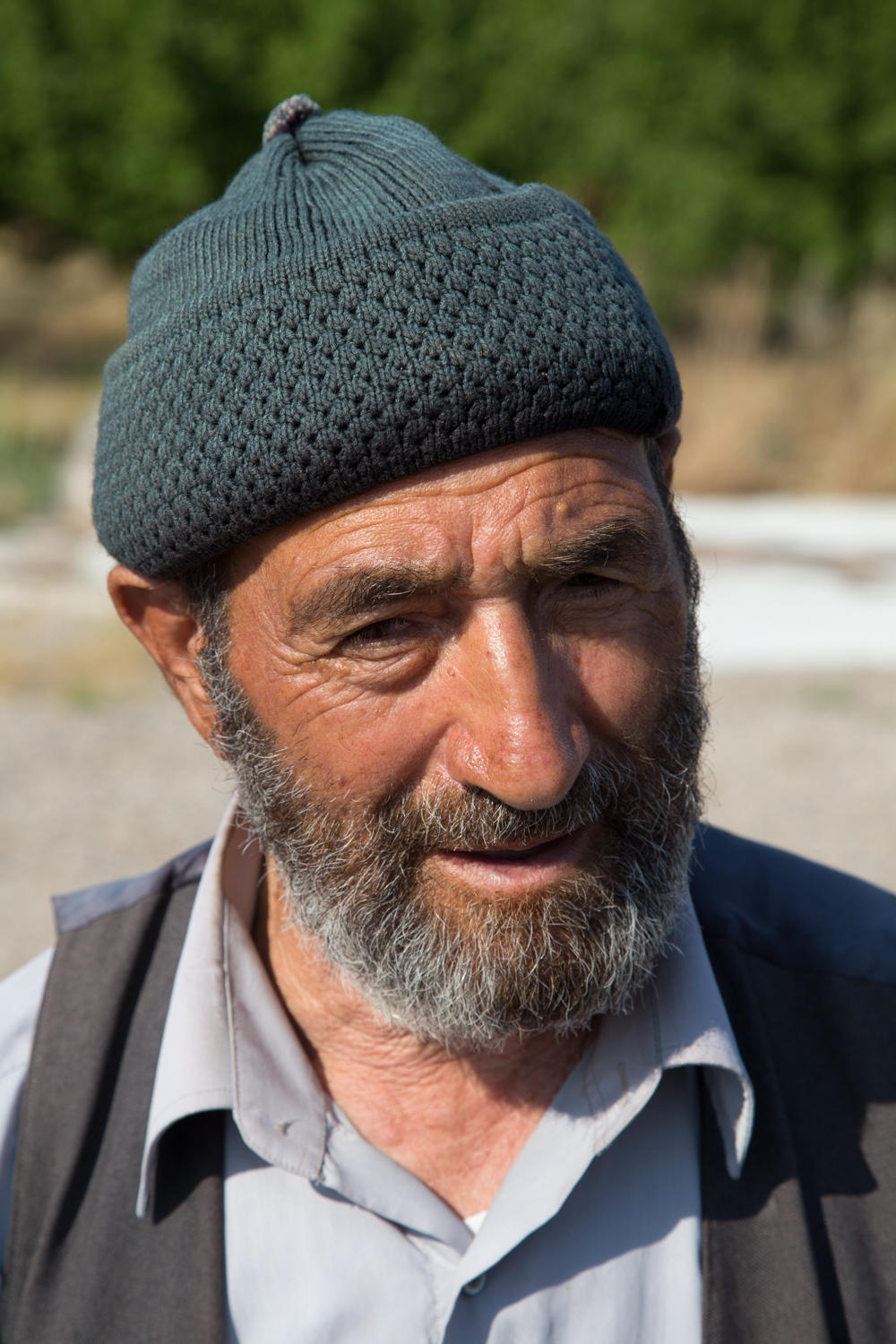 Along this stretch we still see lots of apricot stands. We stop at one with an elderly man in traditional dress, he shakes our hand and allows Patrick to take his picture. Then he grabs a handful of apricots and gives them to us.