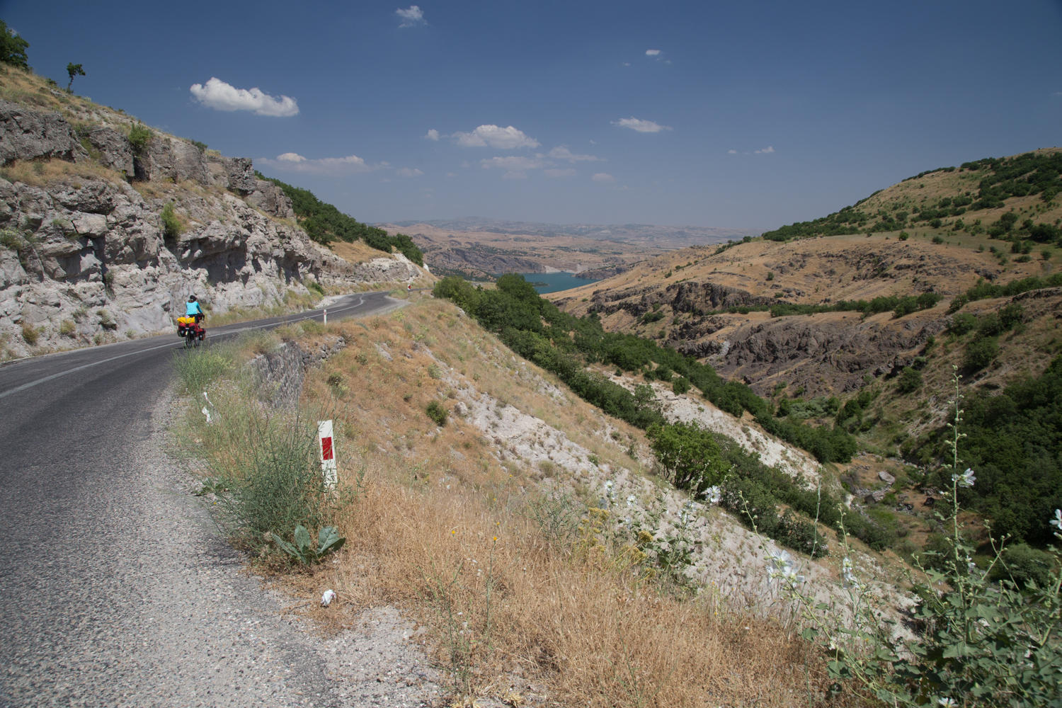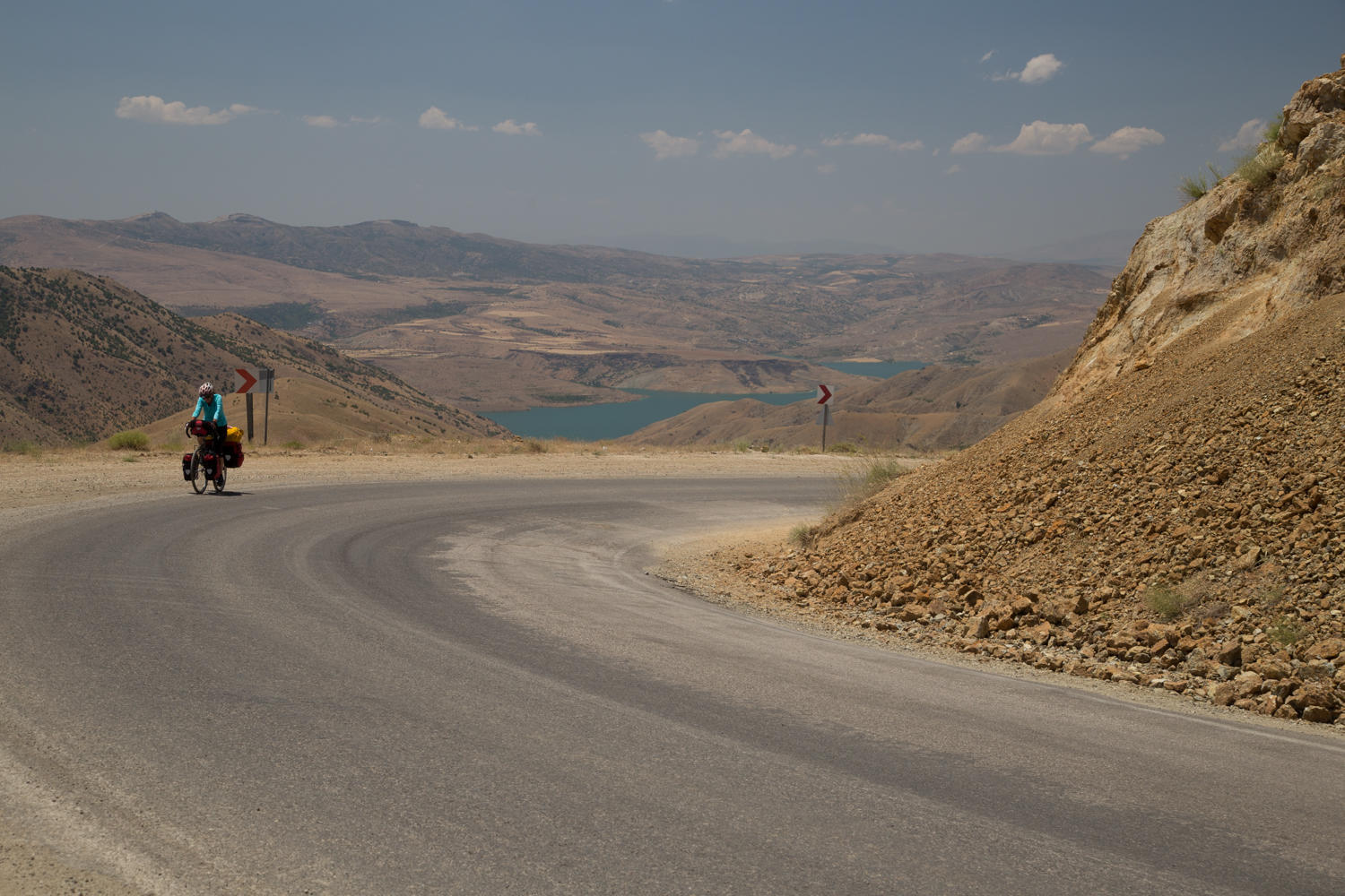 Finally. We. Reach. The. Top at 50 kms from Elazig. Looking forward to the downhill. That was 8kms, then the road turns to rolling climbs. We can finally see Tunceli that is still 20 kms away.