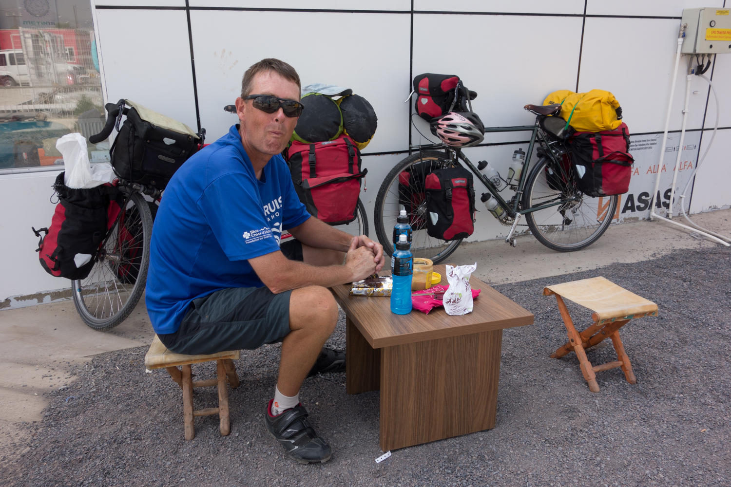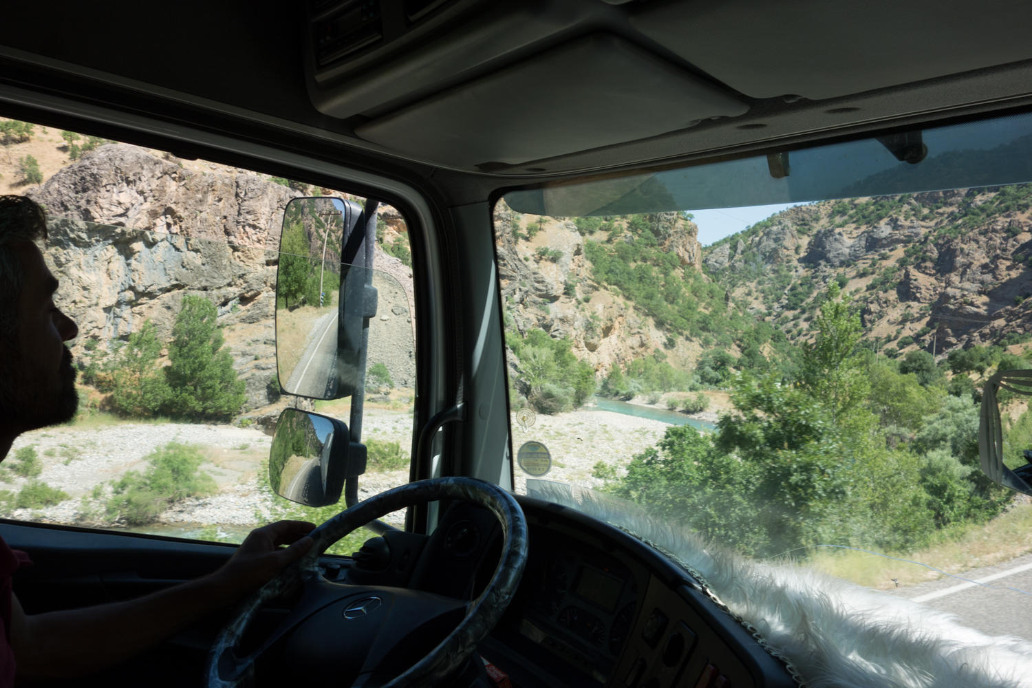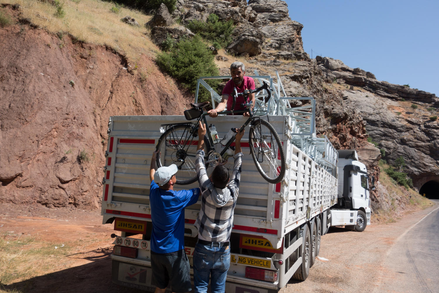 Then Serendipity. A man driving a car has also stopped, curious about us, and talks with Patrick in French. A big truck pulls in for a rest break. We are trying to decide how realistic it is for us to cycle this stretch. The man is talking with the truck driver convincing him to take us to Erzurum.