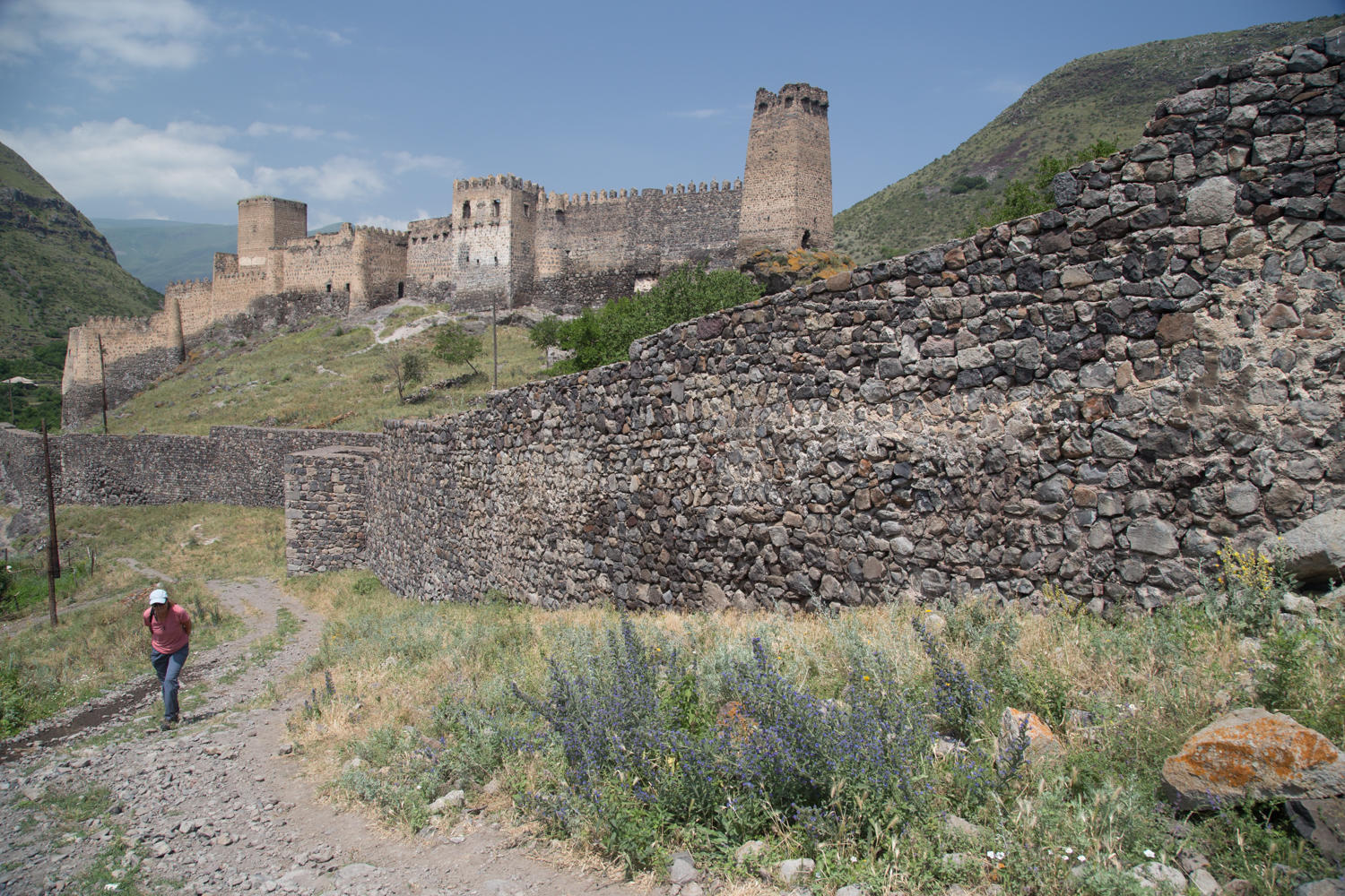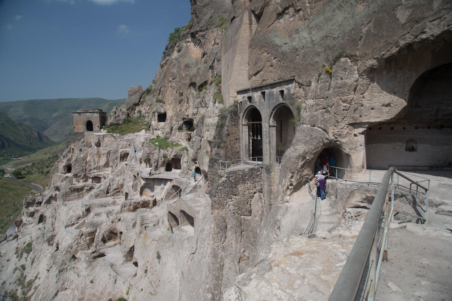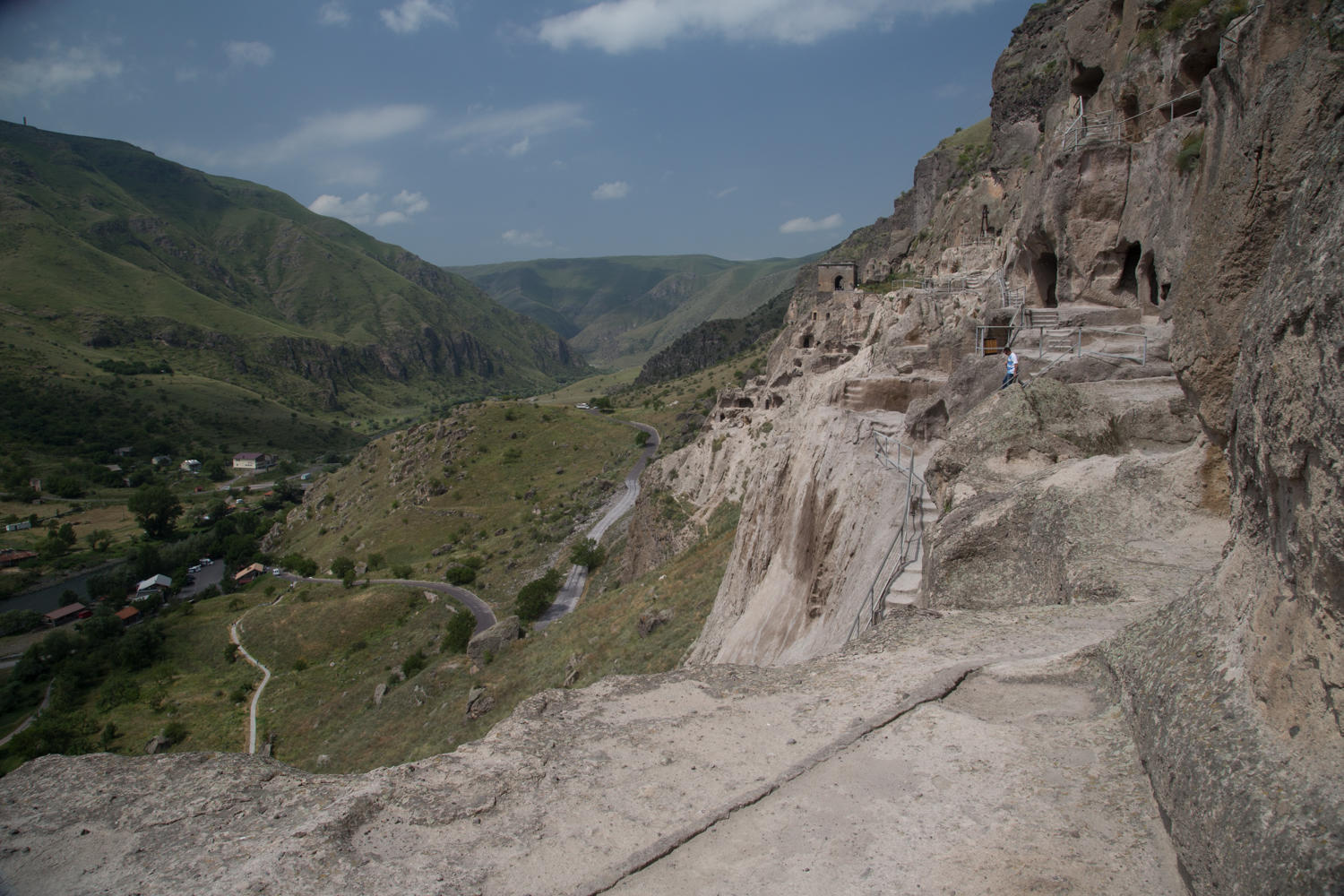 The Tourist Hotel arranged a taxi to take us to Vardzia. We had been trying to decide whether to cycle there or arrange to taxi us and gear up and cycle back (as other cyclists have done). Once on the road, we were happy to be in a taxi, the Georgian drivers are not as cautious as drivers in Turkey and the road is curvy and climbing with no shoulder. The scenery is great!