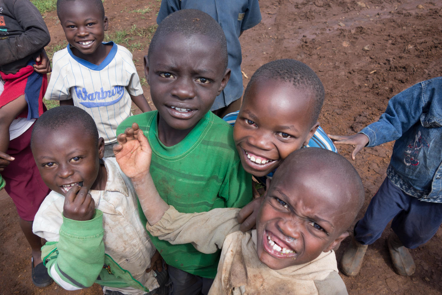 8. Enthusiastic children: Howareyou? Howareyou? Howareyou? Muzungu Muzungu. Run toward shouting and waving or run away.