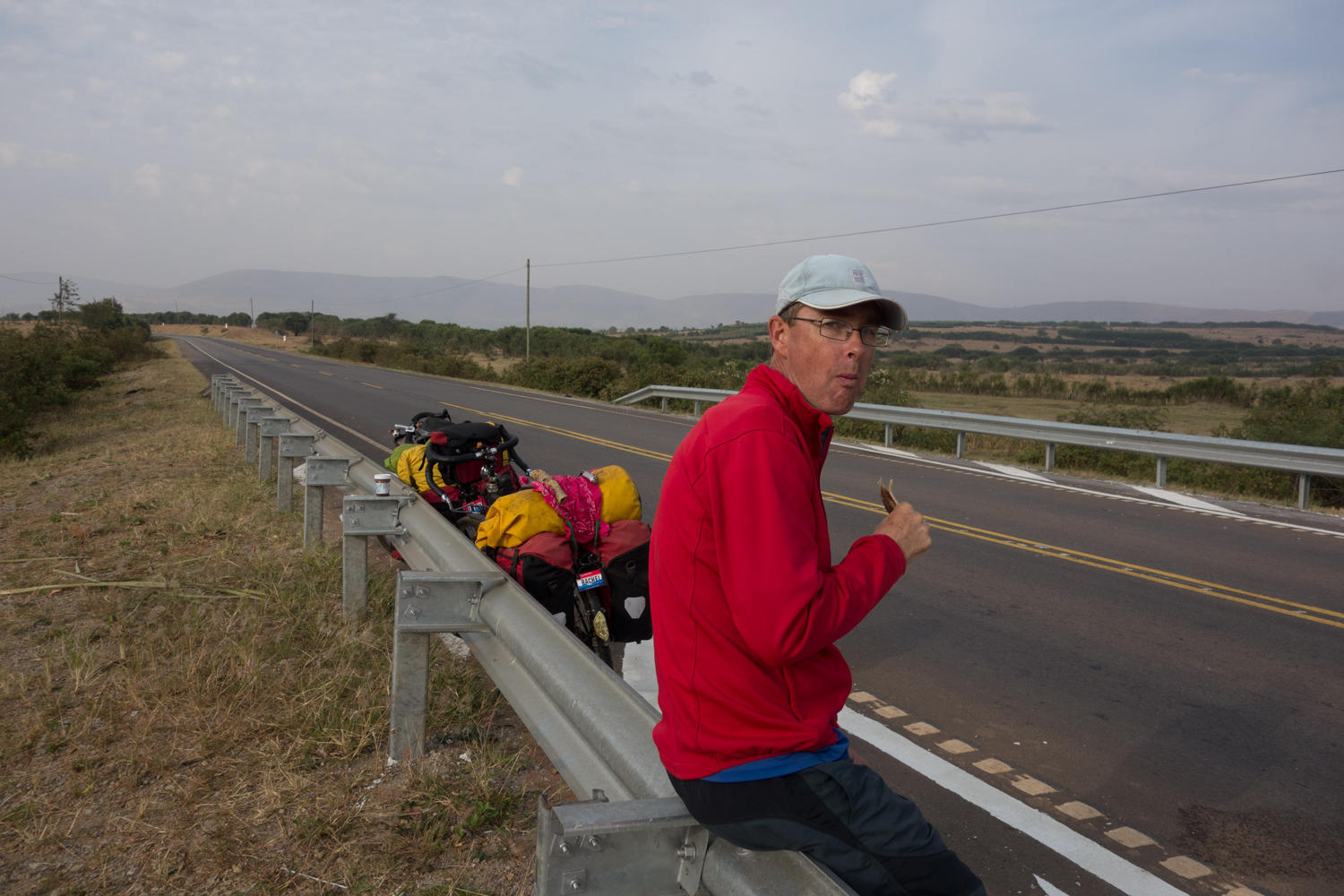 Bad enough that the boda driver caused a crash, but did it have to happen while pushing uphill? We were going through a town almost at the top of the first climb. At the top was a new resort being built that offered "fresh coffee and fast". Since we had been seeing signs for this resort first 10 kms away, and then 3kms to the top of the first climb, we had to stop. The coffee was good, but not fast, service takes awhile in Africa.