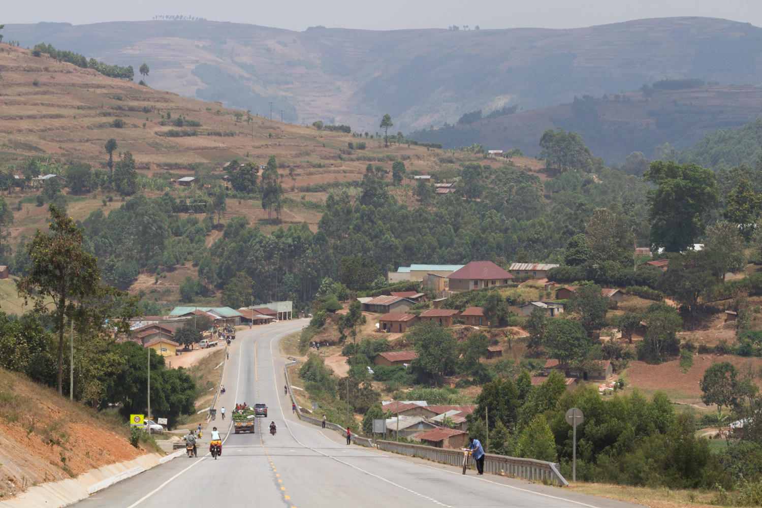 The road into Kabale is torn up and Patrick navigates through side streets to find the area where there are two good options for accommodation. At one point, the chaos of motorcycles, bicycles, pedestrians includes a watertruck spraying down the dust. We stay at a backpackers place, arrange a tour by canoe of Bunyonyi Lake for tomorrow, and have a hamburger for dinner. Yes, a hamburger with a homemade bun!
