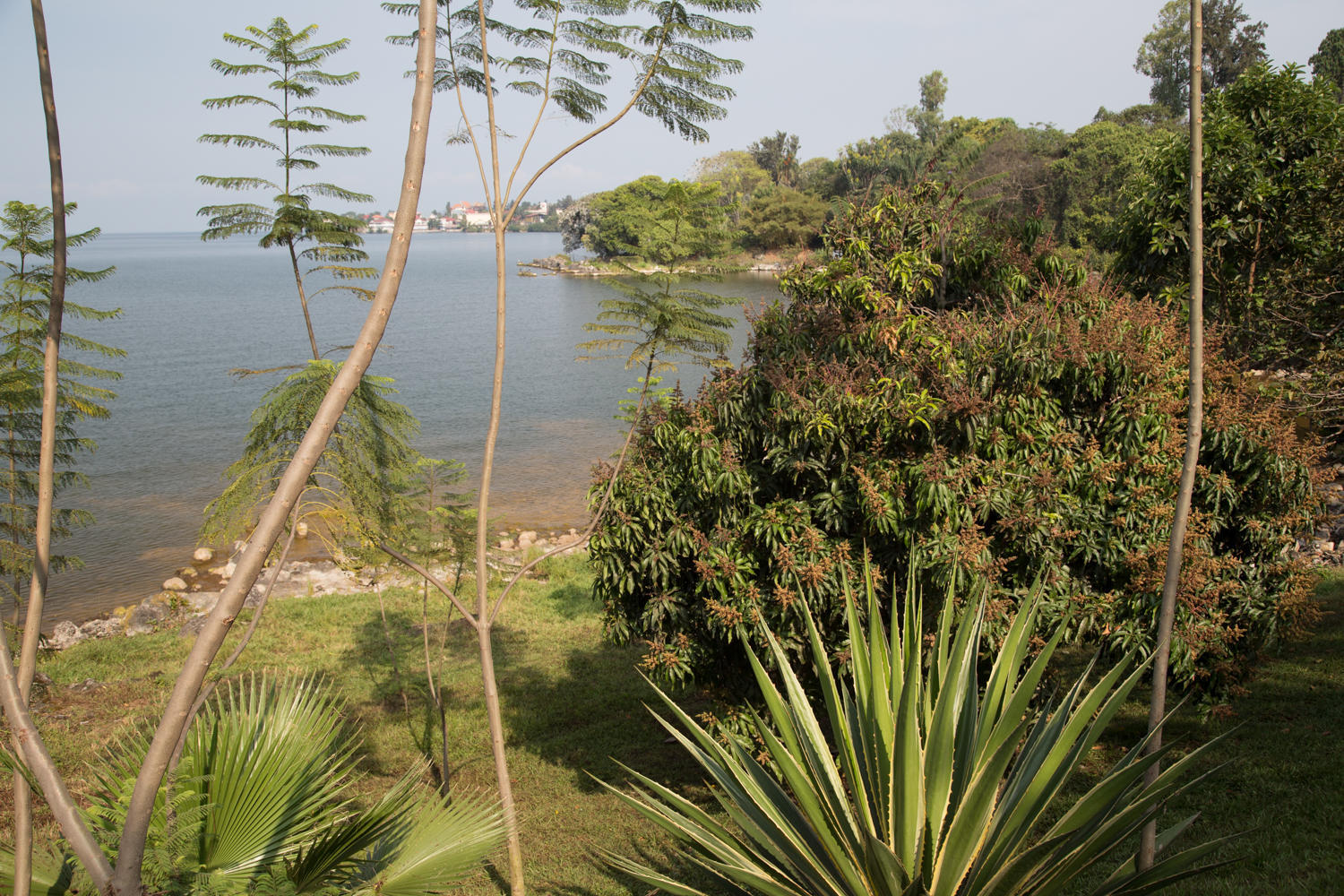 Our accommodation is a great place for a rest day. Our room with a veranda is set back in a garden. Rachel did the laundry with not much hope that with the humidity things will dry. Patrick looked at the freewheel on Rachel's bike because it is still clicking. After tasks completed, we go explore. We are in a good location halfway between the main part of town and Lake Kivu.