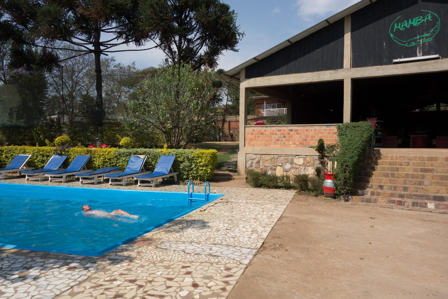 The Mamba Club is a recreational facility with swimming pool, bowling alley (the only one in Rwanda), restaurant and bar....and a hostel! We have a self contained room for a very nice price. There is also a bunk room with a balcony. A great place for two more days of rest.