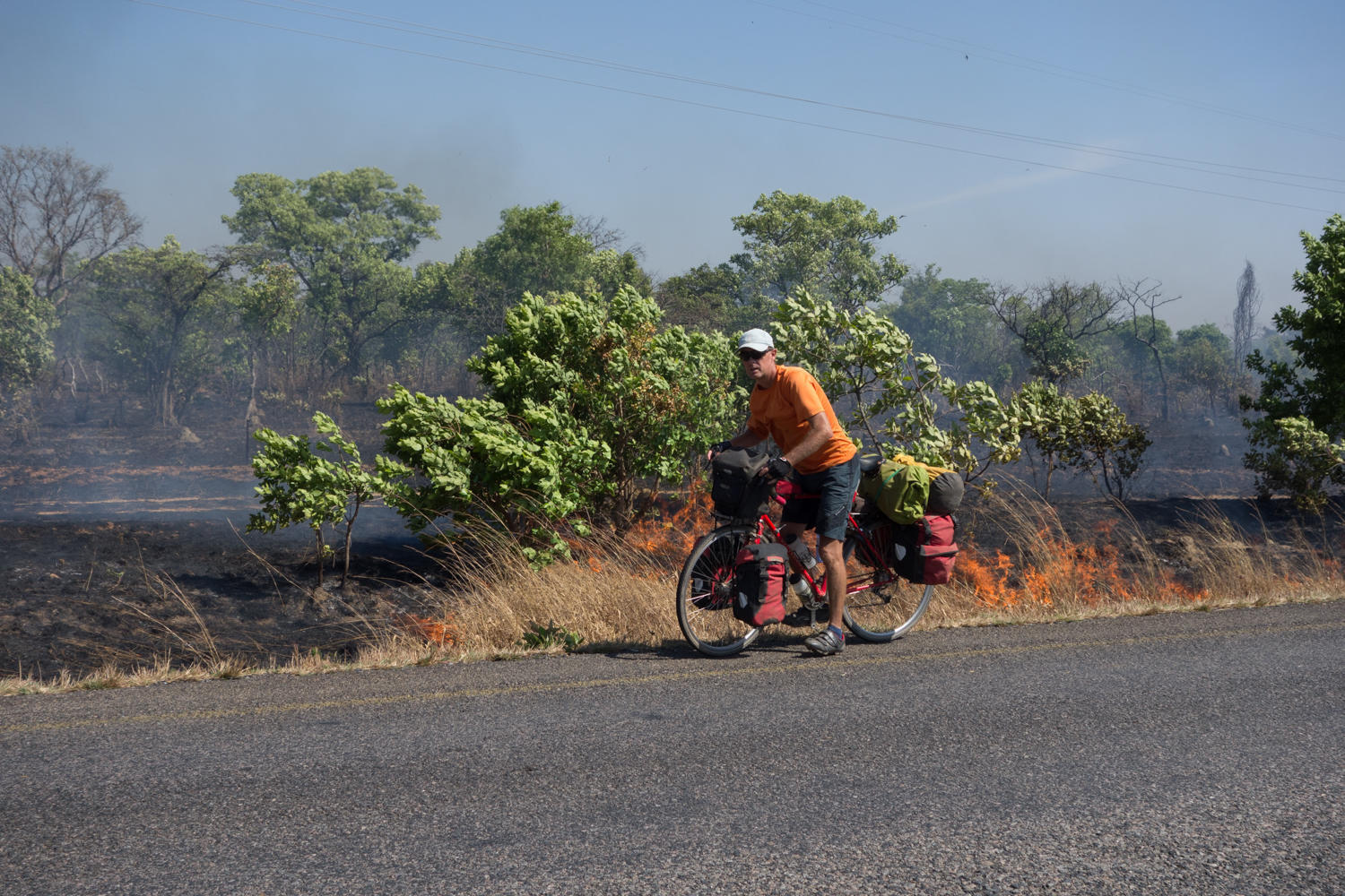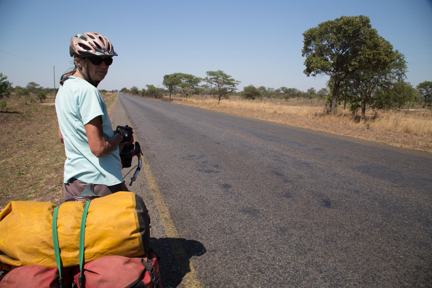 At first light, we leave Mazabuka "the sweetest town in Zambia" and see the sugar cane fields. The road follows the railroad line and is a long straight flat hill for most of the day. The wind comes up early and is a crosswind until the road changes directions slightly and gives a little tailwind. Last week, we heard from cyclists going the opposite direction fighting a headwind. Going East to West seems the better direction riding.
